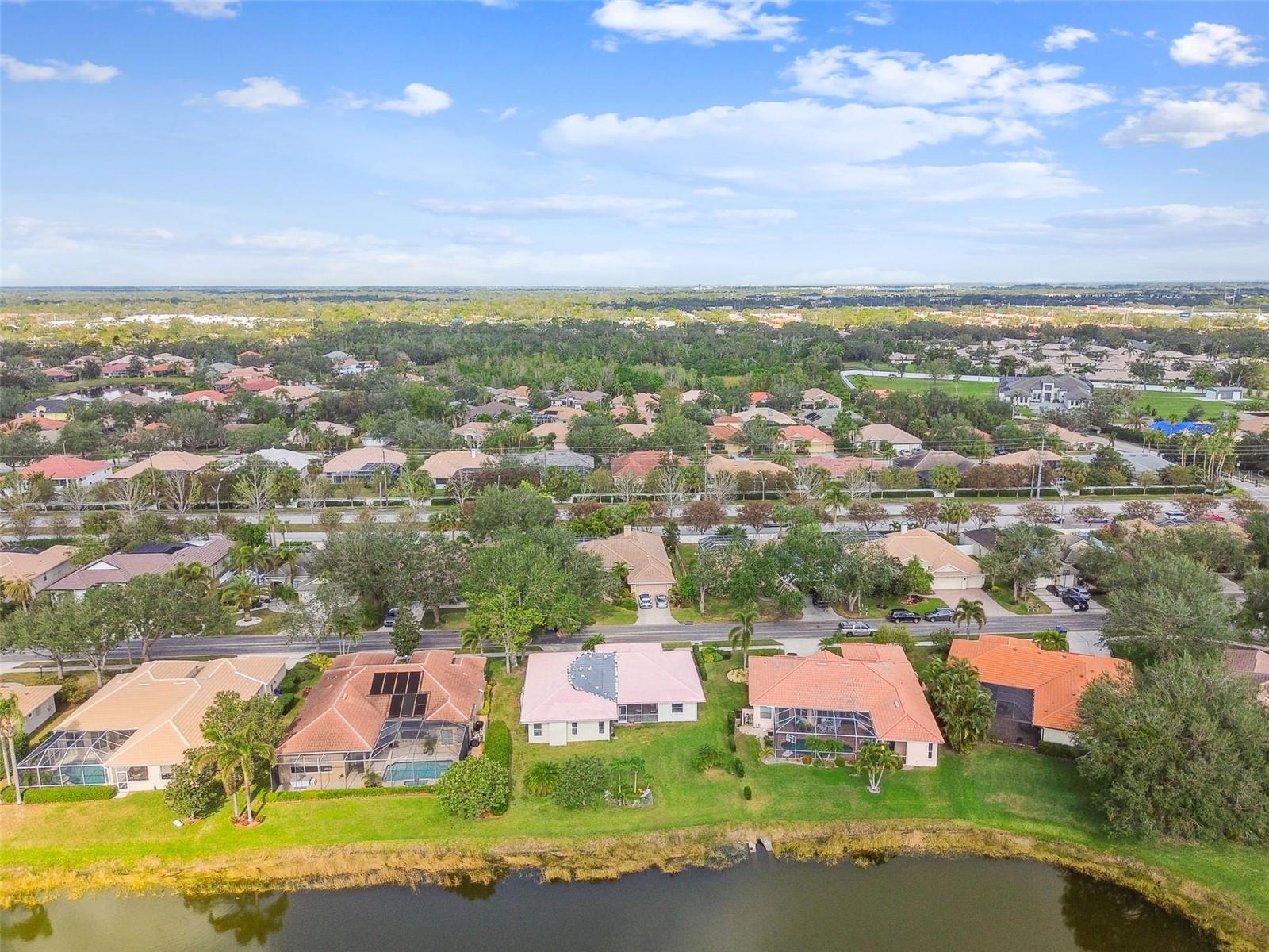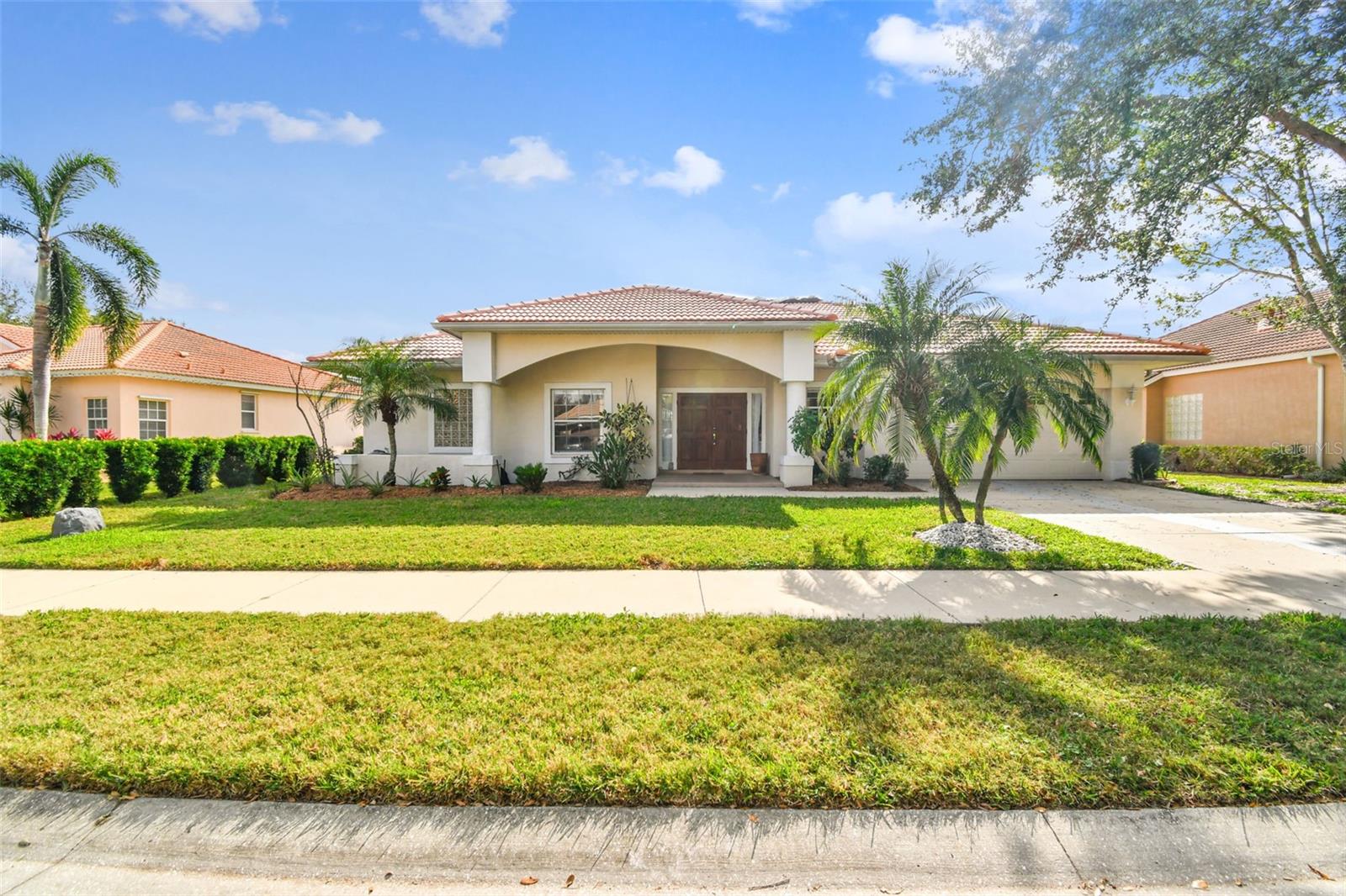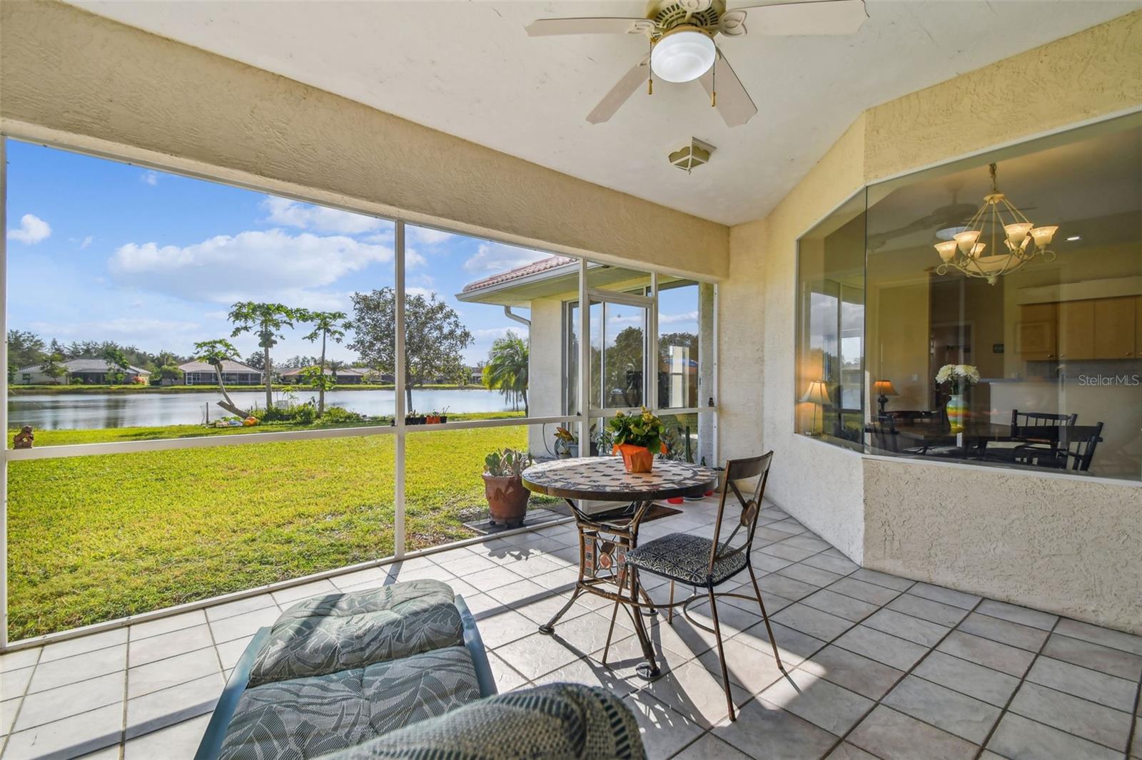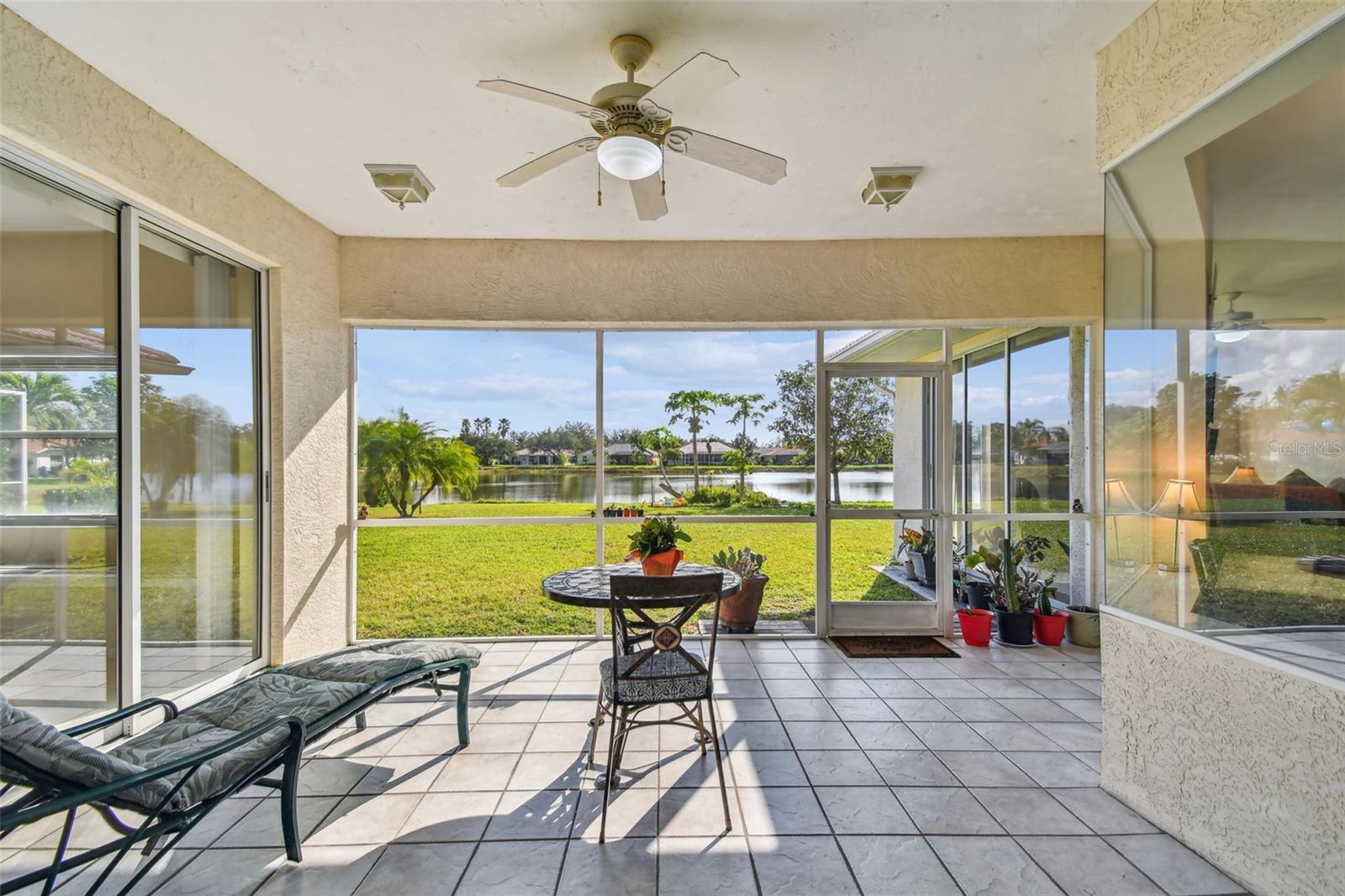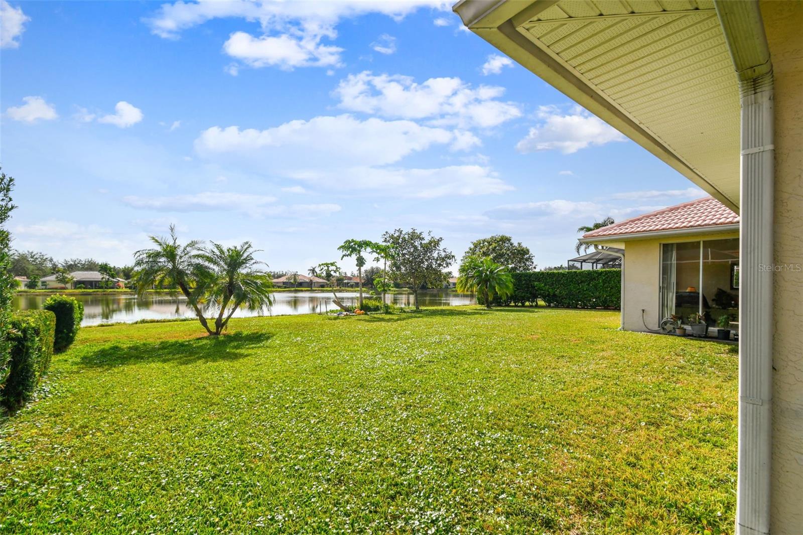 Enjoy stunning lake views from nearly every window of this light filled, south-facing, 3-bedroom, 2-bathroom home with a den. The interior features tile flooring in the kitchen and bathrooms, complemented by plush carpeting in the bedrooms. A thoughtful split-bedroom layout ensures privacy, while the primary suite boasts a luxurious ensuite with a bidet, dual sinks, a soaking tub, a separate shower, and a walk-in closet. Relax or entertain on the spacious screened and covered lanai, perfect for soaking in the picturesque lake scenery. Conveniently situated in the desirable Three Oaks area, this home, which has the benefit of low HOA fees, is close to shopping, dining, Siesta Key Beach, and I-75, with excellent schools nearby. There's even room to add a pool! Please note: this house is being sold 'as is'.