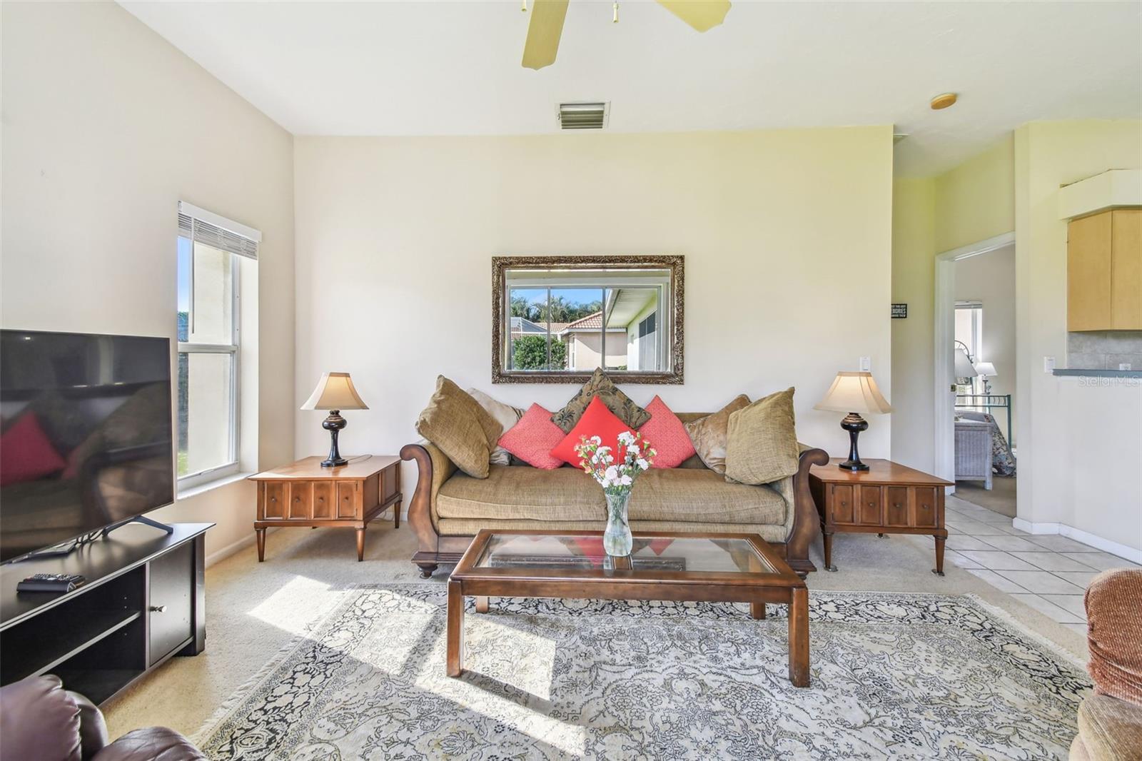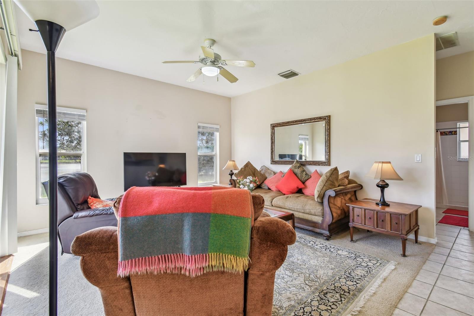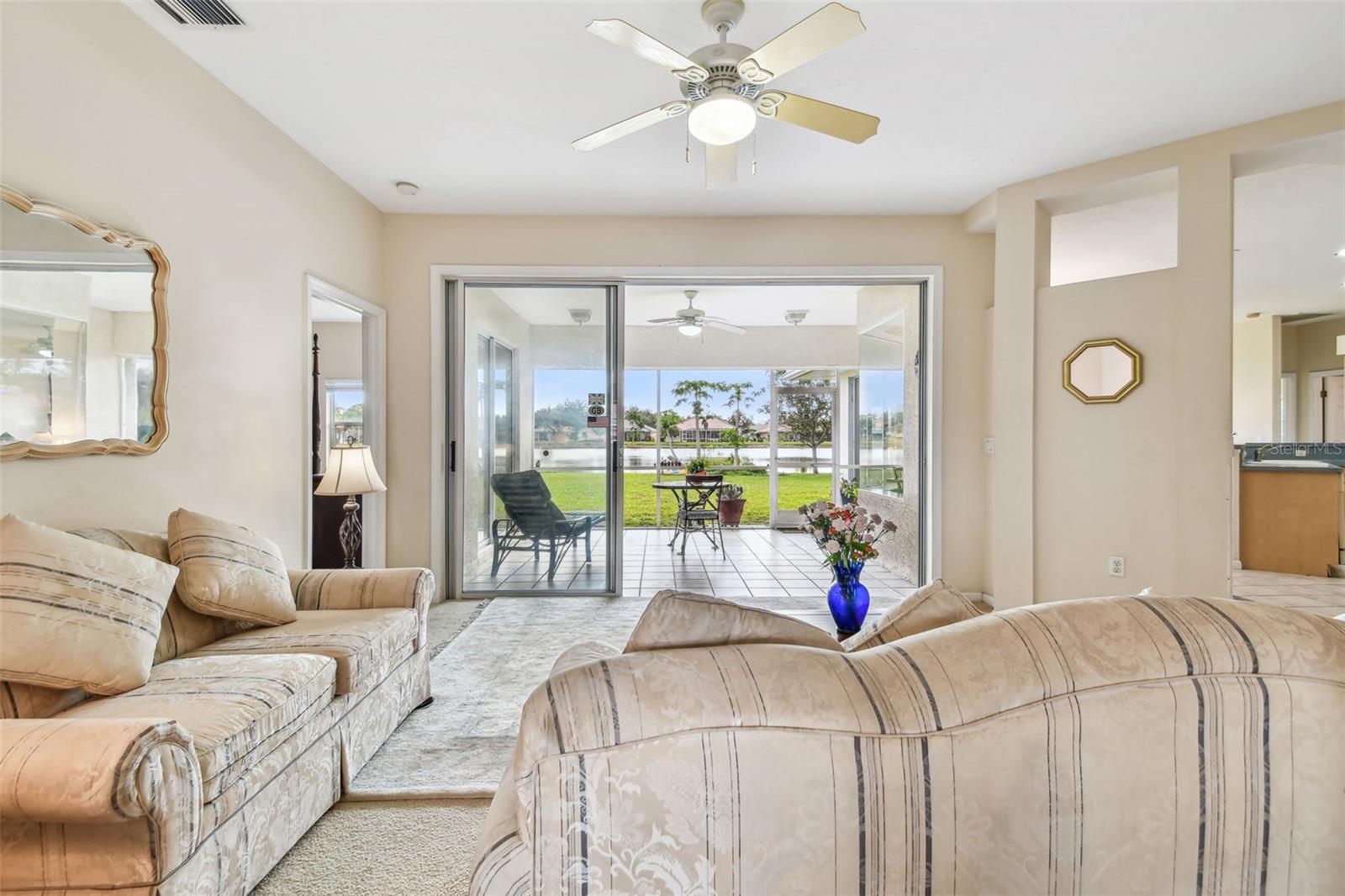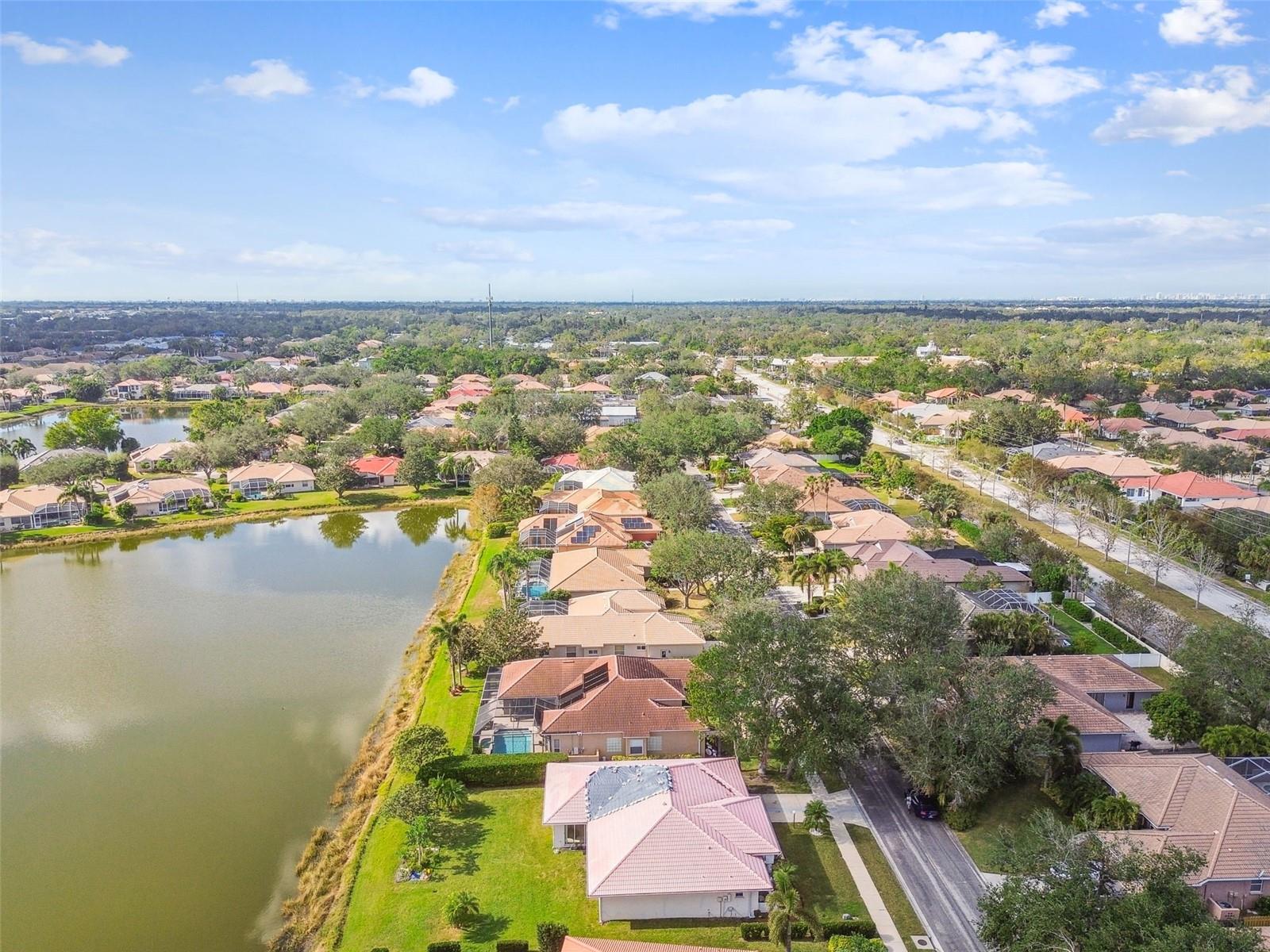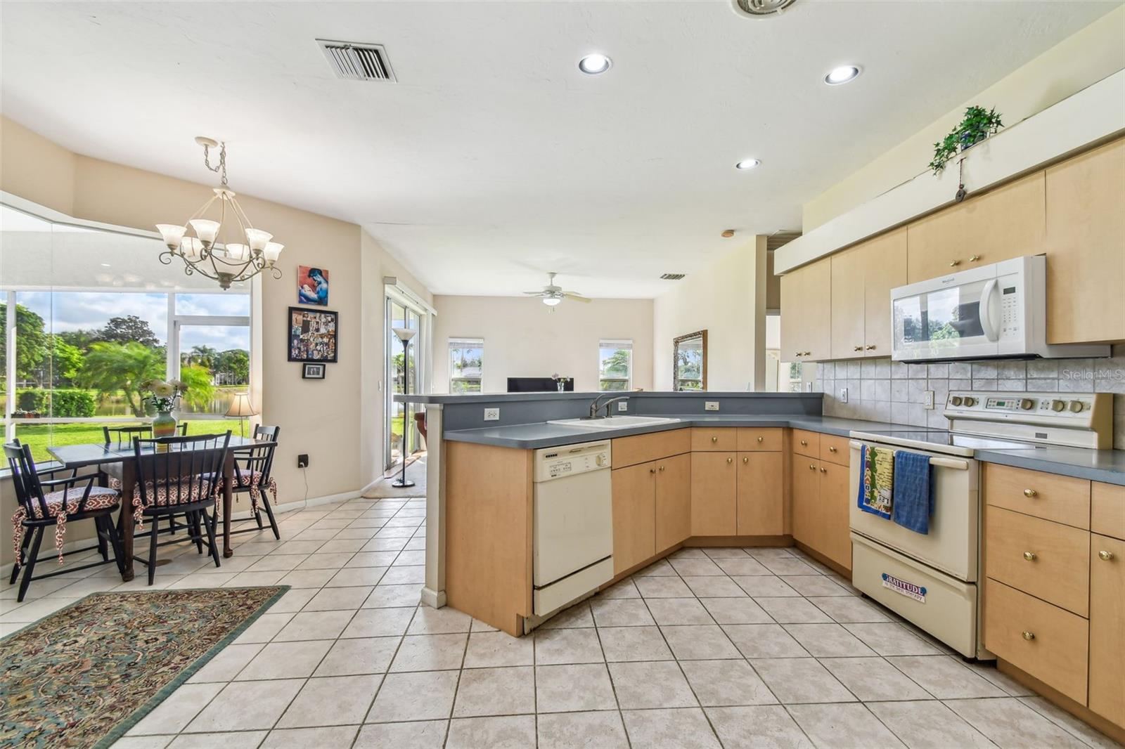 Enjoy stunning lake views from nearly every window of this light filled, south-facing, 3-bedroom, 2-bathroom home with a den. The interior features tile flooring in the kitchen and bathrooms, complemented by plush carpeting in the bedrooms. A thoughtful split-bedroom layout ensures privacy, while the primary suite boasts a luxurious ensuite with a bidet, dual sinks, a soaking tub, a separate shower, and a walk-in closet. Relax or entertain on the spacious screened and covered lanai, perfect for soaking in the picturesque lake scenery. Conveniently situated in the desirable Three Oaks area, this home, which has the benefit of low HOA fees, is close to shopping, dining, Siesta Key Beach, and I-75, with excellent schools nearby. There's even room to add a pool! Please note: this house is being sold 'as is'.