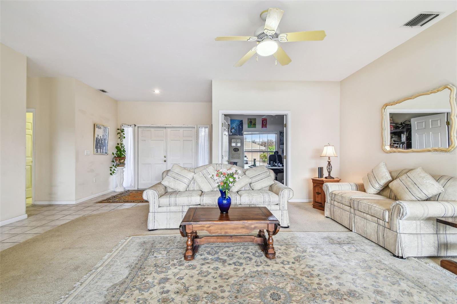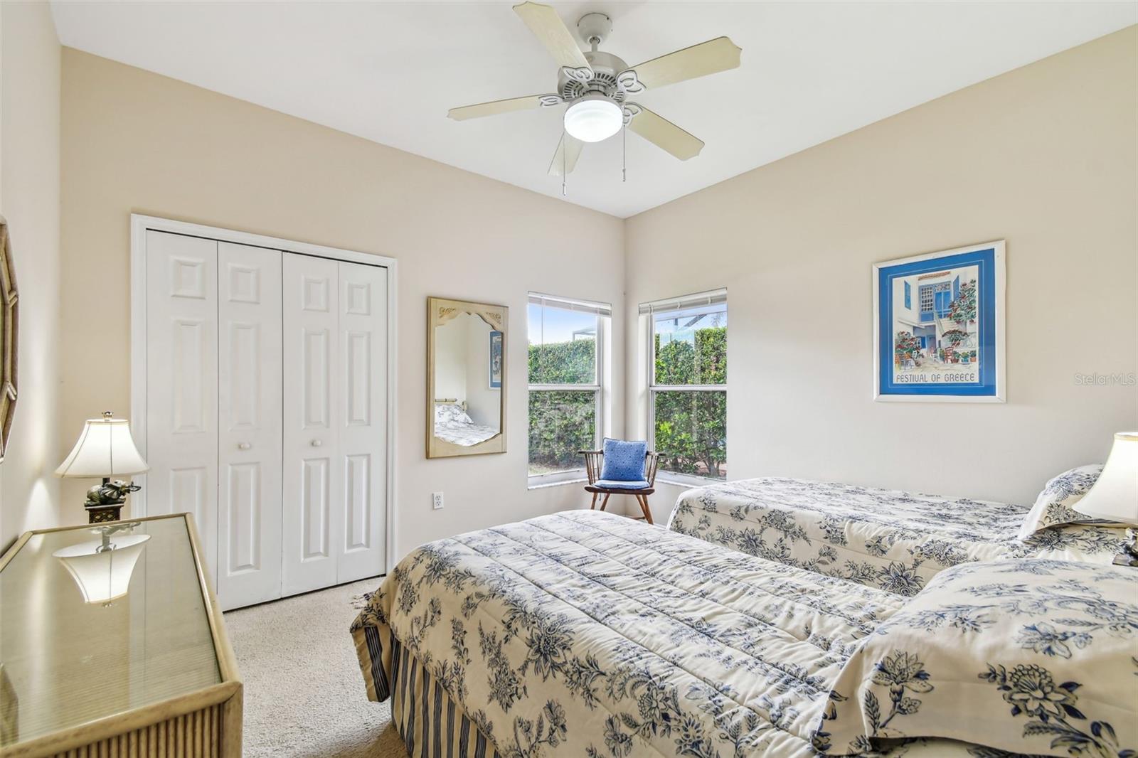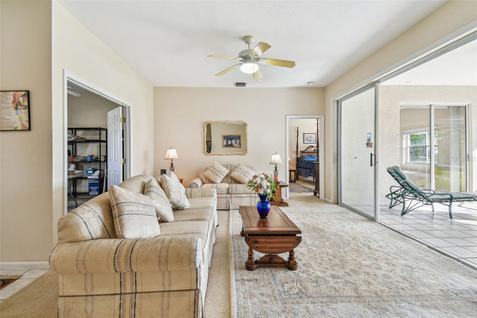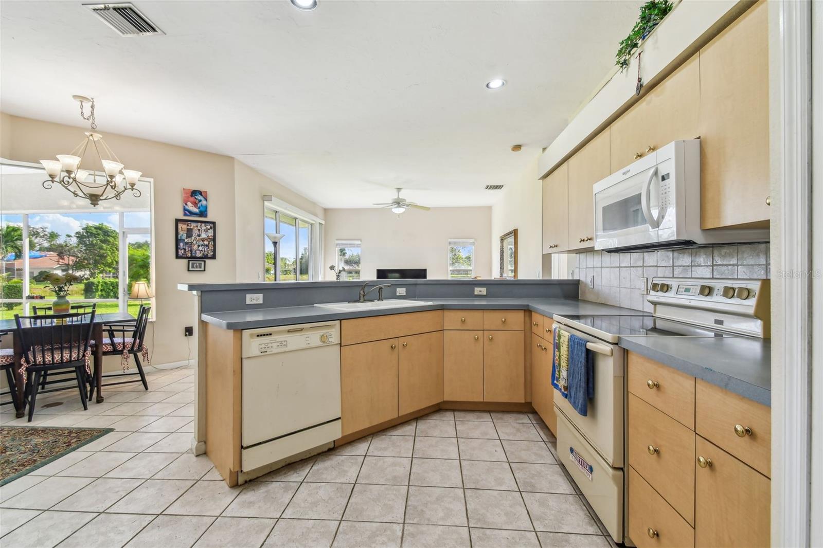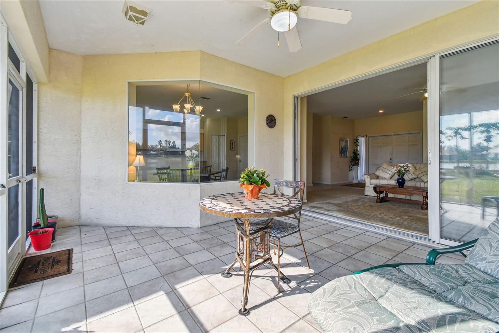 Enjoy stunning lake views from nearly every window of this light filled, south-facing, 3-bedroom, 2-bathroom home with a den. The interior features tile flooring in the kitchen and bathrooms, complemented by plush carpeting in the bedrooms. A thoughtful split-bedroom layout ensures privacy, while the primary suite boasts a luxurious ensuite with a bidet, dual sinks, a soaking tub, a separate shower, and a walk-in closet. Relax or entertain on the spacious screened and covered lanai, perfect for soaking in the picturesque lake scenery. Conveniently situated in the desirable Three Oaks area, this home, which has the benefit of low HOA fees, is close to shopping, dining, Siesta Key Beach, and I-75, with excellent schools nearby. There's even room to add a pool! Please note: this house is being sold 'as is'.