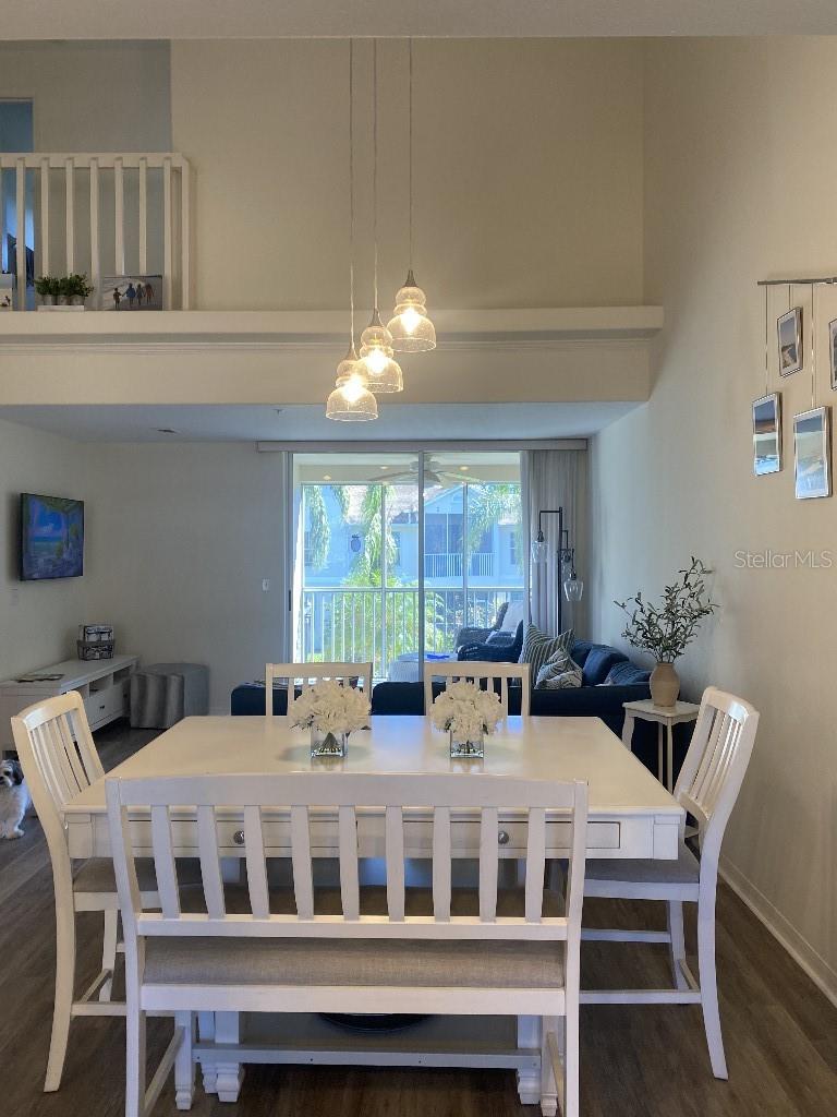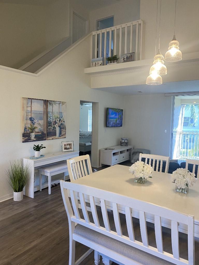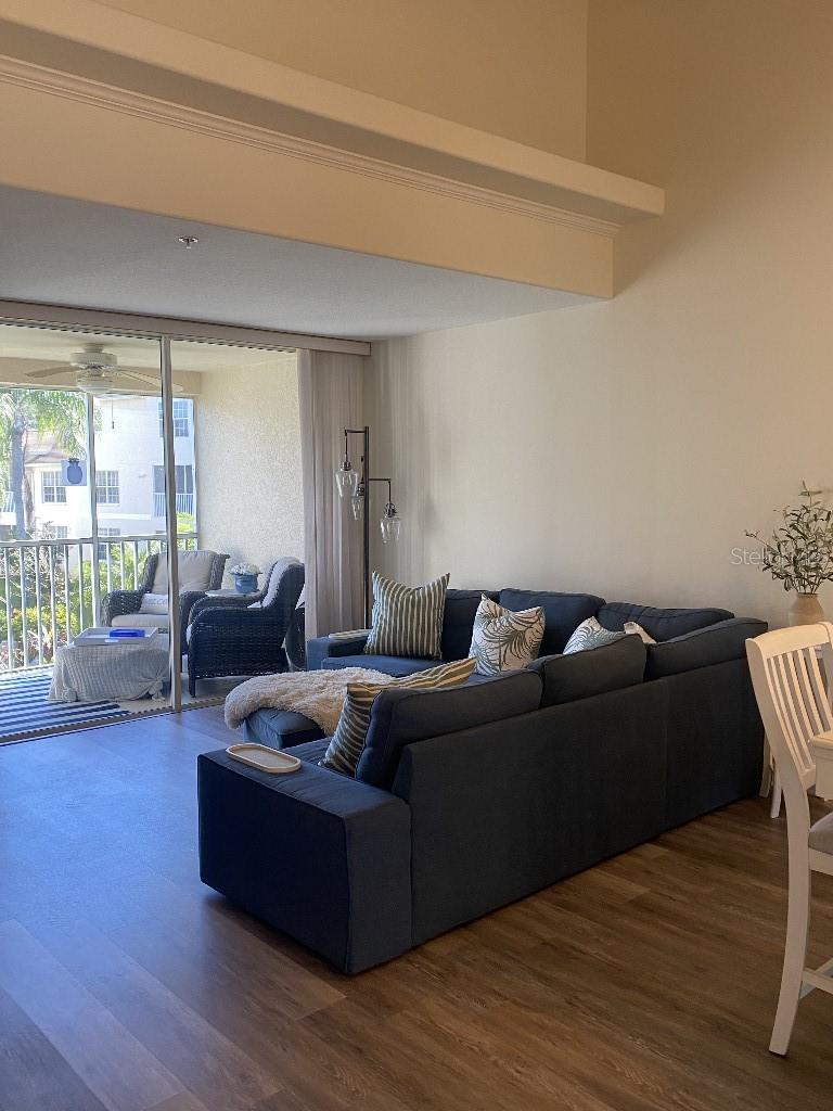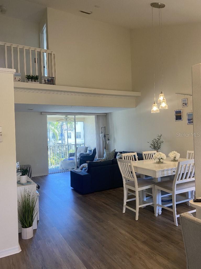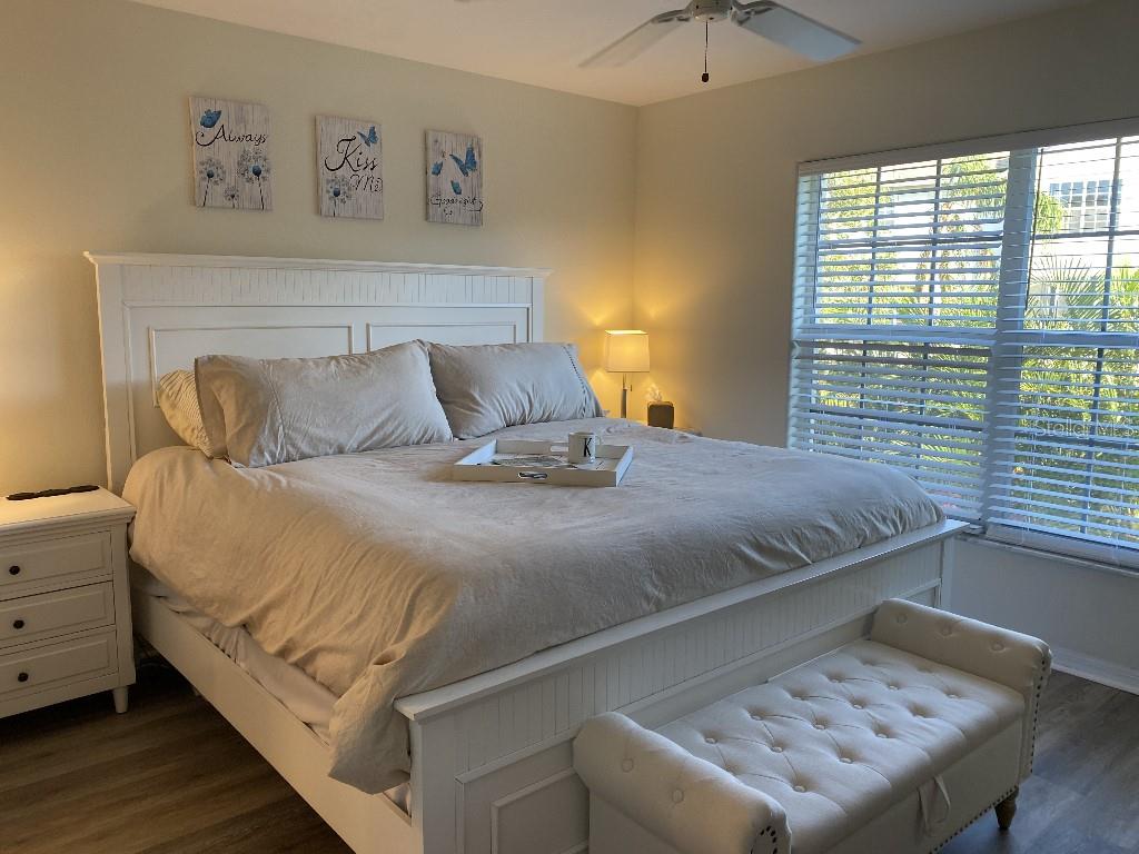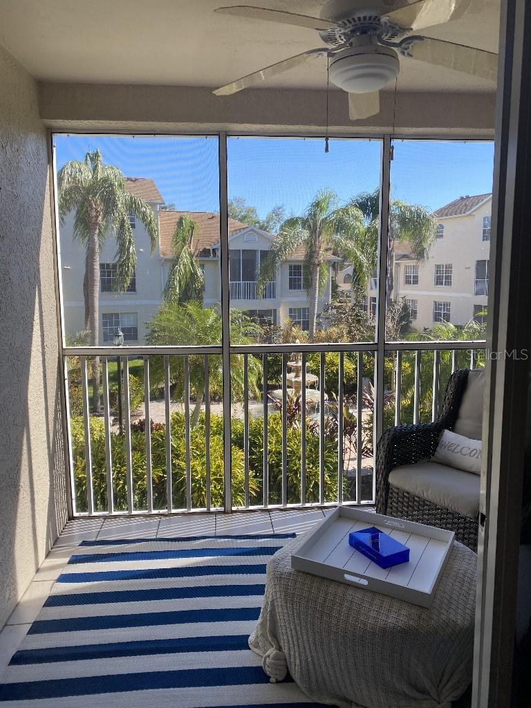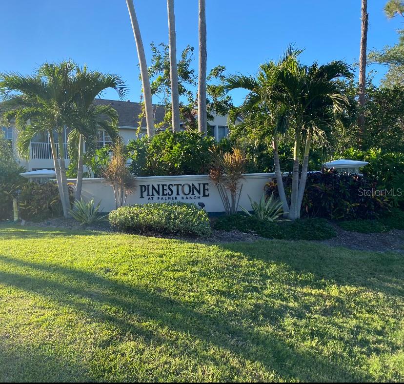 The ONLY 3 bedroom plus den available in the entire development, custom-built by the builder! Direct fountain/garden view, gated community, Upstairs there are two bedrooms and a full bathroom, The main floor features the master bedroom, a full bathroom with a spa tub and separate shower, kitchen, den, living room, dining room, laundry, and more. This second-floor townhouse-style condominium is maintenance-free. It boasts soaring ceilings, walk-in closets, a pantry, a breakfast bar, a full-size washer and dryer, replumbed features. Updated vinyl flooring, quartz countertops in kitchen and new appliances, all in 2022. There is ample storage with two walk-in closets, a kitchen pantry, and additional attic space. This condo has an assigned covered parking space directly in front of condo. It is conveniently located near the clubhouse and set in a park-like environment. The amenities at Pinestone are unmatched, including a large 'olympic' sized heated swimming pool with a spacious deck area, tables, chairs, lounges, umbrellas, a wet bar, BBQ grills, and a covered picnic area. Additionally, there are two lighted tennis courts, half basketball court, pickleball setting, shuffle board and bocce ball areas, hot tub/spa, gym/fitness room, billiard room, card room, 32-seat movie theater, library, on-site manager's office, and more. Pinestone is a gated community situated in the heart of Palmer Ranch, just a few miles from Siesta Key, other beaches, restaurants, shopping, grocery stores, and more. This condo currently has a home warranty with First American and the remainder is transferrable.