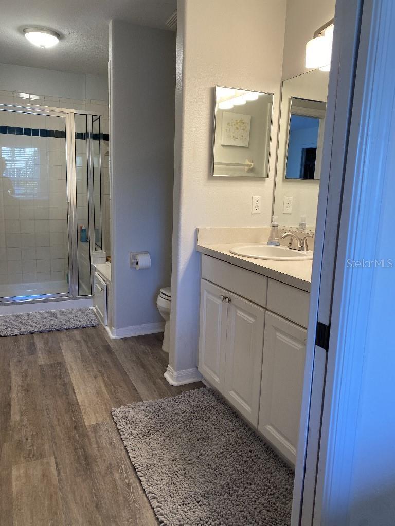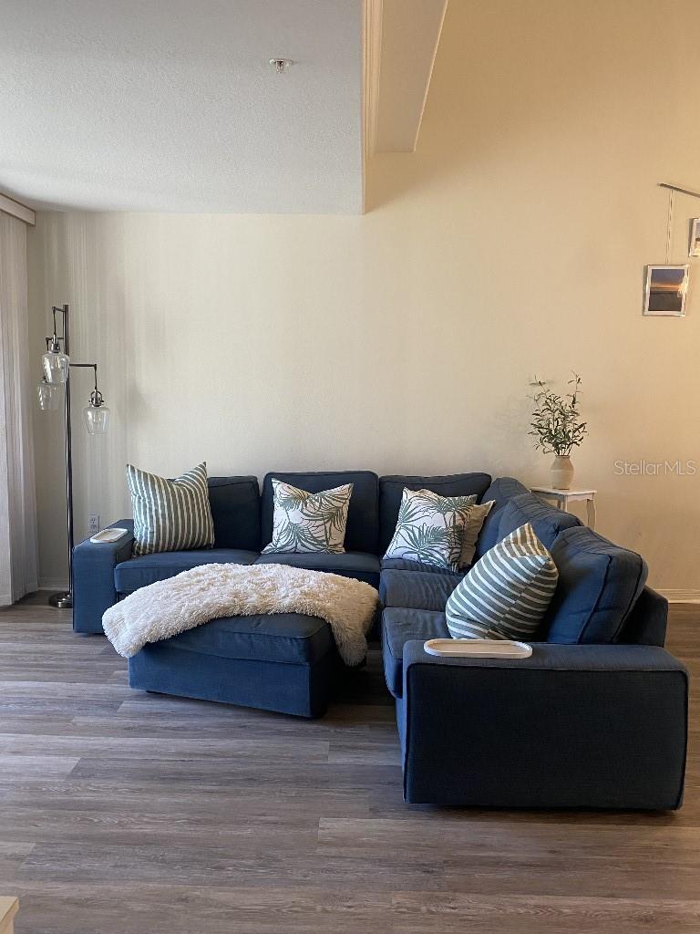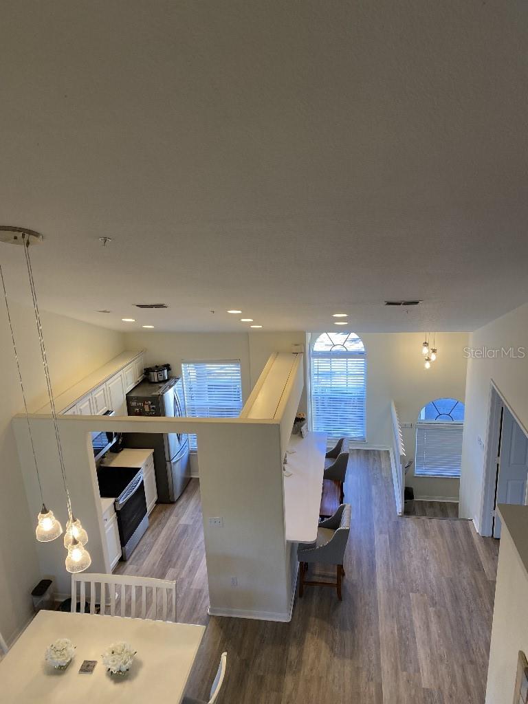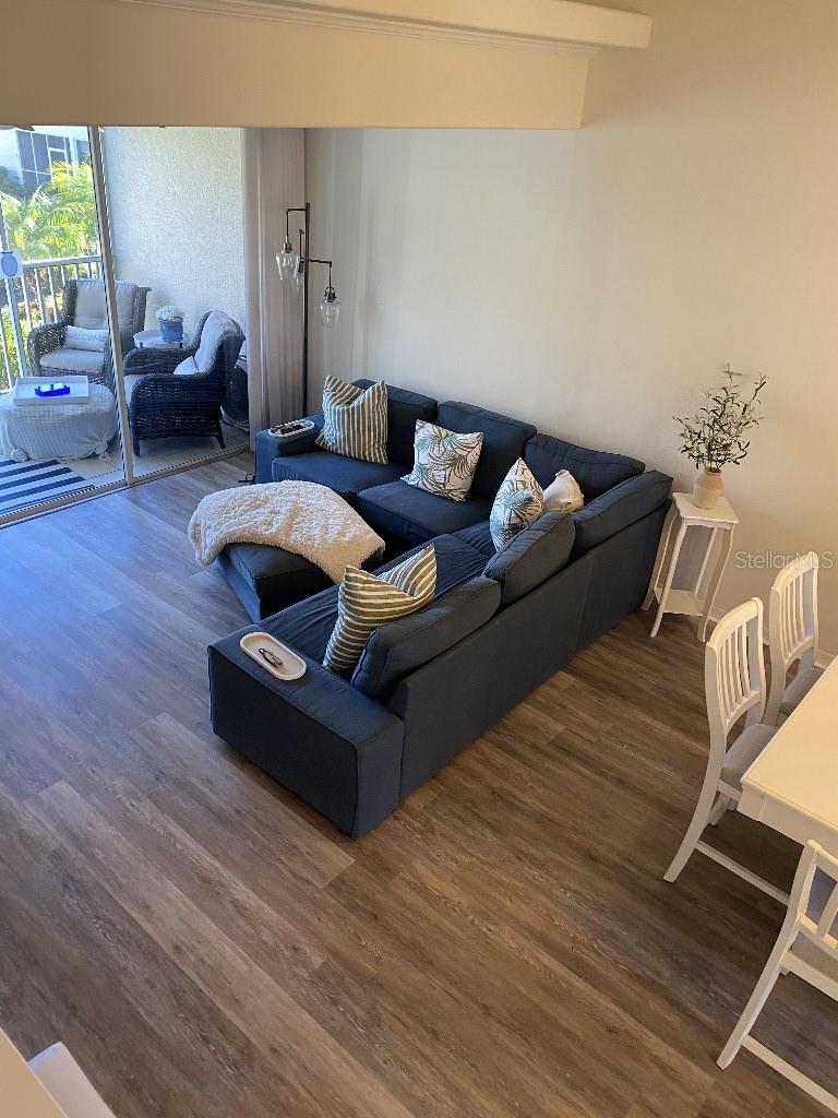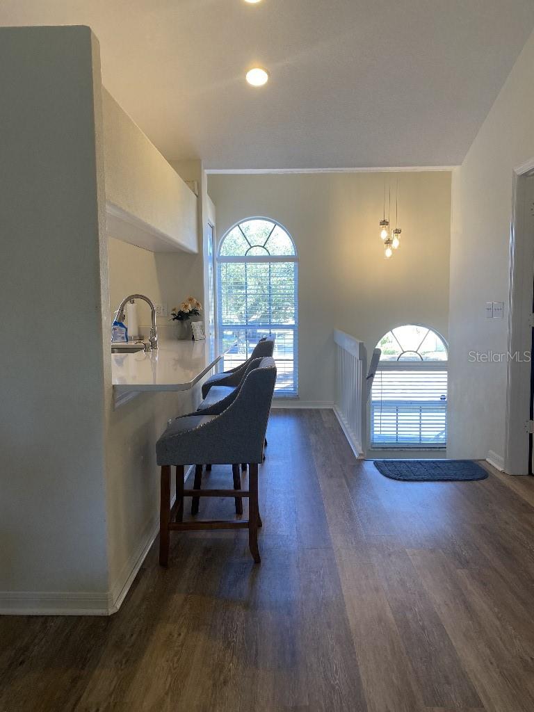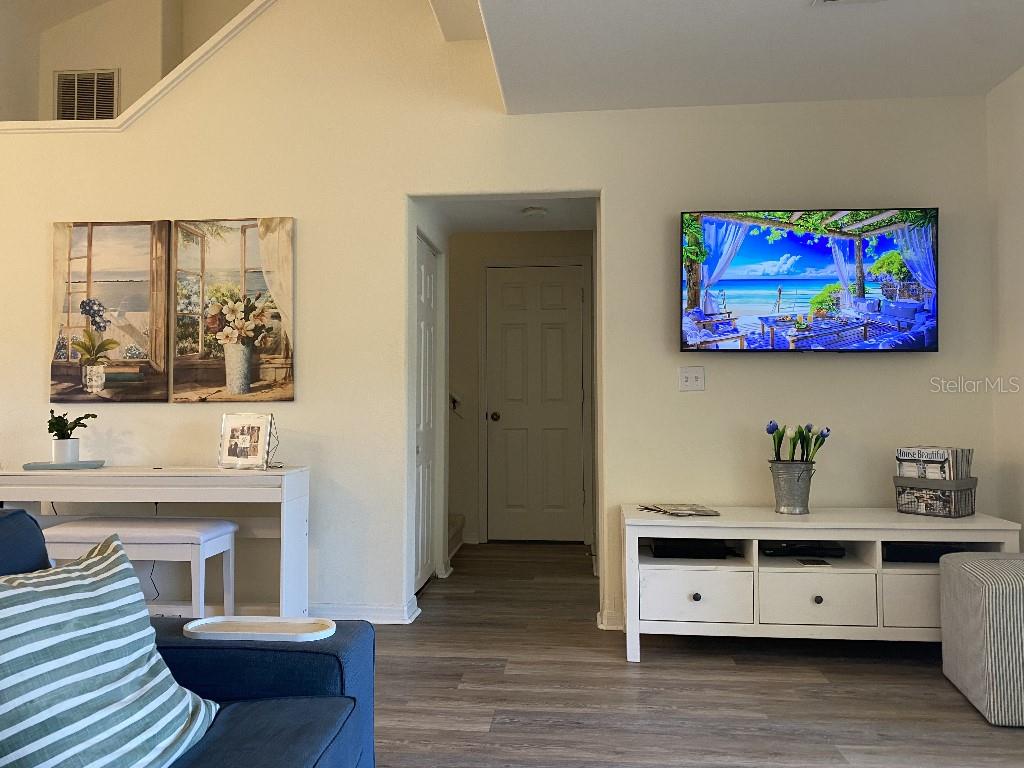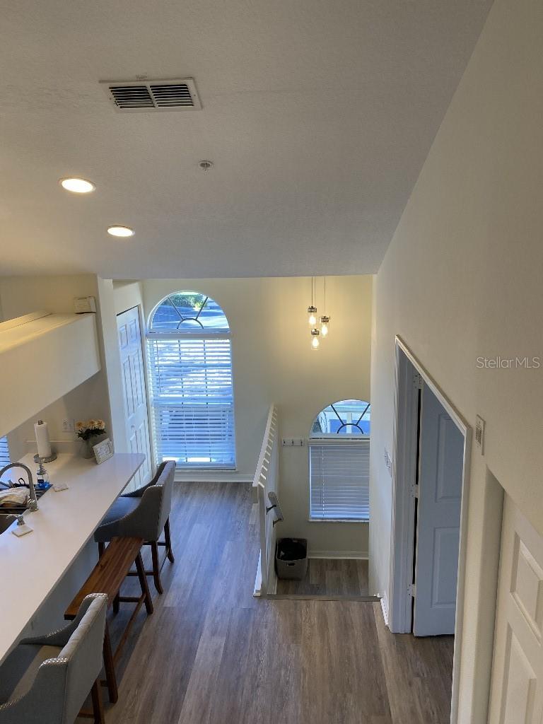 The ONLY 3 bedroom plus den available in the entire development, custom-built by the builder! Direct fountain/garden view, gated community, Upstairs there are two bedrooms and a full bathroom, The main floor features the master bedroom, a full bathroom with a spa tub and separate shower, kitchen, den, living room, dining room, laundry, and more. This second-floor townhouse-style condominium is maintenance-free. It boasts soaring ceilings, walk-in closets, a pantry, a breakfast bar, a full-size washer and dryer, replumbed features. Updated vinyl flooring, quartz countertops in kitchen and new appliances, all in 2022. There is ample storage with two walk-in closets, a kitchen pantry, and additional attic space. This condo has an assigned covered parking space directly in front of condo. It is conveniently located near the clubhouse and set in a park-like environment. The amenities at Pinestone are unmatched, including a large 'olympic' sized heated swimming pool with a spacious deck area, tables, chairs, lounges, umbrellas, a wet bar, BBQ grills, and a covered picnic area. Additionally, there are two lighted tennis courts, half basketball court, pickleball setting, shuffle board and bocce ball areas, hot tub/spa, gym/fitness room, billiard room, card room, 32-seat movie theater, library, on-site manager's office, and more. Pinestone is a gated community situated in the heart of Palmer Ranch, just a few miles from Siesta Key, other beaches, restaurants, shopping, grocery stores, and more. This condo currently has a home warranty with First American and the remainder is transferrable.