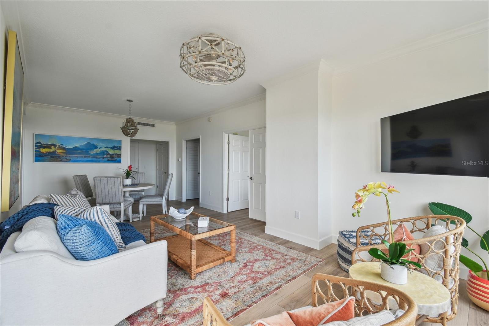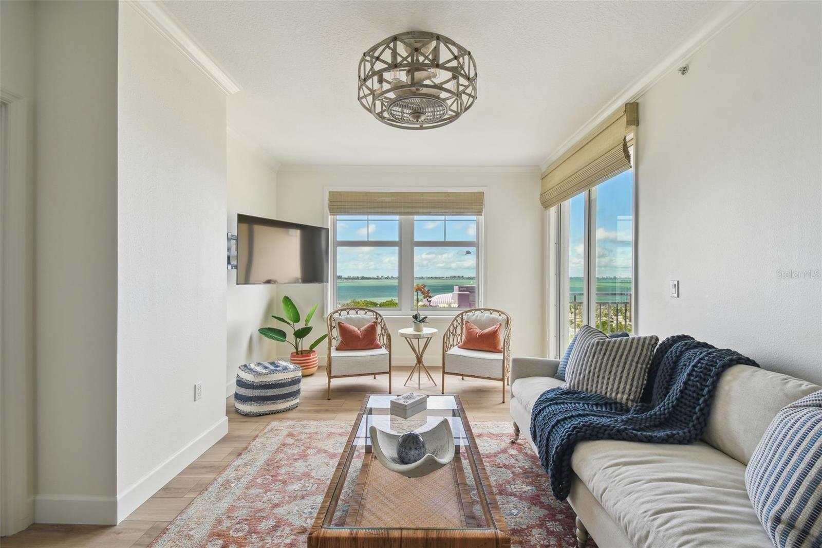 Discover unparalleled elegance and BREATHTAKING VIEWS with this STUNNING 12th-floor TURN KEY FULLY FURNISHED condo at The Renaissance, a prestigious address in the heart of downtown Sarasota. This meticulously RENOVATED, 2-BEDROOM, 1-BATHROOM residence offers sweeping, UNOBSTRRUCTED VIEWS of Sarasota Bay, Lido, and Longboat Keys—a rare find! Positioned perfectly to overlook the expansive 53-acre Bay Park, Unit #1203 guarantees your million-dollar views remain PROTECTED FROM FUTURE HIGH-RISE developments. The Bay Park, now in phase 2 of its transformative development, promises scenic pedestrian bridges, lush waterfront walkways, vibrant eateries, dynamic events, and a state-of-the-art performing arts center—all just steps from your doorstep. The residence underwent a COMPREHENSIVE RENOVATIONS in 2022, showcasing a brand-new kitchen with crisp white cabinetry, a stunning backsplash, and stainless steel appliances. The primary suite boasts breathtaking views and a spa-like ensuite, creating a serene retreat within your home. Additional features include stylish window treatments, designer lighting, contemporary flooring, and refined finishes throughout. Every detail has been thoughtfully curated to create a sophisticated yet comfortable living space. The Renaissance OFFERS A WEALTH OF LUXURY AMENITIES, including a heated resort-style pool with lap lanes and spa, a fully equipped fitness center, yoga and massage rooms, business suites, a club room with a full kitchen, a cozy library with a fireplace, and two guest suites available for visiting friends and family. Pet-friendly and community-oriented, this building embodies the pinnacle of Sarasota living. Situated near the vibrant Arts District, renowned theaters, gourmet dining, and upscale shopping, this condo offers unparalleled convenience. A quick three-mile drive over the iconic John Ringling Causeway brings you to the white sands of St. Armands, Lido Beach, and Longboat Key. Embrace the quintessential Sarasota lifestyle with this exceptional property—a perfect blend of luxury, location, and lasting value.