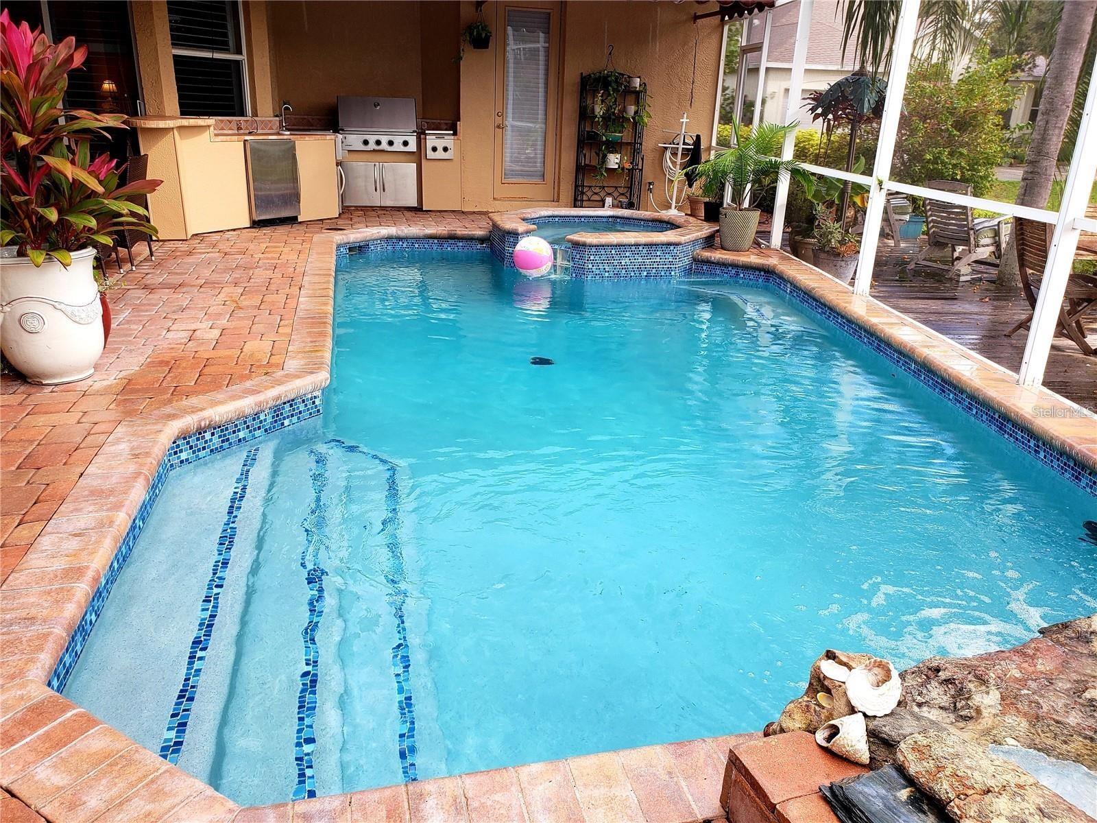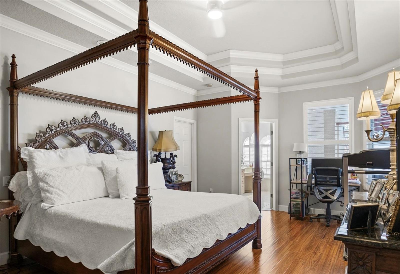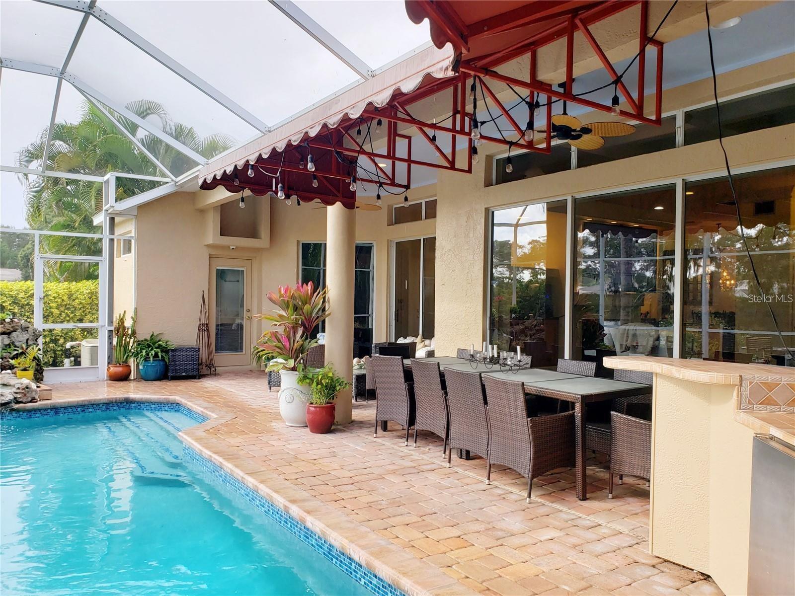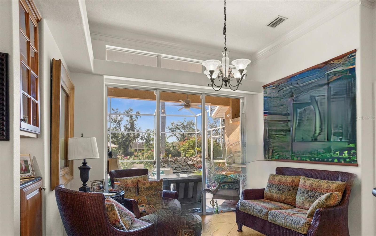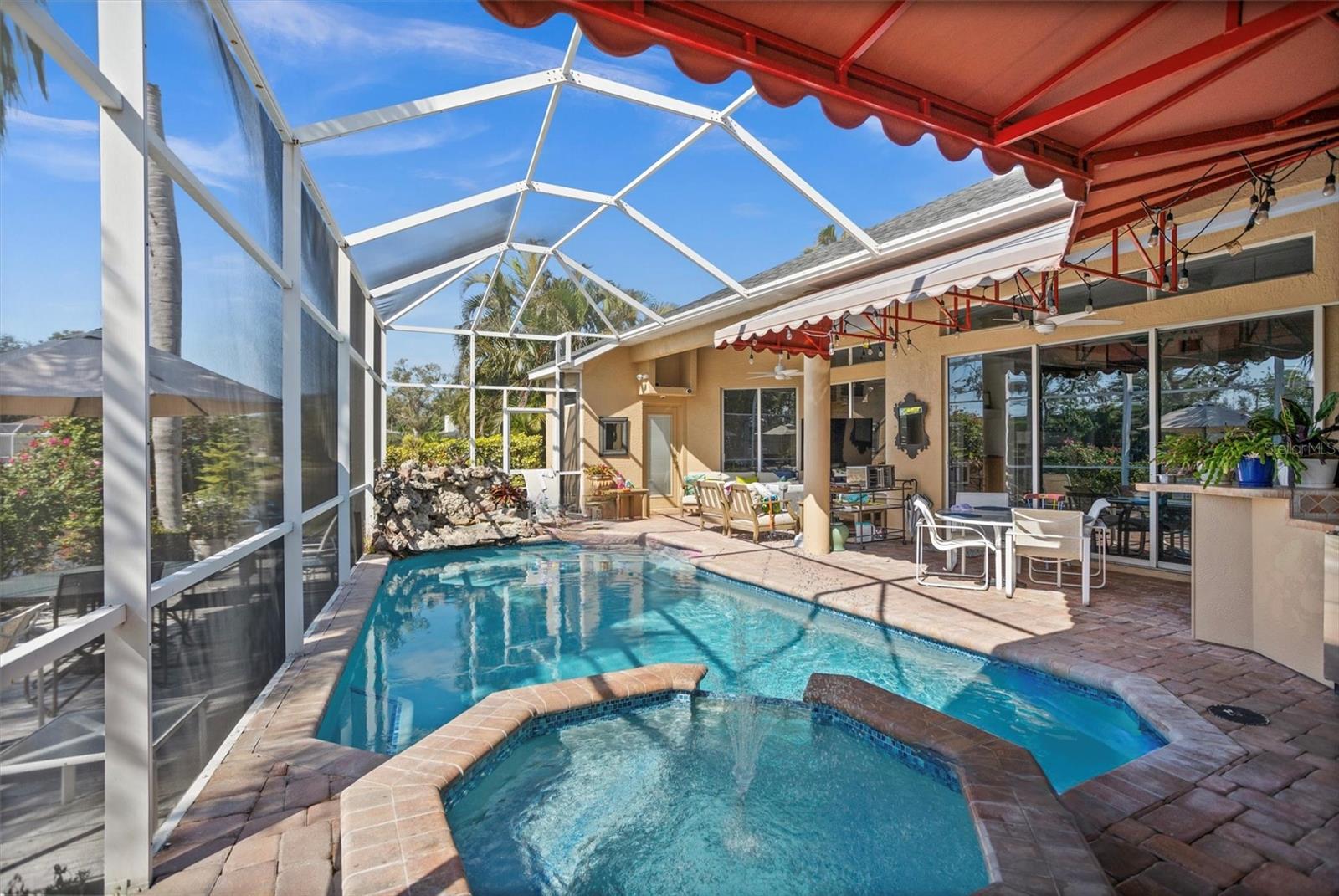Villa Della Dolce Vita – The House of the Good Life Nestled in the enchanting Magnolia Pond community, Villa Della Dolce Vita is a masterpiece of luxury and comfort. High and dry through the recent storm season, this exceptional home offers peace of mind with a new shingle roof (2021), two tankless water heaters, and a new HVAC system updated in recent years, 2025 new Pool Natural Gas Heater. A brick paver driveway leads to the three-car garage and elegant double-door entry, surrounded by lush, manicured landscaping. Step inside to soaring ceilings, a formal living room with a gas fireplace and coffered ceiling, and pocket sliding doors that seamlessly blend indoor and outdoor living. Designed for the culinary enthusiast, this home boasts two kitchens. The primary kitchen opens to a casual dining area and features high-end appliances and custom cabinetry. The separate prep kitchen is a rare luxury, equipped with a 60" commercial refrigerator, Meile built-in oven, additional cooktop, dishwasher, sink, and extra storage—perfect for seamless entertaining. The formal dining room is a showstopper, featuring a coffered ceiling, wood flooring, and an exquisite chandelier, setting the stage for unforgettable dining experiences. The owner’s suite is a private sanctuary, complete with a spacious walk-through closet and direct access to the screened-in lanai. The en-suite bath leads to the outdoor retreat, where a heated pool and spa await, along with a full outdoor kitchen and plenty of space to unwind. Just beyond the lanai, a sun deck overlooking the tranquil pond provides the perfect place to relax and soak in the Florida sunshine. Guests will appreciate the private second bedroom suite, featuring an en-suite bath with direct pool access. Need a home office or bonus space? One of the garage bays is partially converted into an air-conditioned office/bonus room, offering endless possibilities. All of this is just minutes from Sarasota’s world-class beaches, fine dining, UTC Mall, and The Legacy Trail.