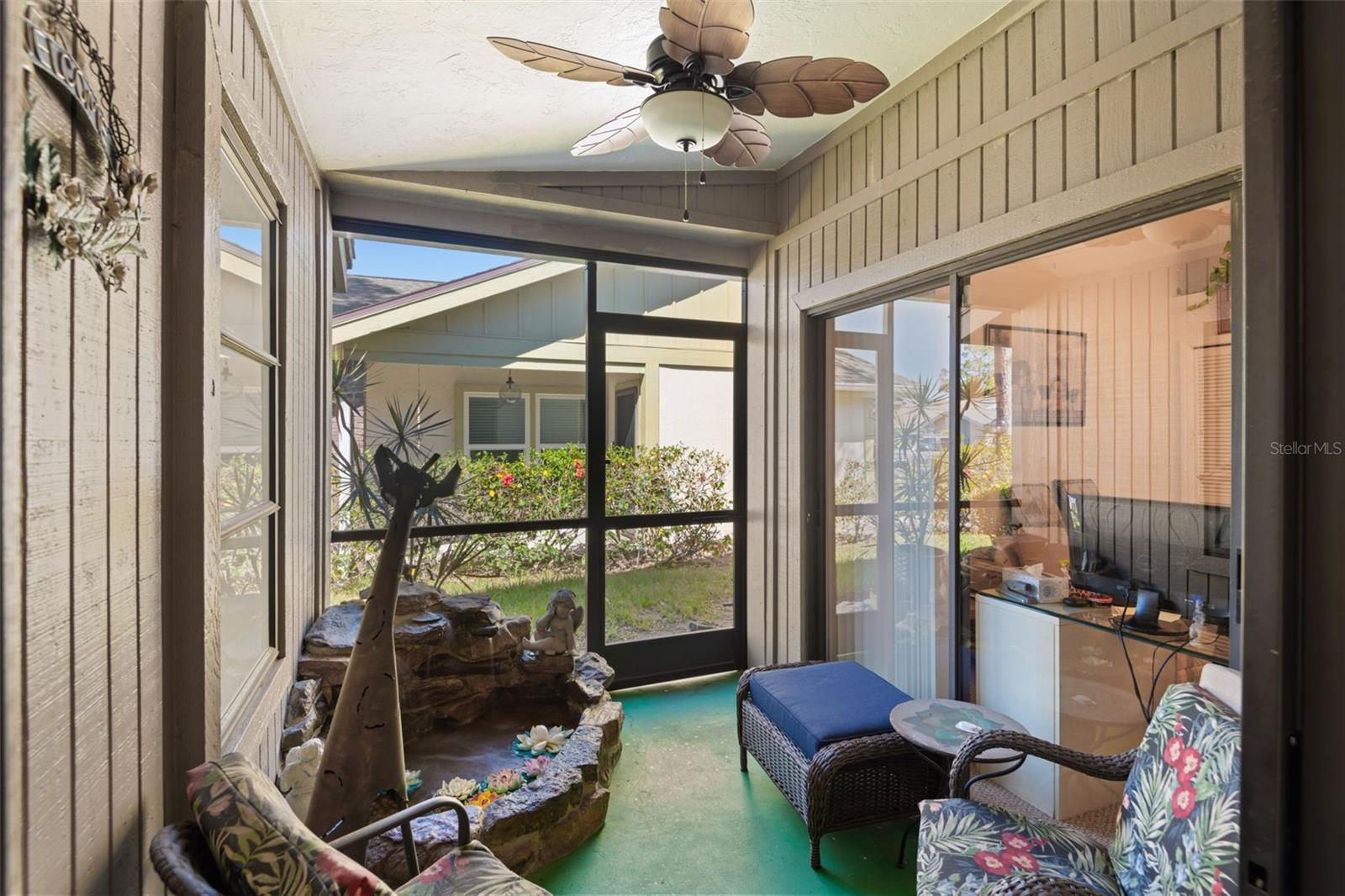 Welcome home to this rarely available 3 bedroom maintenance free villa in Pine Trace in Palm Aire. As you enter through the front doors you come into the living room. To your left will be a screened in area with a nice waterfall that is perfect for relaxing and reading in a quiet setting. To the right is the kitchen that boasts a large eat-in area, Corian counters, plenty of cabinet space and counter space for preparing large meals. There is a passthrough from the kitchen to the Florida room which is perfect for entertaining. Natural light is prevalent in the master bedroom which also has a large walk-in closet and is situated at the rear of the house. The master bath has a shower, and lots of room to get your day started. The other two bedroom are in the front of the house which provides for a perfect split plan. The garage floor was just painted in Feb 25, AC 2018, Roof 2016 (scheduled again for 2030), water heater 2024, Sunlight above the front door, vaulted ceilings, hurricane windows in the master bedroom, above front door, and the front bedroom in 2024. There is an ADT monitored security system as well. The gutter system has leaf filter guards on it preventing any blockage and the back windows all have hurricane shutters. This is conveniently located next to the Country Club, pickleball and tennis courts and golf course. Five minutes from UTC with all of the shopping and world class restaurants you could want. 15 minutes from some of the best beaches in the world!