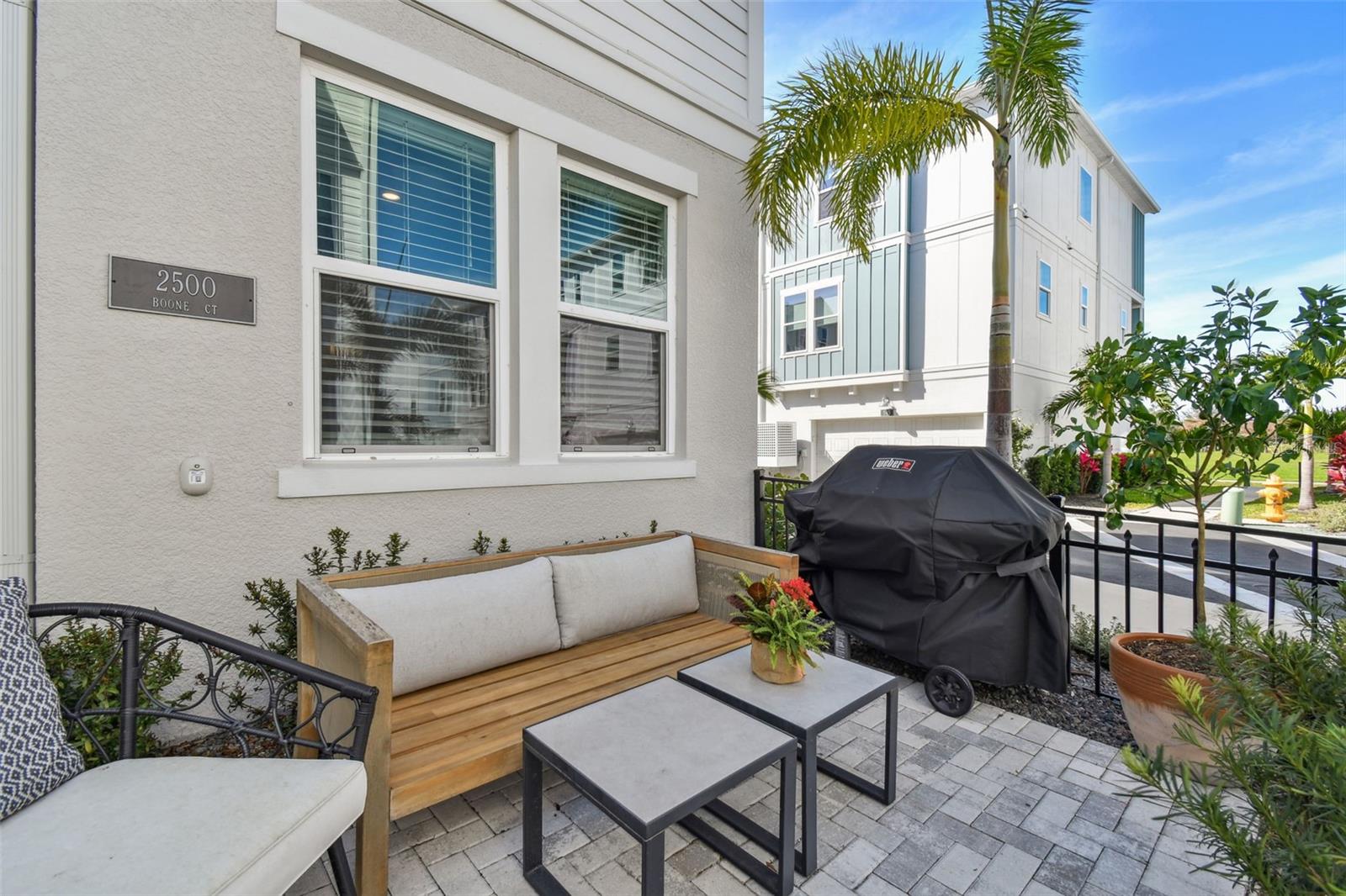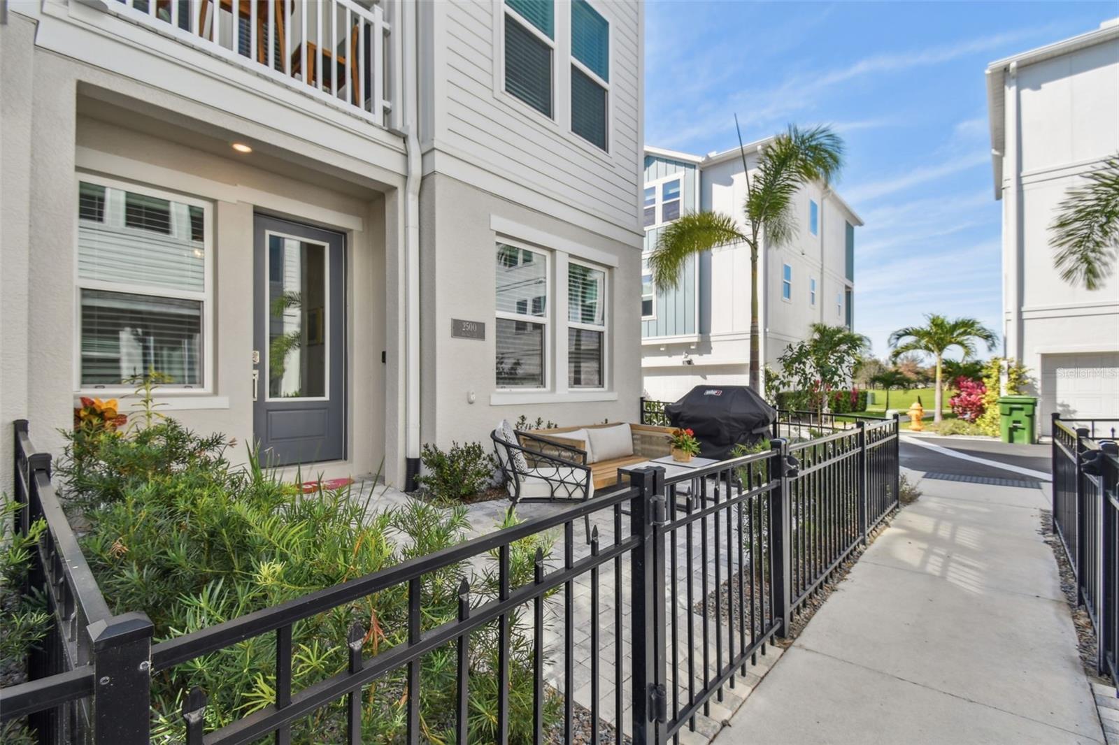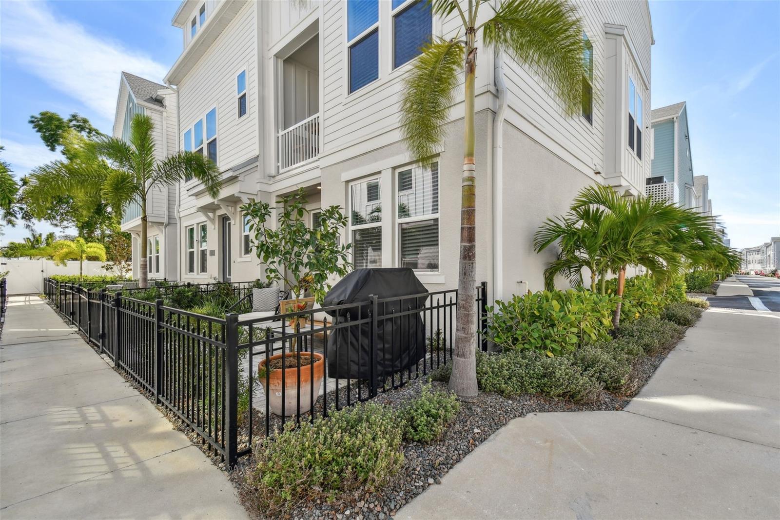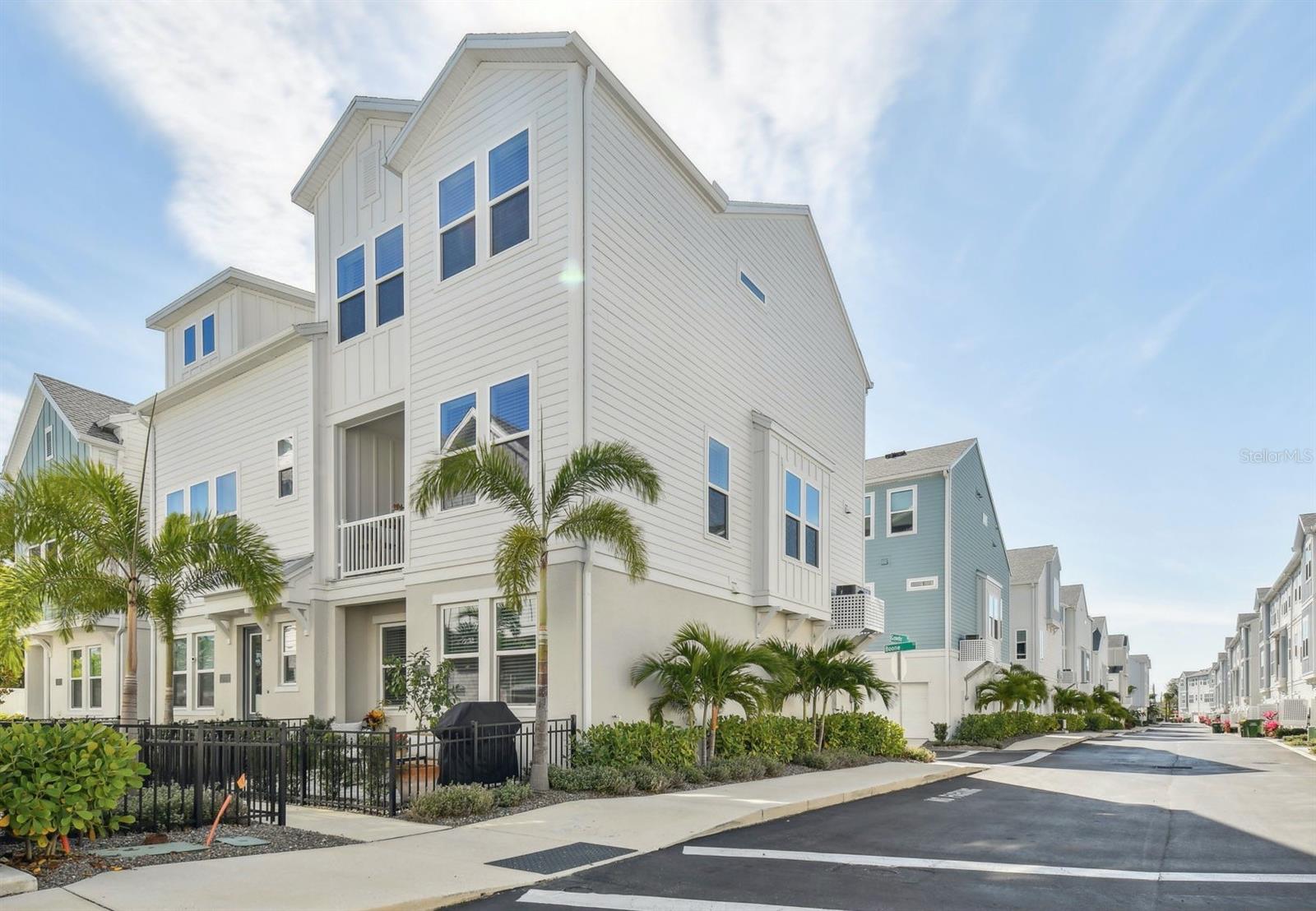 A Perfect Blend of Luxury, Comfort and Convenience welcomes you at this Stunning Three-Story townhome, built in 2023, situated between the Legacy Trail and Payne Park and within walking distance to many of Sarasota’s best amenities and restaurants. This high and dry desirable End-Unit offers ample natural light, wide plank floors, an open floorplan, extra hurricane rated windows in the main living area, and upgrades throughout. The second story main living space soars with 10 foot ceilings and flows seamlessly from Living Room to Dining Room and into the Gourmet Kitchen - featuring floor to ceiling cabinetry, built-in oven and microwave, oversized island, quartz countertops and built-in cooktop. The perfectly organized walk-in pantry compliments this dream kitchen. Perfect for entertaining, this floor also features a half bath and a covered balcony off the main living area. The first-floor bedroom with en-suite bathroom serves as a flexible space, ideal for gym, office, guest quarters, or media room. Walk outside and enjoy coffee or the evening air on your fenced-in pavered porch. The third-floor features a secondary bedroom with en-suite bathroom, laundry and primary suite. The oversized owners retreat features a sitting area with ample natural light, trey ceiling, and spacious bathroom - complete with dual sinks, a walk-in shower, separate water closet and massive walk-in closet with built-in organizational shelving. This move-in ready home has been meticulously maintained and is better than new! Beyond the home, residents enjoy the community resort style pool, spa, cabana, BBQ area and dog park. Just steps away are the Legacy Trail and pet friendly Payne Park — offering lush green spaces, scenic walking trails, a skate park, disc golf course, and the popular circus playground. Tennis enthusiasts will love being close to the Payne Park Tennis Center, featuring state-of-the-art courts for all skill levels. For those who embrace city life, downtown Sarasota provides endless options for dining, shopping, the arts, and entertainment. Explore the vibrant farmers’ market, theaters, and restaurants, or hop on the trolley for a short ride to St. Armands or world renowned beaches of Lido, Siesta and Longboat Key. This community offers the best of everything living in Downtown Sarasota has to enjoy. No flood insurance required and hurricane impact windows throughout.