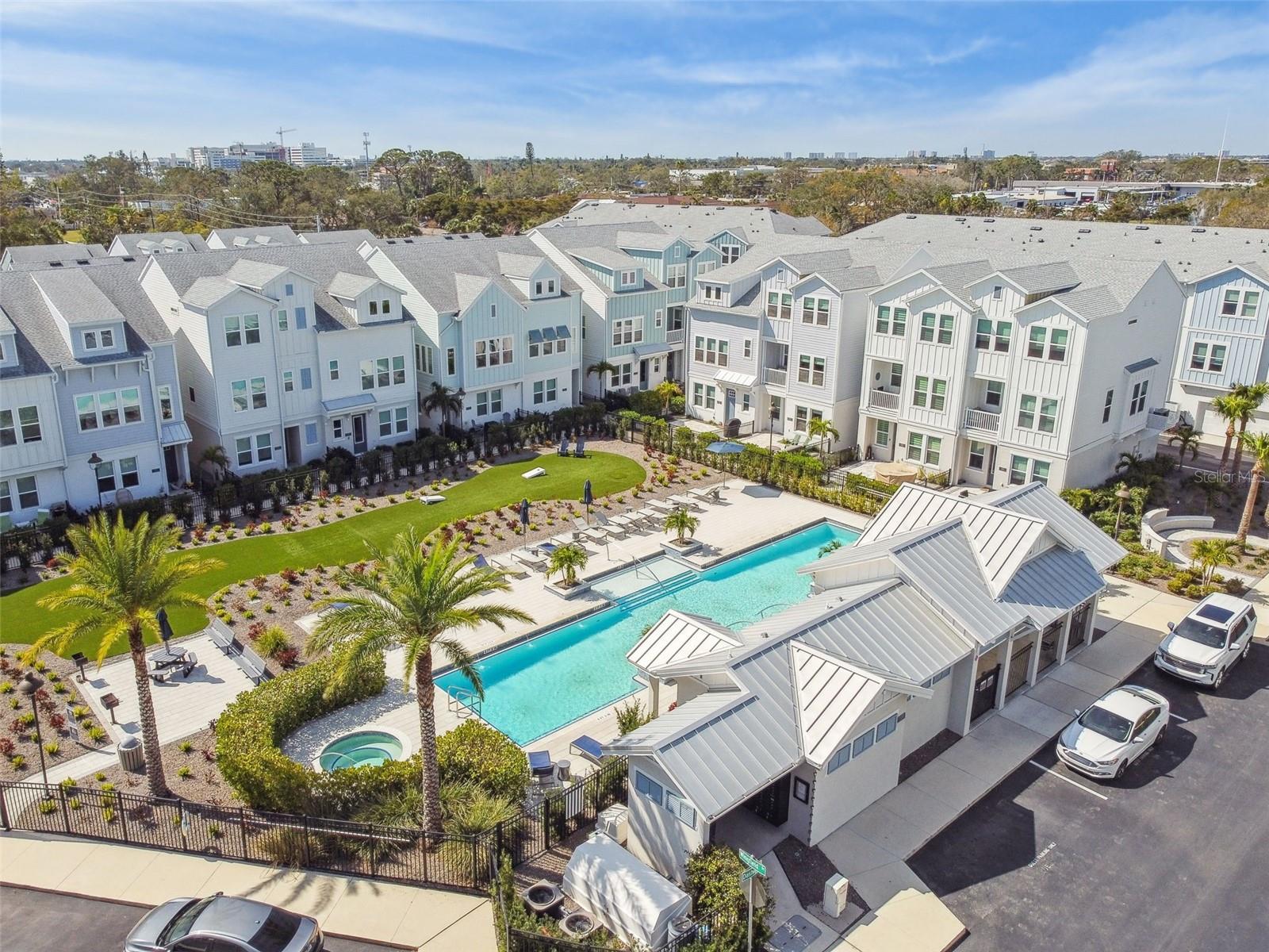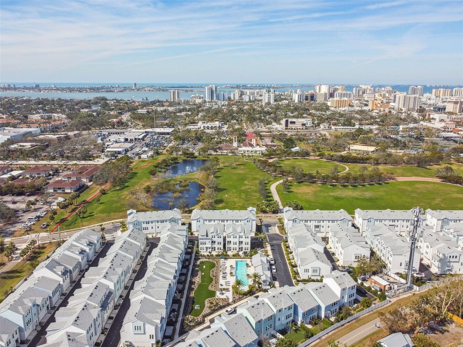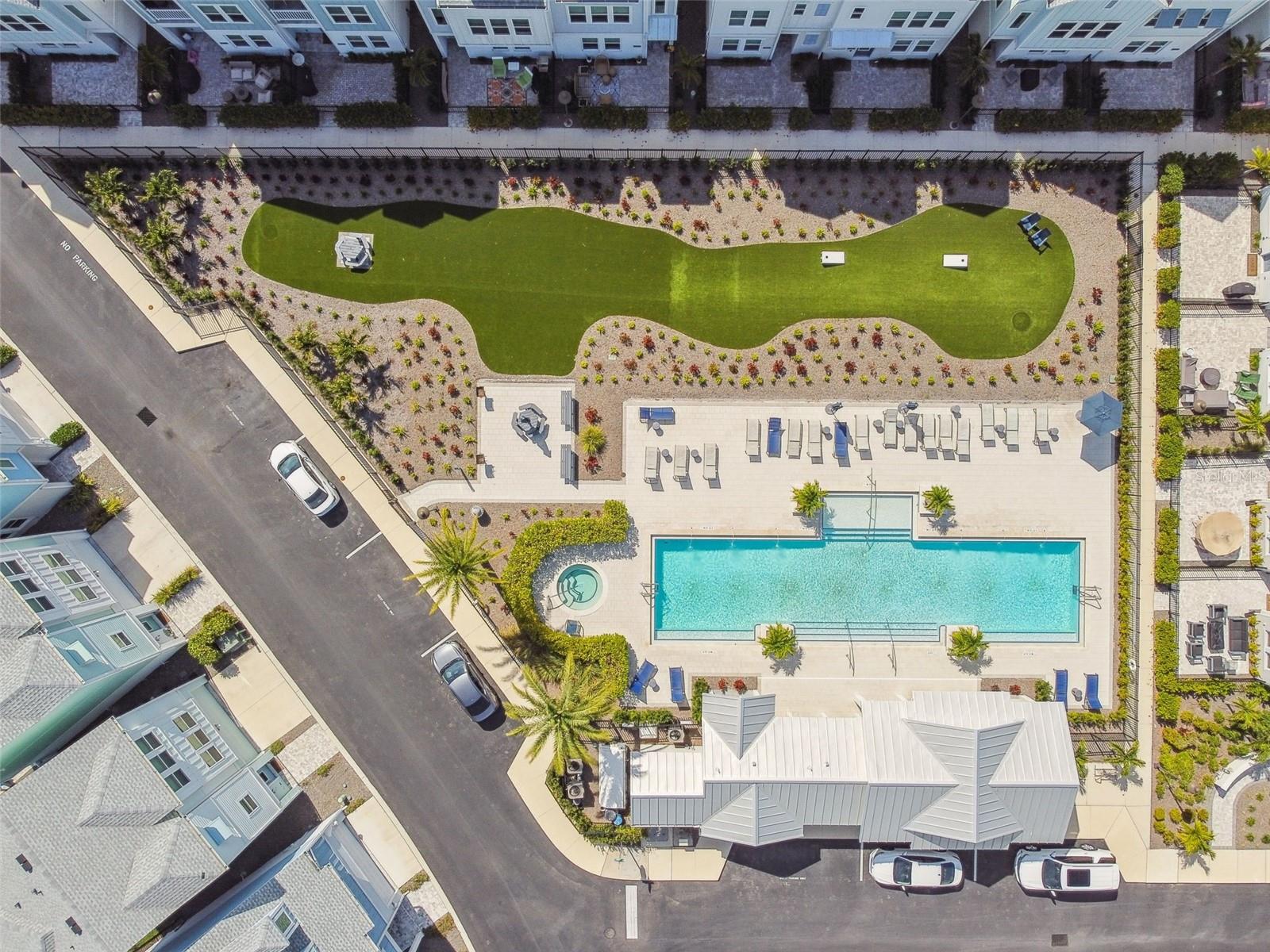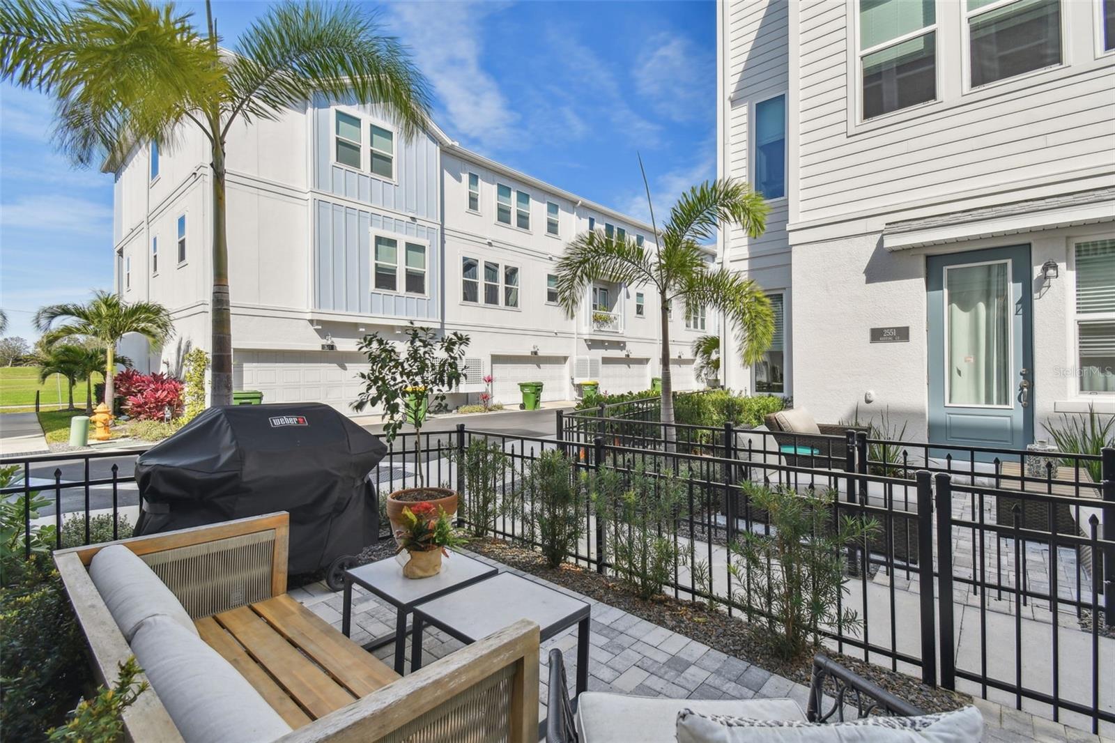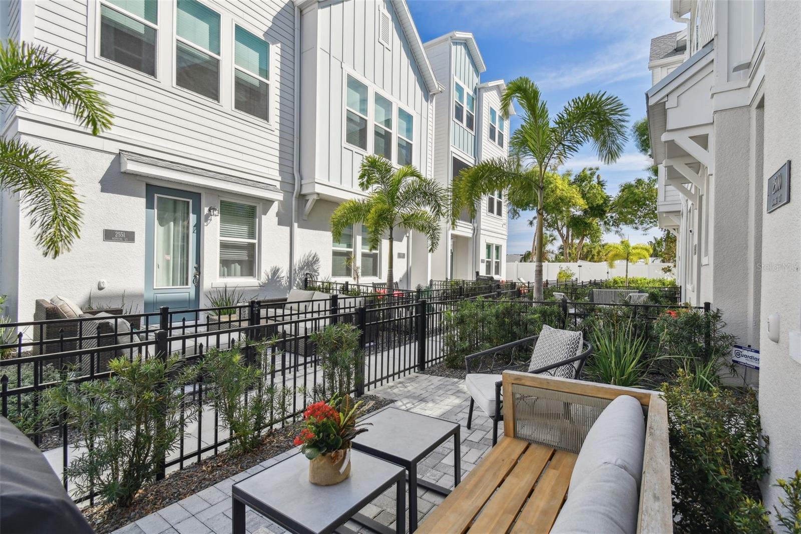 A Perfect Blend of Luxury, Comfort and Convenience welcomes you at this Stunning Three-Story townhome, built in 2023, situated between the Legacy Trail and Payne Park and within walking distance to many of Sarasota’s best amenities and restaurants. This high and dry desirable End-Unit offers ample natural light, wide plank floors, an open floorplan, extra hurricane rated windows in the main living area, and upgrades throughout. The second story main living space soars with 10 foot ceilings and flows seamlessly from Living Room to Dining Room and into the Gourmet Kitchen - featuring floor to ceiling cabinetry, built-in oven and microwave, oversized island, quartz countertops and built-in cooktop. The perfectly organized walk-in pantry compliments this dream kitchen. Perfect for entertaining, this floor also features a half bath and a covered balcony off the main living area. The first-floor bedroom with en-suite bathroom serves as a flexible space, ideal for gym, office, guest quarters, or media room. Walk outside and enjoy coffee or the evening air on your fenced-in pavered porch. The third-floor features a secondary bedroom with en-suite bathroom, laundry and primary suite. The oversized owners retreat features a sitting area with ample natural light, trey ceiling, and spacious bathroom - complete with dual sinks, a walk-in shower, separate water closet and massive walk-in closet with built-in organizational shelving. This move-in ready home has been meticulously maintained and is better than new! Beyond the home, residents enjoy the community resort style pool, spa, cabana, BBQ area and dog park. Just steps away are the Legacy Trail and pet friendly Payne Park — offering lush green spaces, scenic walking trails, a skate park, disc golf course, and the popular circus playground. Tennis enthusiasts will love being close to the Payne Park Tennis Center, featuring state-of-the-art courts for all skill levels. For those who embrace city life, downtown Sarasota provides endless options for dining, shopping, the arts, and entertainment. Explore the vibrant farmers’ market, theaters, and restaurants, or hop on the trolley for a short ride to St. Armands or world renowned beaches of Lido, Siesta and Longboat Key. This community offers the best of everything living in Downtown Sarasota has to enjoy. No flood insurance required and hurricane impact windows throughout.