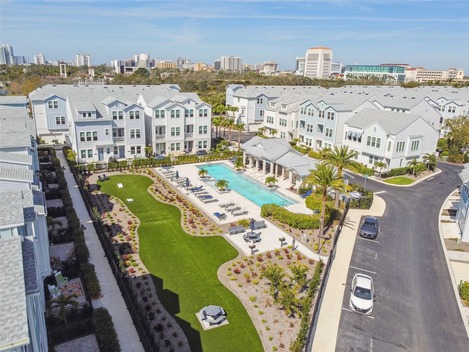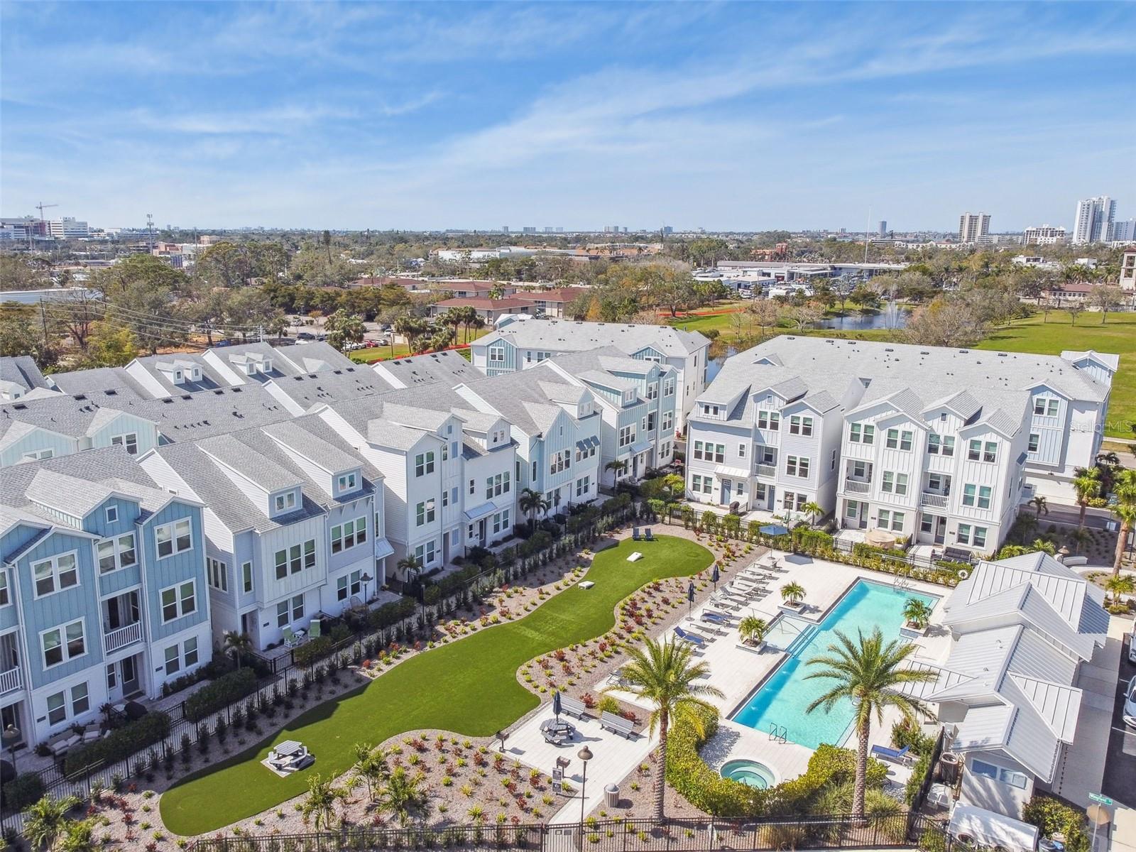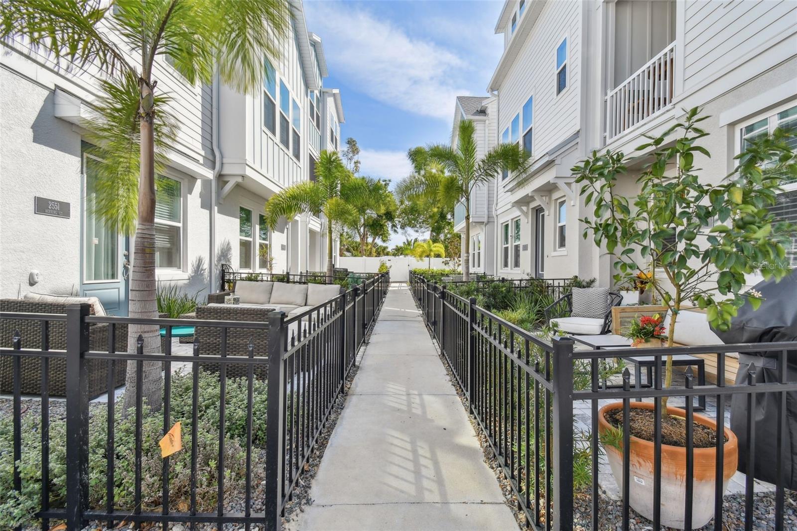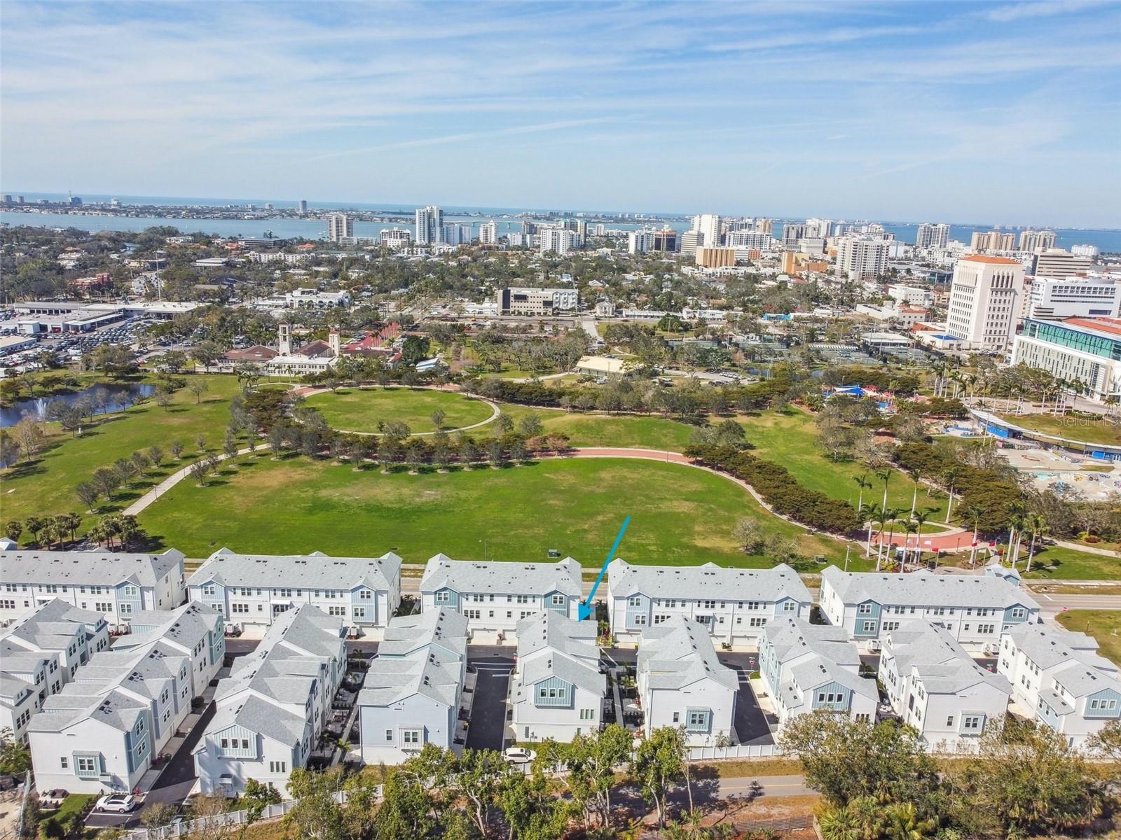A Perfect Blend of Luxury, Comfort and Convenience welcomes you at this Stunning Three-Story townhome, built in 2023, situated between the Legacy Trail and Payne Park and within walking distance to many of Sarasota’s best amenities and restaurants. This high and dry desirable End-Unit offers ample natural light, wide plank floors, an open floorplan, extra hurricane rated windows in the main living area, and upgrades throughout. The second story main living space soars with 10 foot ceilings and flows seamlessly from Living Room to Dining Room and into the Gourmet Kitchen - featuring floor to ceiling cabinetry, built-in oven and microwave, oversized island, quartz countertops and built-in cooktop. The perfectly organized walk-in pantry compliments this dream kitchen. Perfect for entertaining, this floor also features a half bath and a covered balcony off the main living area. The first-floor bedroom with en-suite bathroom serves as a flexible space, ideal for gym, office, guest quarters, or media room. Walk outside and enjoy coffee or the evening air on your fenced-in pavered porch. The third-floor features a secondary bedroom with en-suite bathroom, laundry and primary suite. The oversized owners retreat features a sitting area with ample natural light, trey ceiling, and spacious bathroom - complete with dual sinks, a walk-in shower, separate water closet and massive walk-in closet with built-in organizational shelving. This move-in ready home has been meticulously maintained and is better than new! Beyond the home, residents enjoy the community resort style pool, spa, cabana, BBQ area and dog park. Just steps away are the Legacy Trail and pet friendly Payne Park — offering lush green spaces, scenic walking trails, a skate park, disc golf course, and the popular circus playground. Tennis enthusiasts will love being close to the Payne Park Tennis Center, featuring state-of-the-art courts for all skill levels. For those who embrace city life, downtown Sarasota provides endless options for dining, shopping, the arts, and entertainment. Explore the vibrant farmers’ market, theaters, and restaurants, or hop on the trolley for a short ride to St. Armands or world renowned beaches of Lido, Siesta and Longboat Key. This community offers the best of everything living in Downtown Sarasota has to enjoy. No flood insurance required and hurricane impact windows throughout.