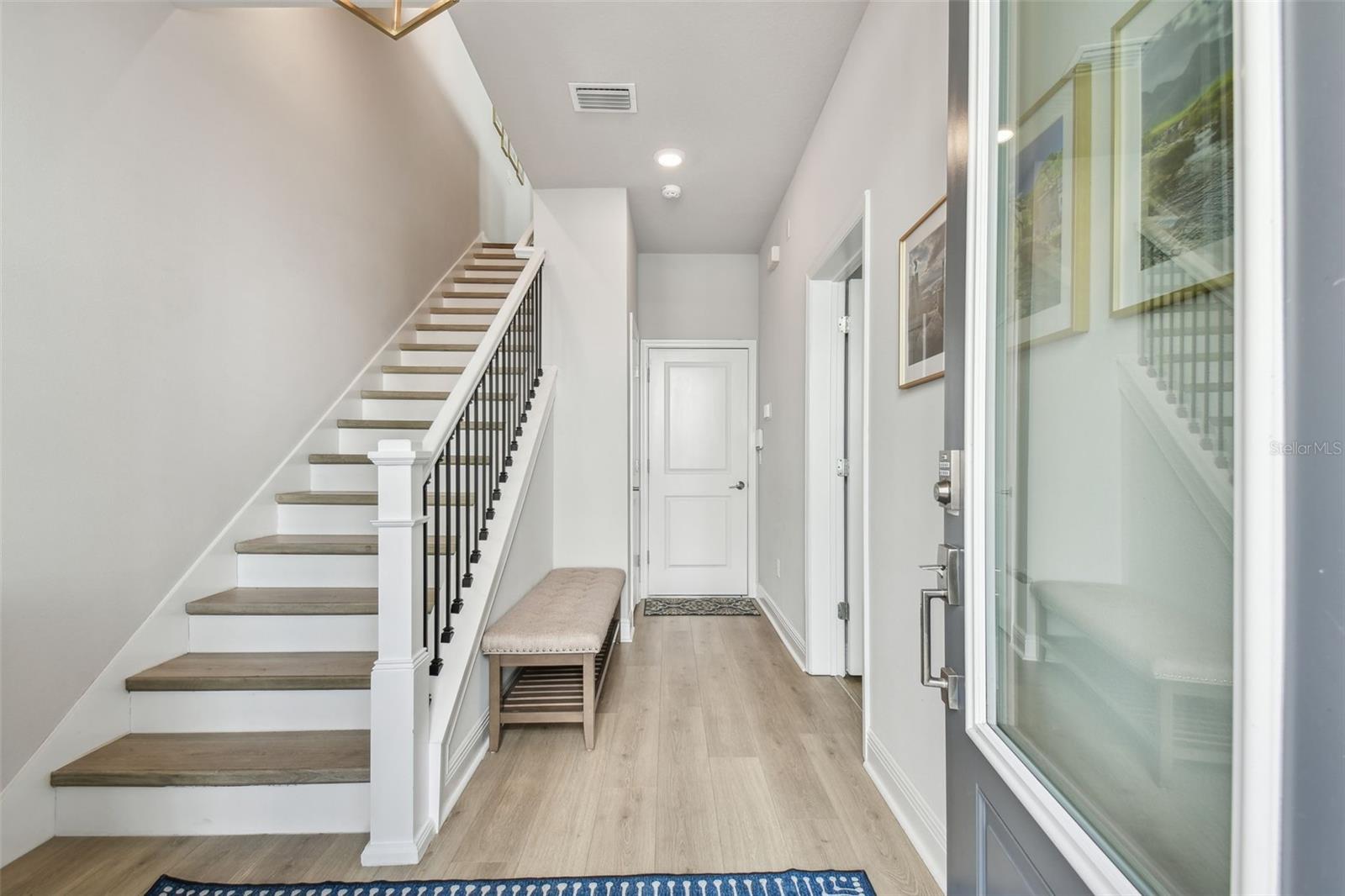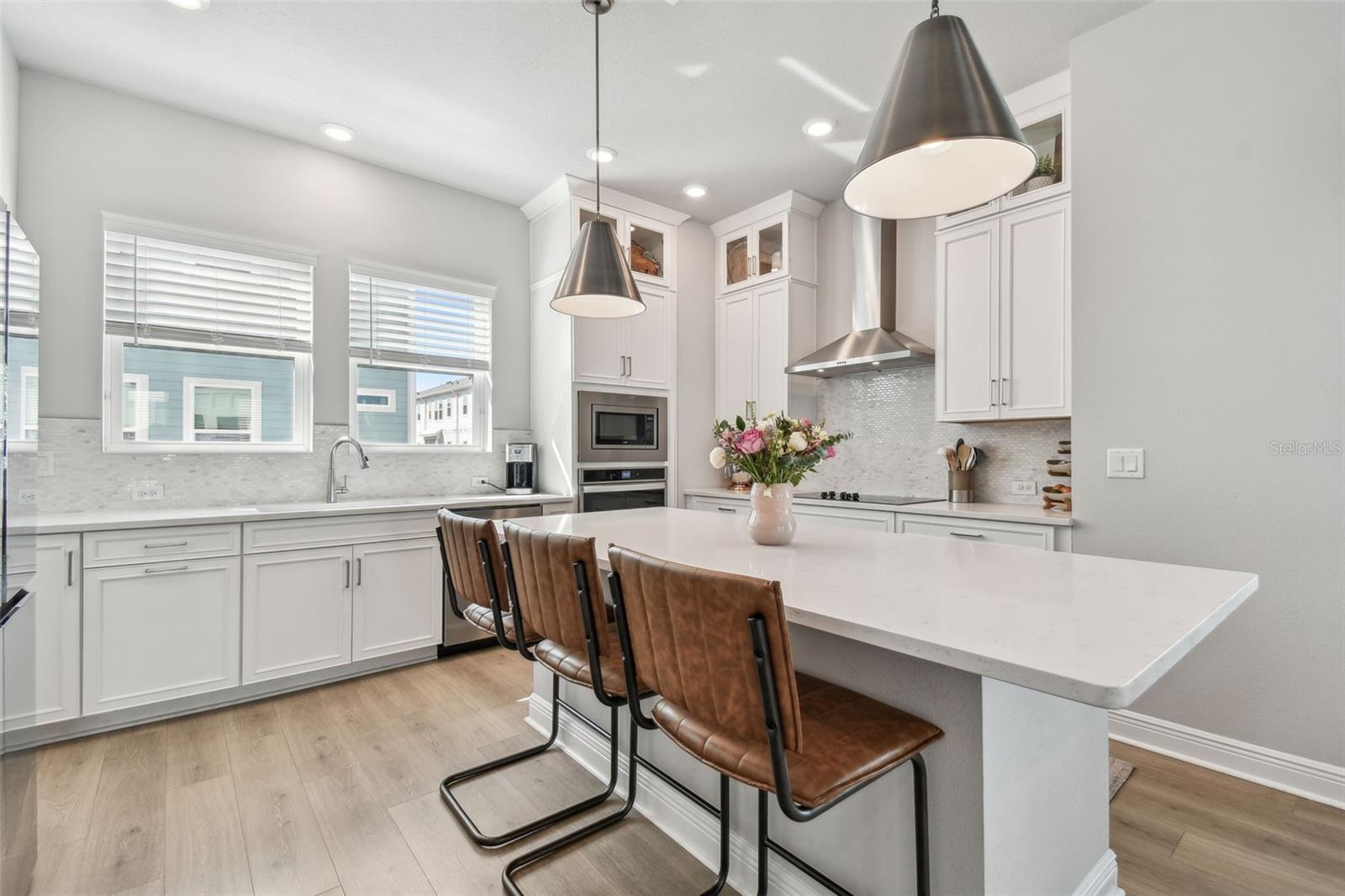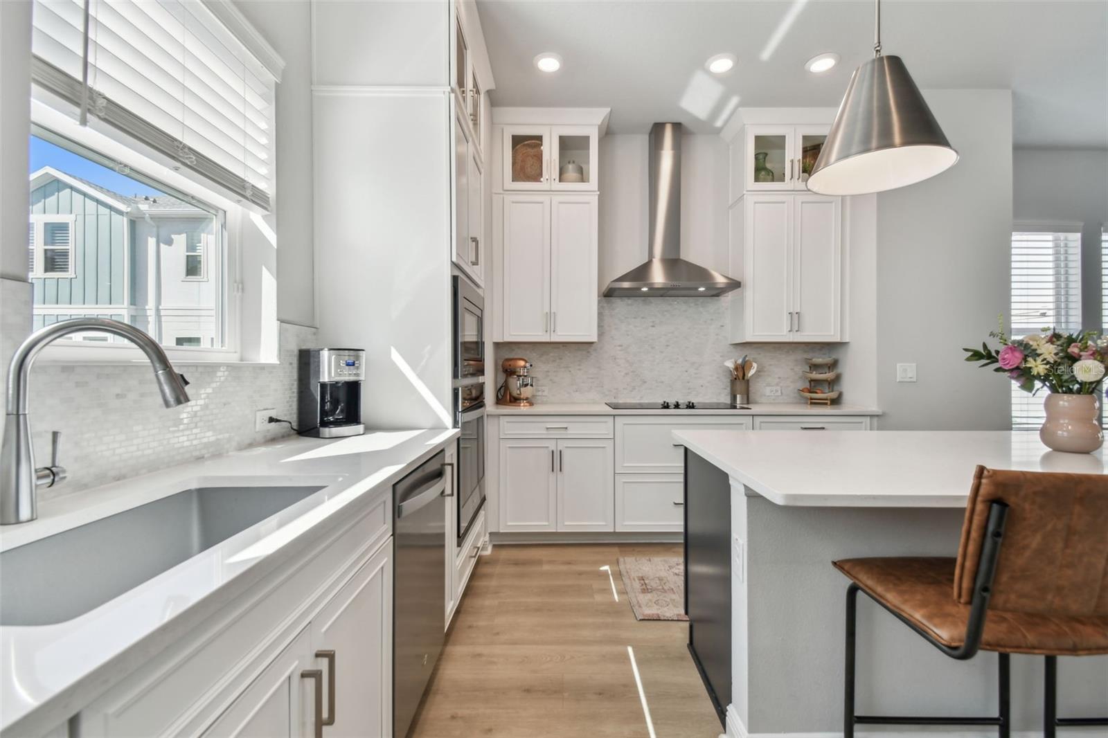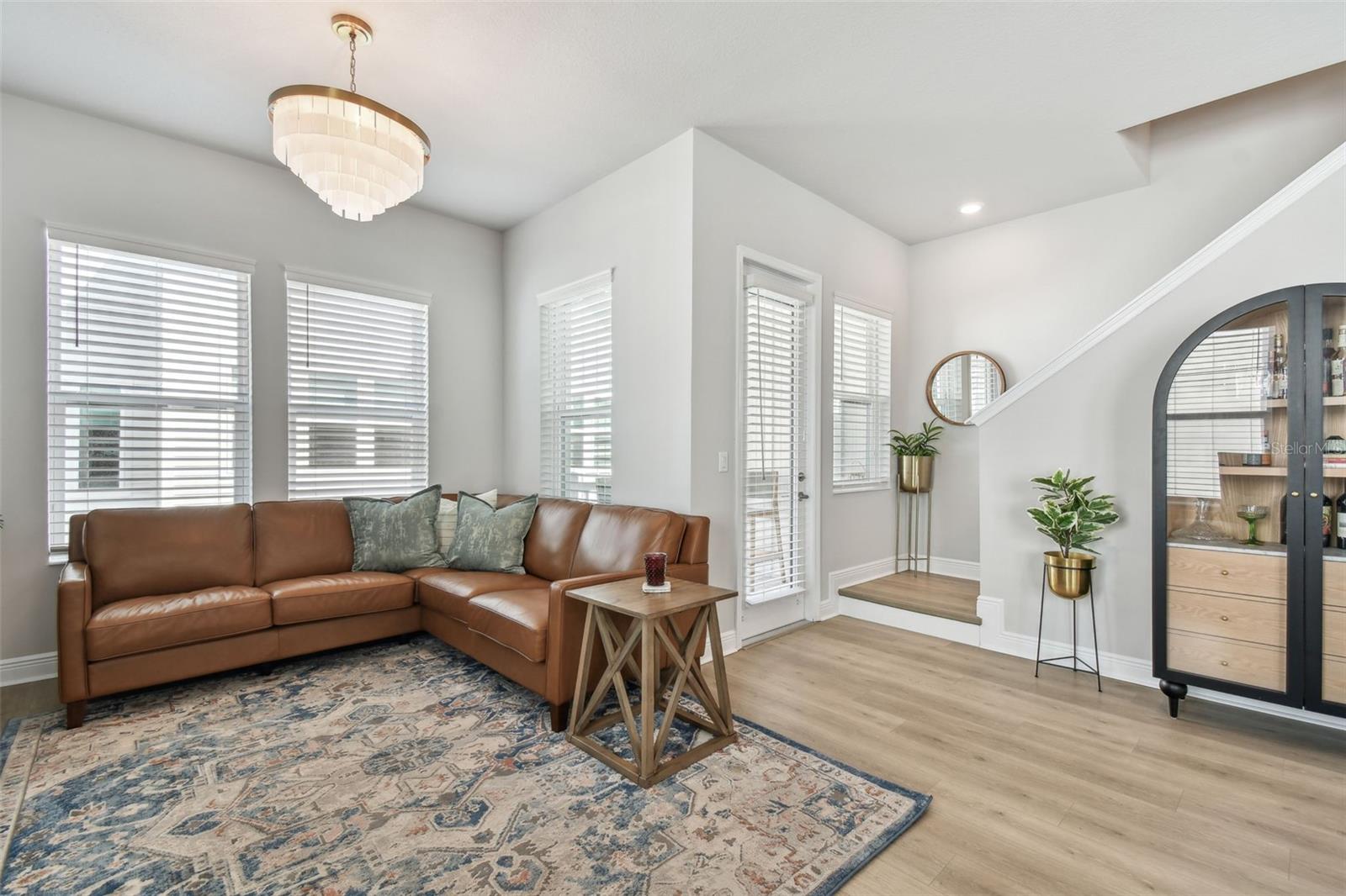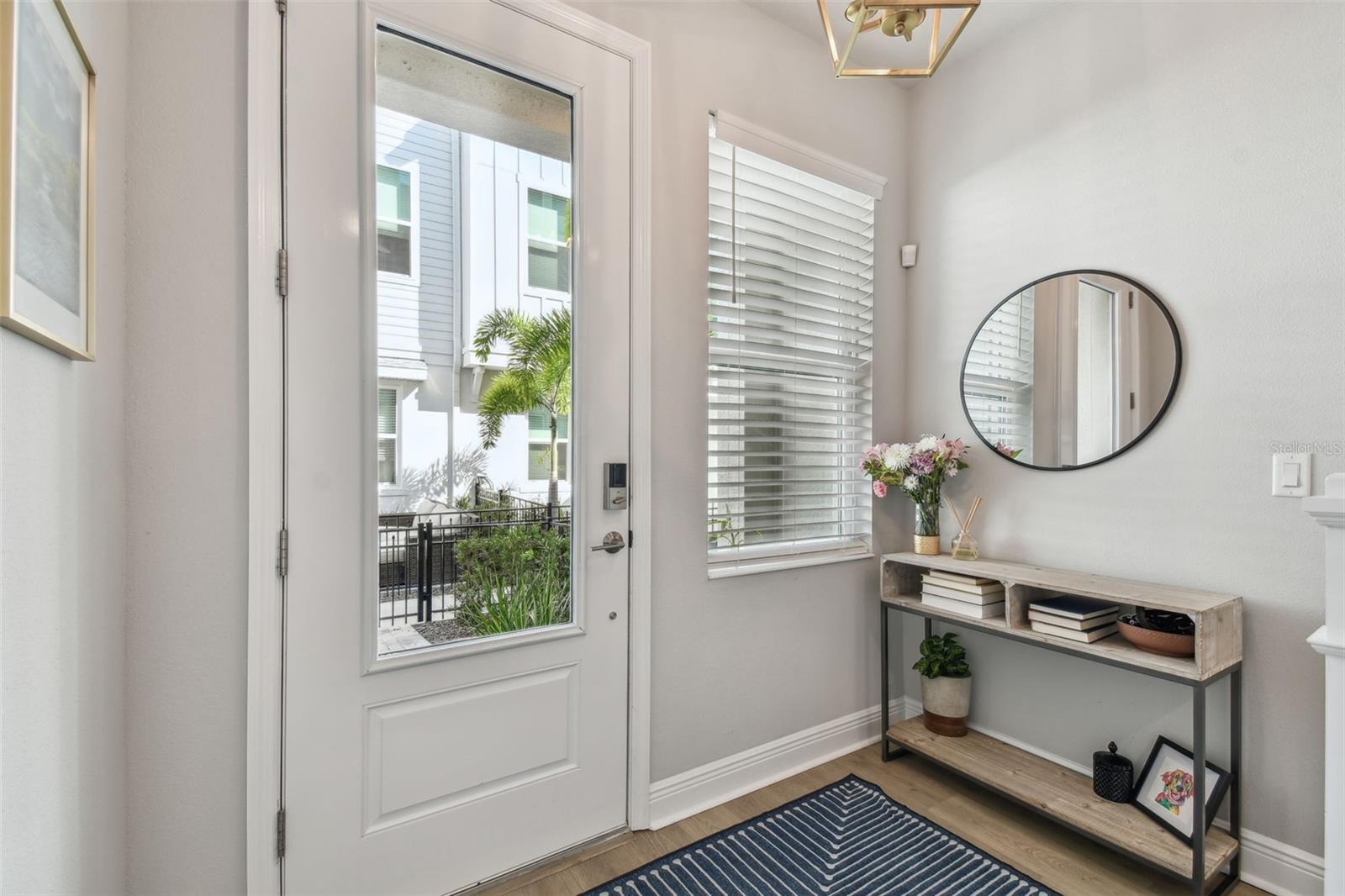 A Perfect Blend of Luxury, Comfort and Convenience welcomes you at this Stunning Three-Story townhome, built in 2023, situated between the Legacy Trail and Payne Park and within walking distance to many of Sarasota’s best amenities and restaurants. This high and dry desirable End-Unit offers ample natural light, wide plank floors, an open floorplan, extra hurricane rated windows in the main living area, and upgrades throughout. The second story main living space soars with 10 foot ceilings and flows seamlessly from Living Room to Dining Room and into the Gourmet Kitchen - featuring floor to ceiling cabinetry, built-in oven and microwave, oversized island, quartz countertops and built-in cooktop. The perfectly organized walk-in pantry compliments this dream kitchen. Perfect for entertaining, this floor also features a half bath and a covered balcony off the main living area. The first-floor bedroom with en-suite bathroom serves as a flexible space, ideal for gym, office, guest quarters, or media room. Walk outside and enjoy coffee or the evening air on your fenced-in pavered porch. The third-floor features a secondary bedroom with en-suite bathroom, laundry and primary suite. The oversized owners retreat features a sitting area with ample natural light, trey ceiling, and spacious bathroom - complete with dual sinks, a walk-in shower, separate water closet and massive walk-in closet with built-in organizational shelving. This move-in ready home has been meticulously maintained and is better than new! Beyond the home, residents enjoy the community resort style pool, spa, cabana, BBQ area and dog park. Just steps away are the Legacy Trail and pet friendly Payne Park — offering lush green spaces, scenic walking trails, a skate park, disc golf course, and the popular circus playground. Tennis enthusiasts will love being close to the Payne Park Tennis Center, featuring state-of-the-art courts for all skill levels. For those who embrace city life, downtown Sarasota provides endless options for dining, shopping, the arts, and entertainment. Explore the vibrant farmers’ market, theaters, and restaurants, or hop on the trolley for a short ride to St. Armands or world renowned beaches of Lido, Siesta and Longboat Key. This community offers the best of everything living in Downtown Sarasota has to enjoy. No flood insurance required and hurricane impact windows throughout.