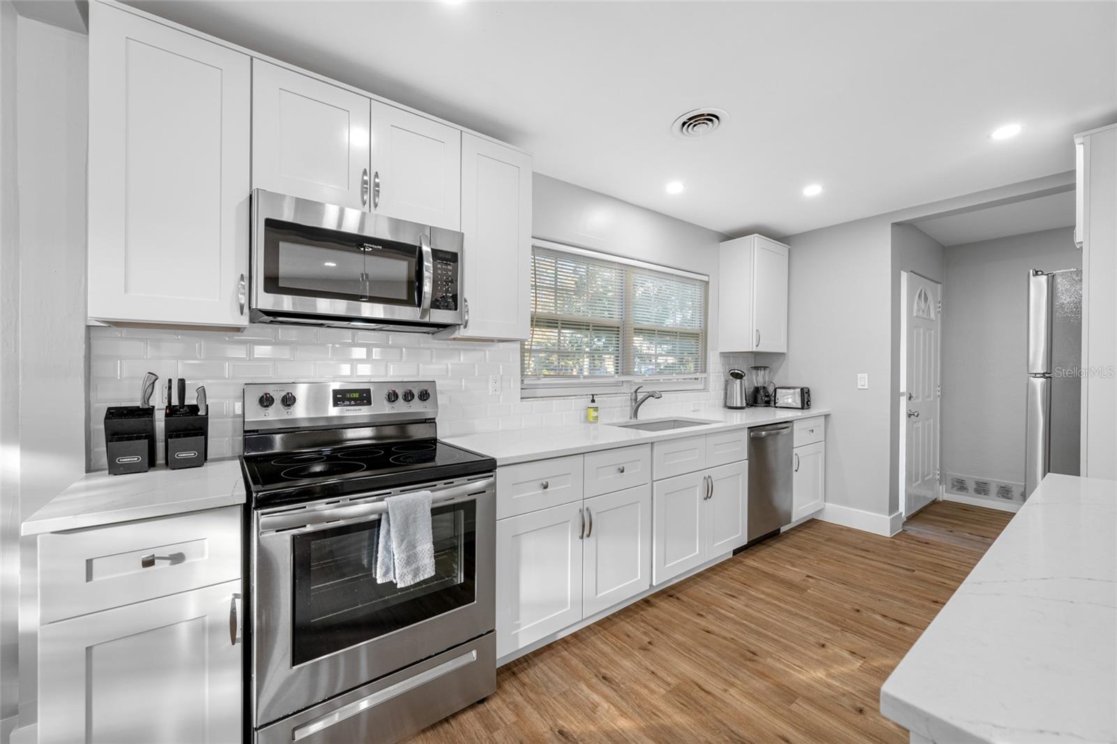 Last Price reduction!!!! ROOF NEEDS TO BE REPLACED. Great Opportunity for primary residence and short term rentals investors, due to the Prime Location, 7 Min From SMH Hospital&10 Min From Siesta-Key Famous Beach. This stunning property at 3104 Bay Street offers contemporary Florida living with a complete top-to-bottom renovation featuring an open-concept layout, beautiful wood-look flooring, and a fresh light gray color palette throughout. The gourmet kitchen boasts Shaker cabinetry, quartz countertops, and stainless steel appliances, while the primary bedroom provides direct access to the private screened pool and connects to a luxurious en-suite bathroom with a dramatic marble-look shower. Additional highlights include modern fixtures in all bathrooms, in-unit laundry, central HVAC with programmable thermostat, recessed LED lighting, and updated electrical and plumbing systems. Conveniently located in north Sarasota just minutes from University Parkway, this move-in ready home offers incredible access to SRQ Airport, University Town Center shopping and dining, acclaimed beaches, and all the cultural amenities that make Sarasota one of Florida's most desirable destinations.