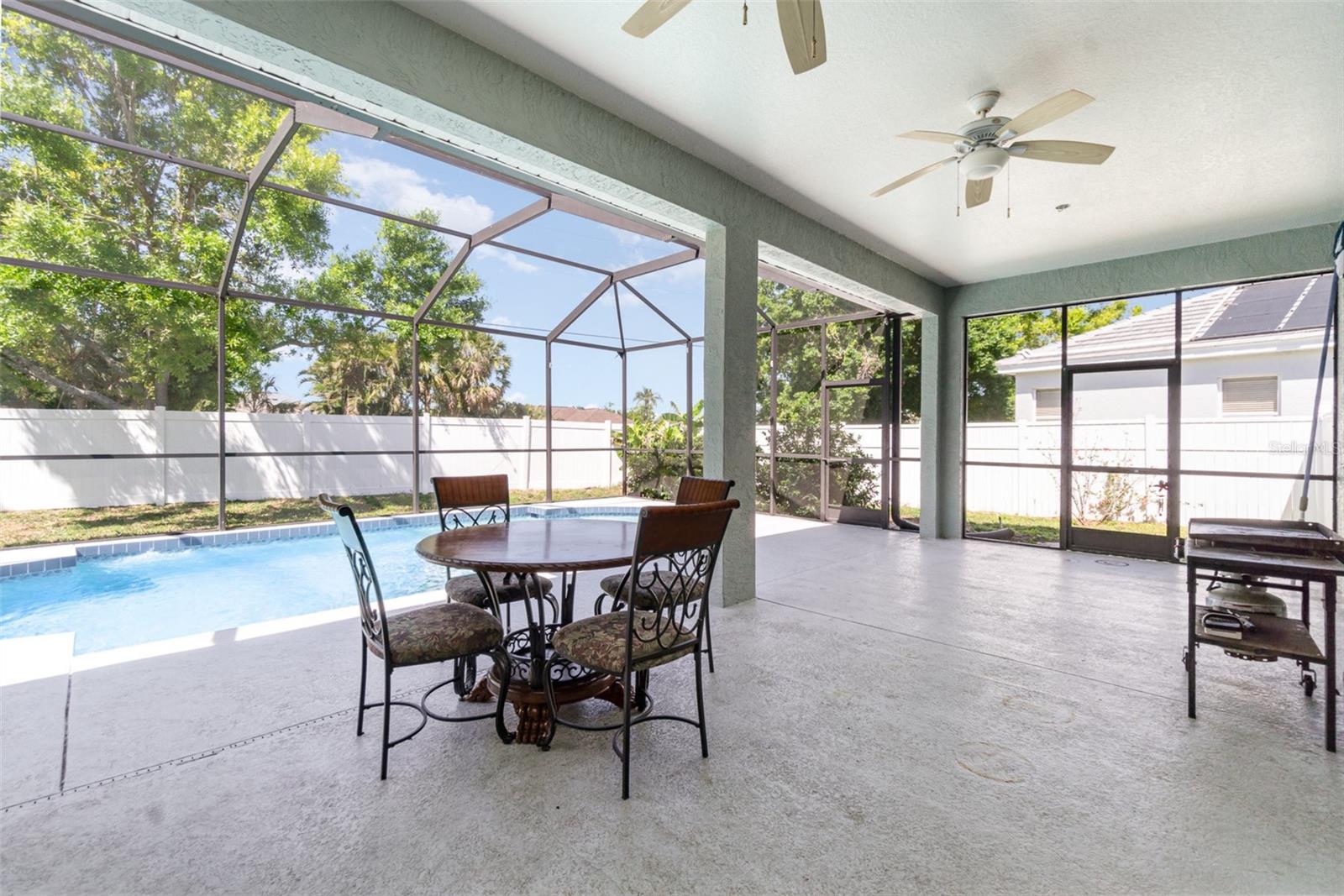 NEW ROOF NEW A/C September 2025, New carpet in bedrooms, Resurfaced pool, an updated water heater, remodeled primary suite - this move-in ready gem is waiting for you and your furniture! This beautifully designed 3-bedroom, 2-bathroom pool home located in the sumptuous, gated Palmer Glen community blends indoor charm with outdoor enjoyment, and the sellers just sweetened the deal with a generous $2,000 CREDIT towards a new paint job. Step inside and you’ll be welcomed by soaring ceilings and abundant natural light streaming through oversized windows and sliding glass doors, creating a bright, open atmosphere throughout. The spacious living room flows into a generously sized family room, perfect for a reading nook or additional seating area — an ideal setup for both entertaining and everyday living, all while offering serene views of the screened-in pool and expansive patio deck. The kitchen is a chef’s dream, featuring sleek cabinetry, a closet pantry, and upgraded stainless steel appliances — including DOUBLE OVENS — all enhanced by stylish light fixtures that give the home a warm and timeless feel. A large dining room area accompanies the kitchen, and nearby, the laundry room is equipped with a deluxe oversized washer and dryer, utility sink, and built-in cabinetry for added convenience. The primary suite is a true retreat, complete with a tray ceiling, two walk-in closets, and large sliding glass doors that open directly to the pool patio. The en-suite bathroom offers a spa-like experience with dual vanities, a huge custom-built walk-in shower, and abundant storage space added by the owners. On the opposite side of the home, two additional bedrooms are generously sized and share an updated bathroom, making the layout perfect for guests or family. Outside, enjoy your private oasis with a sparkling resurfaced pool, spacious patio for entertaining, and a cozy fire pit area perfect for unwinding under the stars. A two-car garage and extended driveway provide ample parking for multiple vehicles. The home is located in a no-flood zone and made it through both storms without any damage! You’ll have additional peace of mind with impact-grade windows, and the owners are even including the lawn care equipment for you! Positioned directly across from The Celery Fields, you’ll enjoy immediate access to over 400 acres of pet-friendly walking and biking trails, kayaking, fishing, and birdwatching. Nathan Benderson Park is just a short drive away, offering breathtaking scenery and outdoor recreation, while top-tier shopping, dining, and major highways are all within easy reach. This home truly offers it all — location, upgrades, and an incredibly motivated seller.