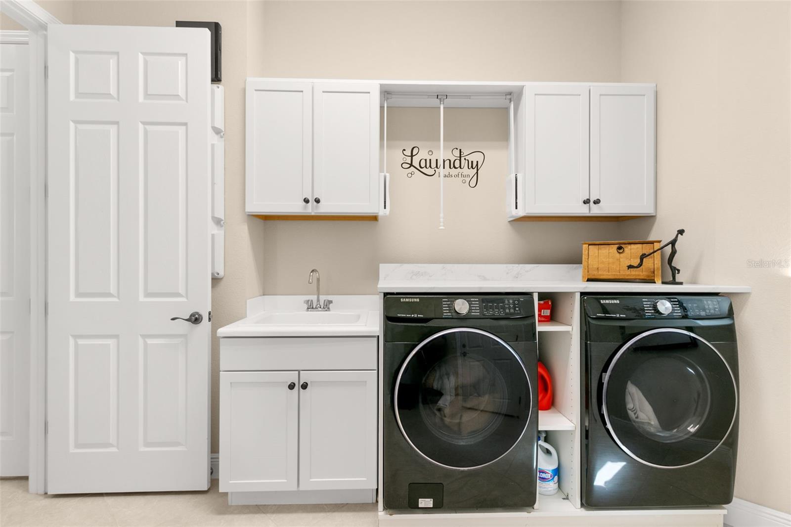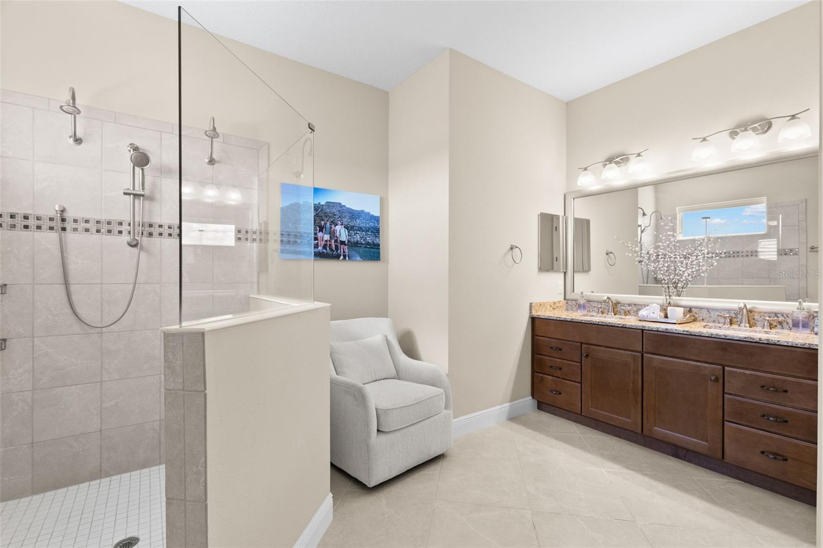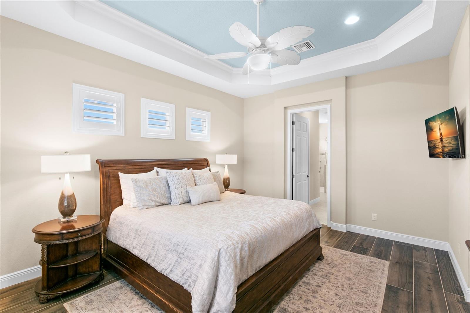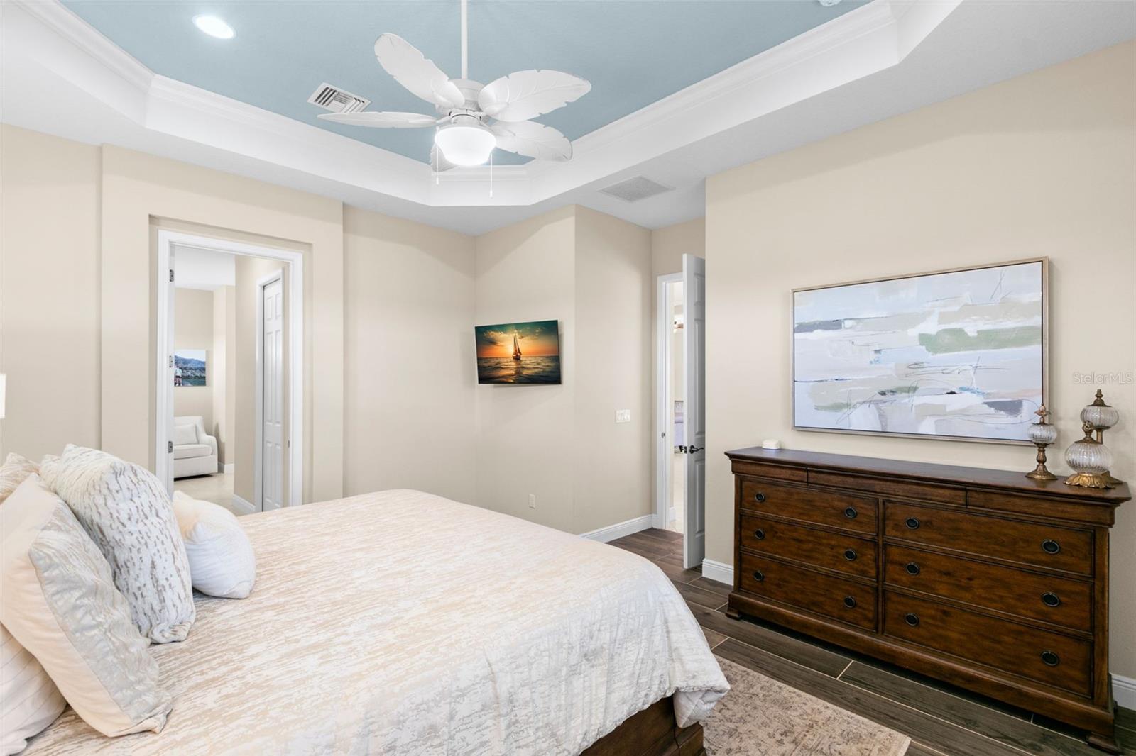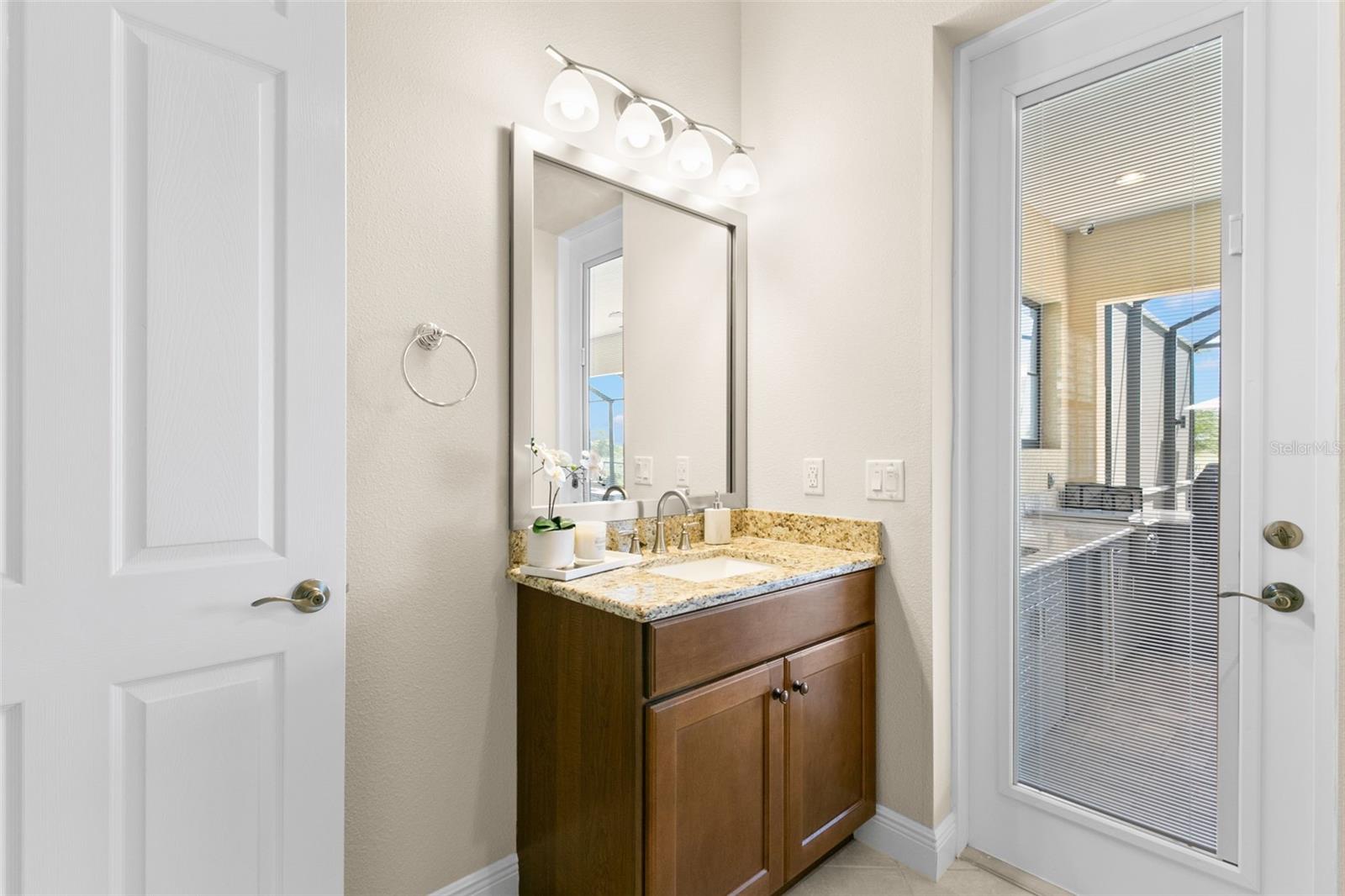 Set on an impressive 3.5-acre estate, this stunning home is the custom Caicos model nestled within the picturesque Hampton Lakes of Sarasota. As you step through the double glass doors, you’ll be greeted by a spacious open floor plan that includes a formal dining area and a versatile den. The den, adorned with double doors, a built-in Murphy bed, and sleek tile flooring, stands out as a unique and practical feature. The gourmet chef's kitchen is a dream come true, showcasing 42-inch wooden cabinets, a built-in wall oven, an induction cooktop, a stainless steel range hood, quartz countertops, a corner walk-in pantry, and a central island with bar-top seating. A cozy breakfast nook complements this culinary haven. The expansive great room offers a warm and inviting space perfect for hosting family and friends. Elegant details such as tray ceilings, plantation shutters, and crown molding elevate the home’s aesthetic charm. The property features two well-appointed bedroom suites, each with a private bath for added convenience. The oversized primary suite is a luxurious retreat, complete with walk-in closets and a spa-inspired master bathroom featuring double vanities and a generously sized walk-in shower. Step outside to the sprawling lanai, where you'll find a heated saltwater pool, a fire pit, and a state-of-the-art outdoor kitchen equipped with stone countertops, a refrigerator, a double burner, and a space for a large TV. Panoramic screens provide unobstructed views, creating a serene and tranquil outdoor oasis. Additional highlights of this remarkable property include an extended laundry room, an oversized four-car garage with air conditioning, a whole-house portable generator, outdoor lighting, and a buried 1,000-gallon propane tank. Conveniently located just 10 minutes from I-75, this exquisite residence combines the peace of open spaces with easy access to nearby shopping and dining, offering a lifestyle of unmatched comfort and elegance. Be sure to check out the Mattersport 3D tour.