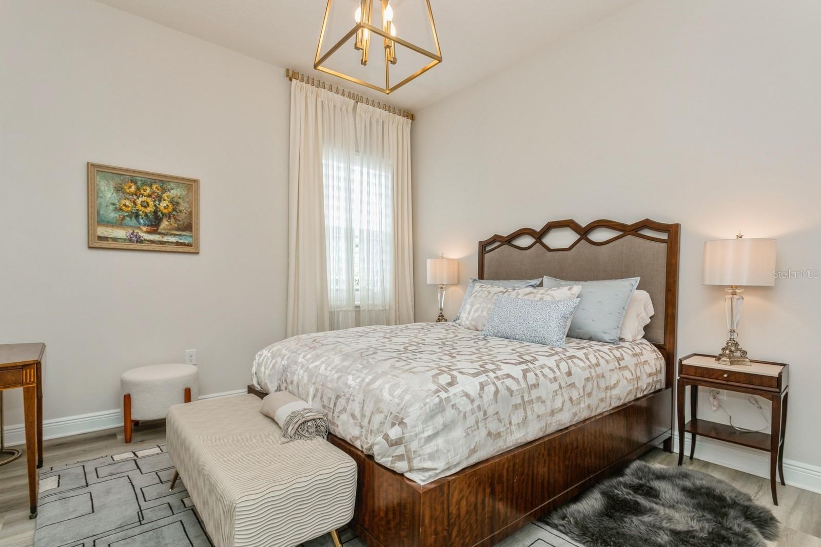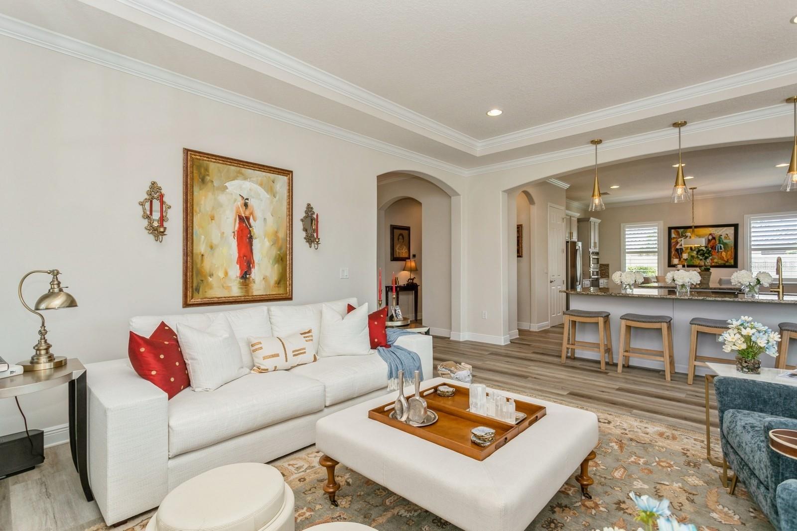 Luxuriously appointed 5 bedroom/ 4.5 bathroom home with many updates. Situated on 1+ acres in the unique gated community of Vilano, known for its spacious landscaped lots. Landscaping had a complete makeover in 2022 adding privacy and beautification to the property. It includes evening light enhancement, low-maintenance perennial garden with native and flowering plants and trees. This home boasts tray ceilings and new hurricane rated double glass front doors which provide elegance and light into the entrance of the home. There is a large gourmet kitchen with sizable island, new appliances and updated cabinetry, new floors in the entire home, new window shutters, solar shades and heated-saltwater pool. Lighting (all dimmable) and plumbing fixtures have been replaced throughout the home as well. High ceilings with crown molding complement the appearance of the home showcasing timeless stature. The first floor includes an in-suite bedroom with full bath. You will also find a butler pantry, study, dining room, laundry room and powder room on the first floor. Spacious second-floor master bedroom has double doors leading to a large master suite with sitting area, new his and hers walk-in closets featuring floor-to-ceiling cabinets, spinning shoe tower with full-length mirror and a pull-down rack. Master suite is also appointed with linen closet, his/hers vanities, a soaking tub, and a large shower. There are three additional bedrooms upstairs of which two have in-suite full bathrooms. The second floor includes a large multipurpose loft with an abundance of windows. The three car garage is deeper than most which provides for extra storage . This home is a two minute drive away from the award winning Laurel Oaks Country Club with amenities including two 18 hole golf courses, 12 Har-Tru tennis courts, six pickleball courts, a remodeled clubhouse and pool.