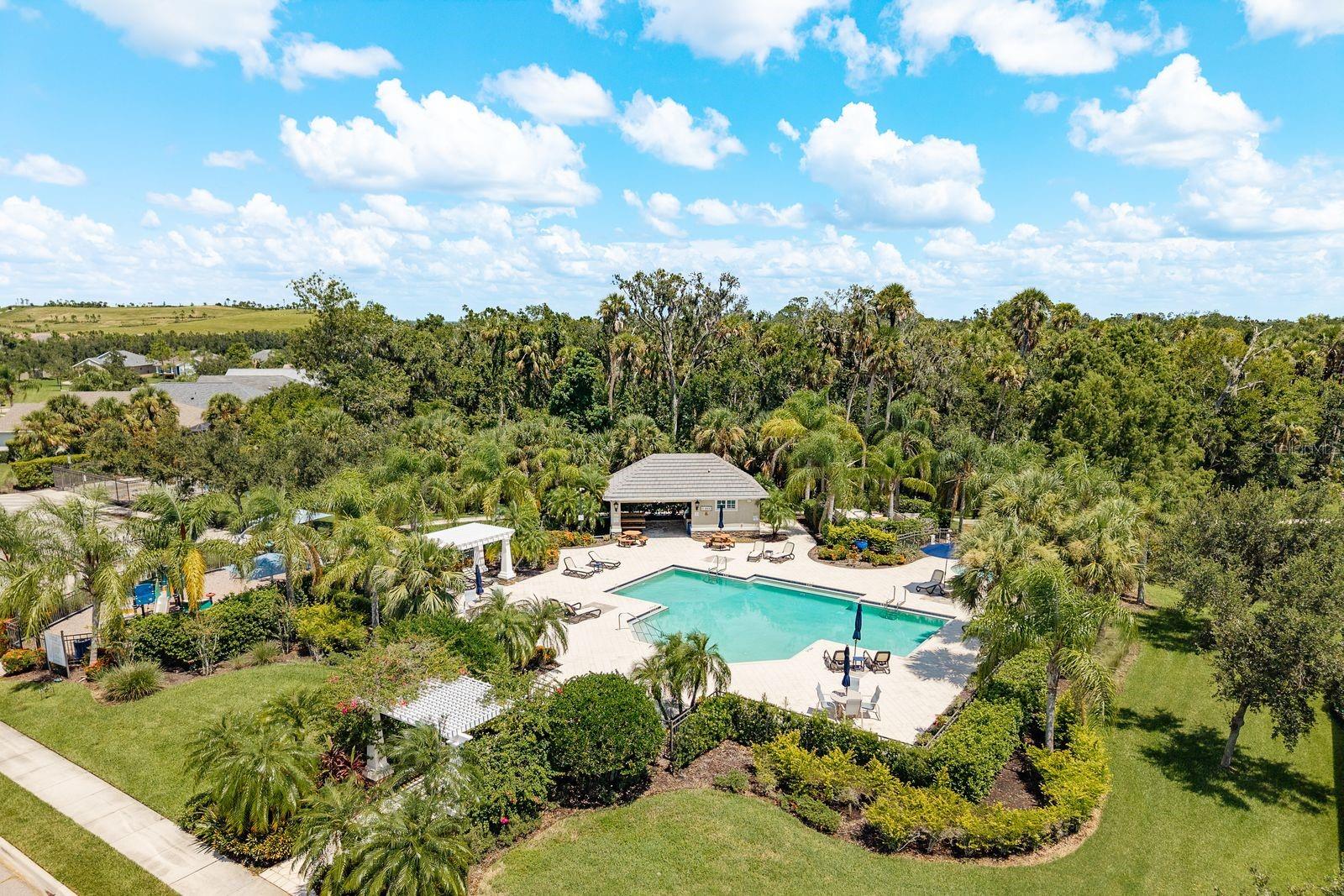 Welcome to 6405 Autumn Woods Way, a beautifully maintained 2-bedroom, 2-bathroom corner-lot home in the highly desirable GATED COMMUNITY of Woodbrook. Built in 2013, this single-story residence offers 1,080 sqft. of thoughtfully designed living space, combining modern finishes with a warm, inviting atmosphere. From the moment you arrive, the charming covered front porch, manicured landscaping, and corner-lot setting create fantastic curb appeal. Step inside to an OPEN-CONCEPT FLOOR PLAN with soaring ceilings, tray accents, and large windows that fill the home with natural light. The spacious living and dining areas flow seamlessly into the kitchen, which features GRANITE COUNTERTOPS, STAINLESS STEEL APPLIANCES, a breakfast bar, SOLID WOOD CABINETRY, and ample storage—ideal for both everyday living and entertaining. The primary suite offers a peaceful retreat with a WALK-IN CLOSET and a private en-suite bath featuring DUAL VANITIES, solid-surface counters, and a spacious walk-in shower. The second bedroom is generously sized and perfect for guests or a home office, with an adjacent full bathroom. Additional highlights include an INTERIOR LAUNDRY AREA with WASHER AND DRYER INCLUDED, ENERGY EFFICIENT WINDOWS, and ceiling fans throughout. Outside, enjoy your morning coffee on the covered front porch or relax in the private rear courtyard. A rear-entry 2-car garage with a paved driveway adds convenience and maintains the home’s attractive streetscape. Residents of Woodbrook enjoy a RESORT-STYLE COMMUNITY POOL, shaded cabanas, a park, playground, and scenic sidewalks—all maintained with low HOA fees and no CDD. This pet-friendly neighborhood is perfectly located just minutes from shopping, dining, I-75, University Town Center, and the beautiful Gulf Coast beaches. This move-in ready home is the perfect combination of comfort, style, and location—ready for you to make it your own!