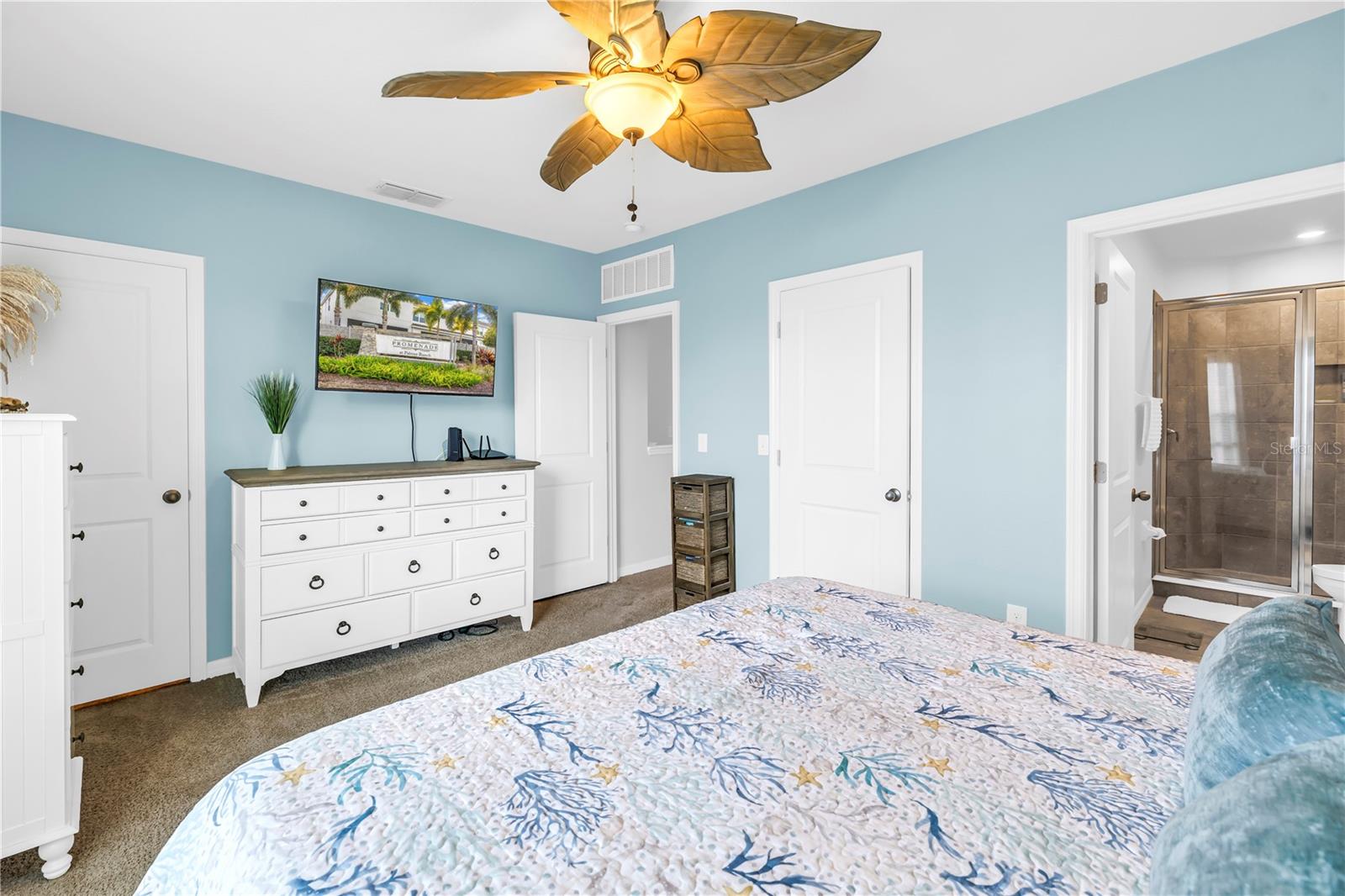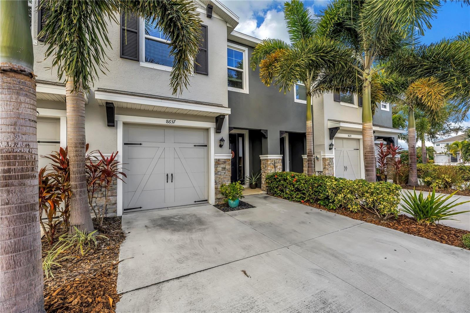 Built in 2020, this beautifully designed two-story, all–concrete-block townhome in Promenade on Palmer Ranch offers modern living in an unbeatable Sarasota location. The open-concept first floor features a gourmet kitchen with granite countertops, stainless steel appliances, white cabinetry, upgraded pendant lighting, custom mirror wall accent, a walk-in pantry, half-bath and a spacious breakfast island overlooking the large family room. Sliding doors lead to a covered, oversized screened lanai perfect for outdoor relaxation. Upstairs, the primary suite includes two walk-in closets, along with two additional bedrooms, two full bathrooms, and a convenient laundry room. A one-car garage with extra storage completes the home. Promenade on Palmer Ranch provides excellent amenities including a sparkling pool, open-air cabana, outdoor kitchen, community sidewalks, and scenic preserve and pond views. Low HOA fees with water & sewer included, no CDD fees, and direct access to the Legacy Trail make this a highly desirable community. Minutes from Siesta Beach, Downtown Sarasota, Lido Key, and Longboat Key — close to restaurants, shopping, festivals, parks, and recreation. Move-in ready and perfectly located!