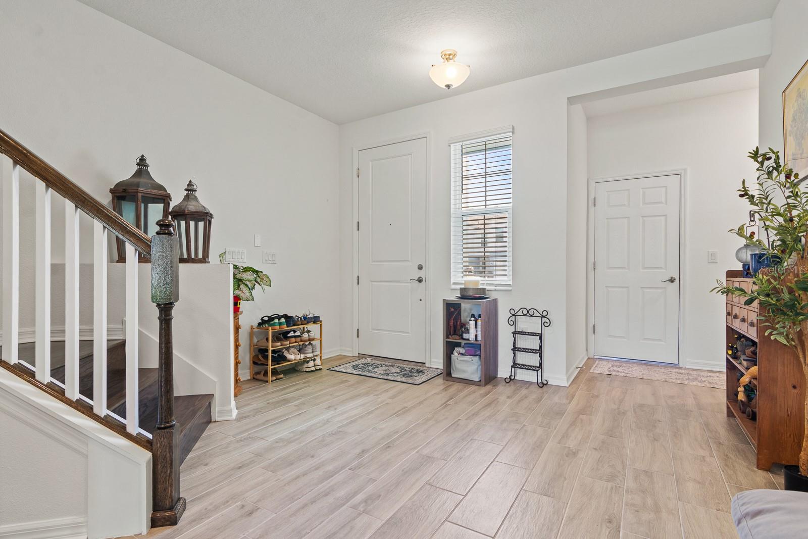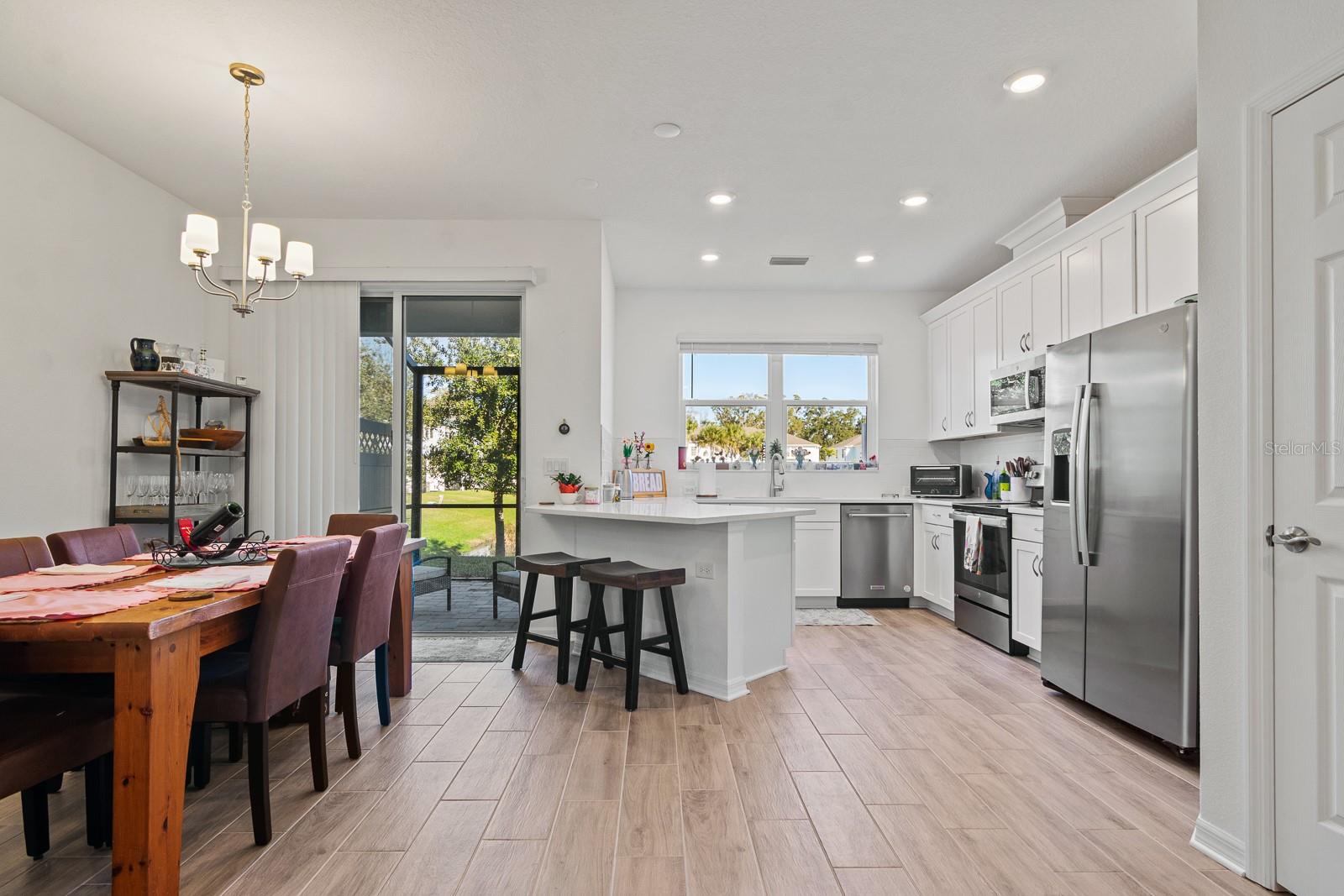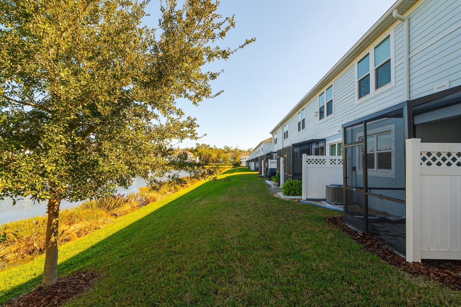 STUNNING TOWNHOME WITH EXPANSIVE POND VIEWS! This impeccably maintained 3-bedroom, 2.5-bath townhome offers approximately 1,920 square feet of thoughtfully designed living space, complete with a one-car garage and serene water views that create a truly peaceful setting. Upon entering, you are welcomed into a spacious and open great room with plenty of room for both living and dining—perfect for everyday comfort and entertaining alike. The stylish kitchen features quartz countertops, stainless steel appliances, abundant cabinetry, and bar seating, making it both functional and inviting. A convenient pantry provides additional storage, while the open layout allows natural light to flow throughout the space. The entire first floor is finished with elegant wood-look ceramic tile, adding warmth and durability. Upstairs, upgraded wood flooring continues through the stairway and hallway, leading to a well-designed split bedroom layout. The spacious owner’s suite overlooks the tranquil pond and features a large walk-in closet and an oversized en-suite bathroom with dual sinks. Two additional bedrooms are nicely sized and finished with plush carpeting, offering flexibility for family, guests, or a home office. The upstairs laundry room adds everyday convenience and ease. Step out onto the lanai and relax while enjoying peaceful pond views and abundant wildlife, creating a private and serene outdoor retreat. This home is move-in ready, very well maintained, and offers modern finishes throughout. Ideally located near shopping, dining, and everyday conveniences, this townhome combines low-maintenance living with comfort, style, and beautiful water views—an exceptional opportunity you won’t want to miss.