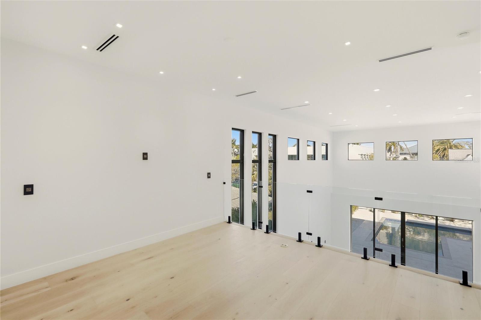 2089 Arlington Street, where architecture meets light, space, and coastal elegance, this newly constructed contemporary residence offers 4,231 square feet of living space and 5,284 total square feet, thoughtfully designed with architectural precision and warm minimalism. Completed in 2026, this striking two-story home sits on a rare double corner lot and features 5 bedrooms and 6 bathrooms, delivering both scale and sophistication. The open-concept interior is defined by dramatic 22-foot ceilings, expansive custom windows and doors, and an abundance of natural light throughout. The main level is anchored by a statement chef’s kitchen imported from Italy, showcasing custom cabinetry, luxury built-in appliances, a Sub-Zero refrigerator, premium hardware, and top-quality London Fog granite countertops. A concealed secondary kitchen provides additional functionality and discretion, ideal for entertaining and catered events. The primary suite is conveniently located on the ground floor, offering a private retreat with serene views and a spa-inspired bath. Additional bedrooms are generously sized, each with access to a full bathroom. A custom glass wine room adds a refined architectural focal point, while a loft-style family/media lounge on the second level overlooks the main living area, enhancing the home’s open, airy feel. Designed for seamless indoor–outdoor living, oversized sliding doors open to a private resort-style setting with a custom pool and spa, covered terrace, and enhanced landscaping. Architectural exterior lighting highlights the home’s clean lines and modern façade after sunset. Quality and performance are paramount: both levels are constructed of solid concrete block, and three independent HVAC systems serve the ground floor, primary suite, and second floor for optimal comfort and efficiency. Additional features include a private elevator, and all custom-made windows, doors, and cabinetry throughout—evidence of meticulous attention to detail in every finish. Ideally located for effortless travel and coastal lifestyle enjoyment, this home is approximately 12–15 minutes from Sarasota–Bradenton International Airport, about 1 hour 10 minutes from Tampa International Airport, 10–15 minutes to Lido Key, and about 15 minutes to Siesta Key, world-renowned for powder-white sand and Gulf sunsets. Situated outside of a flood zone, this exceptional residence presents a rare opportunity to own a custom-built contemporary home where design, craftsmanship, location, and lifestyle converge.
