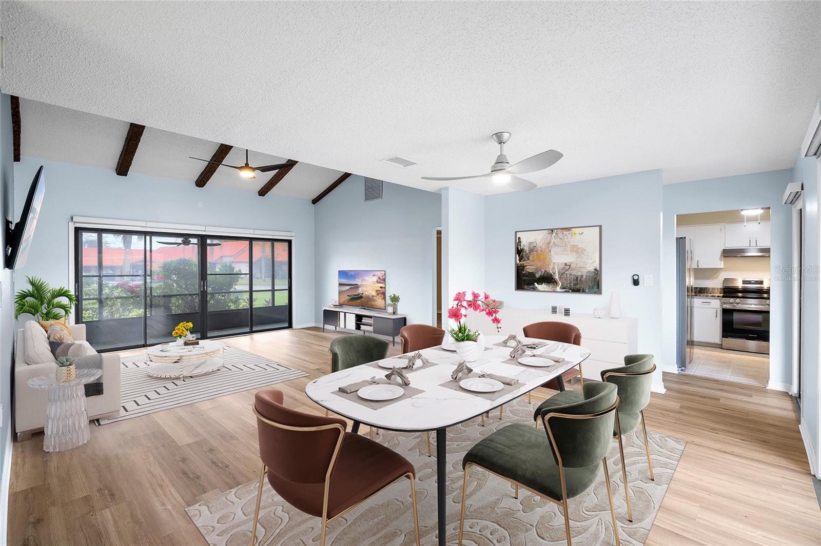 One or more photo(s) has been virtually staged. Welcome Home to Sunrise where you can enjoy a carefree lifestyle away from the hustle and bustle yet close enough to the interstate to make traveling easily accessible, whether traveling north toward Tampa and St Petersburg or south toward Naples and Fort Myers. Sunrise is a quaint and quiet community where you can enjoy the nearby pool with annual access, converse with fellow pickleball and tennis players, shoot some hoops, or take a quiet and peaceful stroll on the walking paths while enjoying nature. If the sand and salt water are calling, head out to the most beautiful beach; Siesta Key which is just minutes away. Relax in Sunrise in this magnificent condominium with many recent updates, totaling nearly $35,000, in this must-see condominium to appreciate it. Some of these renovations include an updated and beautiful Primary Bathroom, an Air Conditioning system, 2024 and Water Heater, 2025. Additionally, a fresh coat of paint adorns the walls and there are also nice new ceiling fans, and another must mention is the waterproof luxury vinyl and tile floors throughout making cleaning day much easier - no carpet in the home! The new window treatments provide even more privacy in this quiet neighborhood. The soaring ceilings make this condominium feel even more open and grand. This is a true split bedroom floorplan with both bedrooms featuring en suite bathroom providing privacy for all. The primary bathroom has a nice walk-in shower with decorative tile and raindrop tinted glass shower doors. En suite bath in the second bedroom has a tub/shower combination should you like to soak the day away. Watch the birds and other wildlife from the extensive cover screened-in rear patio at the back of the home. This maintenance free condominium has lawn care including the bushes providing more time to enjoy all the fun things that life brings. This condominium is ground level and has no units above it.