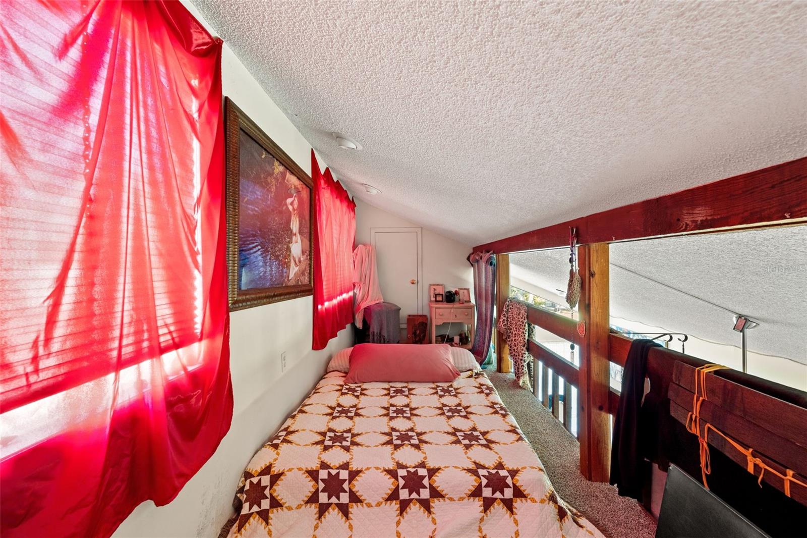 Location, charm, and opportunity come together in this truly one-of-a-kind condominium in Cordova Gardens. Tucked among lush greenery just minutes from downtown Sarasota and the world-famous beaches of Siesta Key, this cozy “treehouse” residence offers the perfect blend of privacy, character, and potential—ideal as a personal retreat or an income-producing property. Set on the second level, this 2-bedroom condo welcomes you with warm wood accents, including beautiful cedar stairs that add to its inviting, natural feel. The standout feature is the unique upstairs loft—one of the few in the community—complete with two large storage closets, making it perfect for a home office, creative space, or additional lounge area. Natural light pours in from every angle, with sliding glass doors and windows framing tranquil treetop views that give the home its signature treehouse ambiance. Multiple screened balconies off the bedrooms, living room, and kitchen create a seamless indoor-outdoor flow, allowing you to enjoy gentle breezes and peaceful surroundings throughout the day. The kitchen features newer stainless steel appliances, offering a modern head start for your own design vision. With a little creativity, this space can easily be transformed into a stylish, photo-worthy retreat with a downtown loft vibe. Cordova Gardens is a small, quiet, and friendly community ideally located just about a mile from downtown Sarasota and the North Bridge to Siesta Key. Enjoy convenient access to shopping, dining, arts, and entertainment—while still coming home to a peaceful, tucked-away setting.