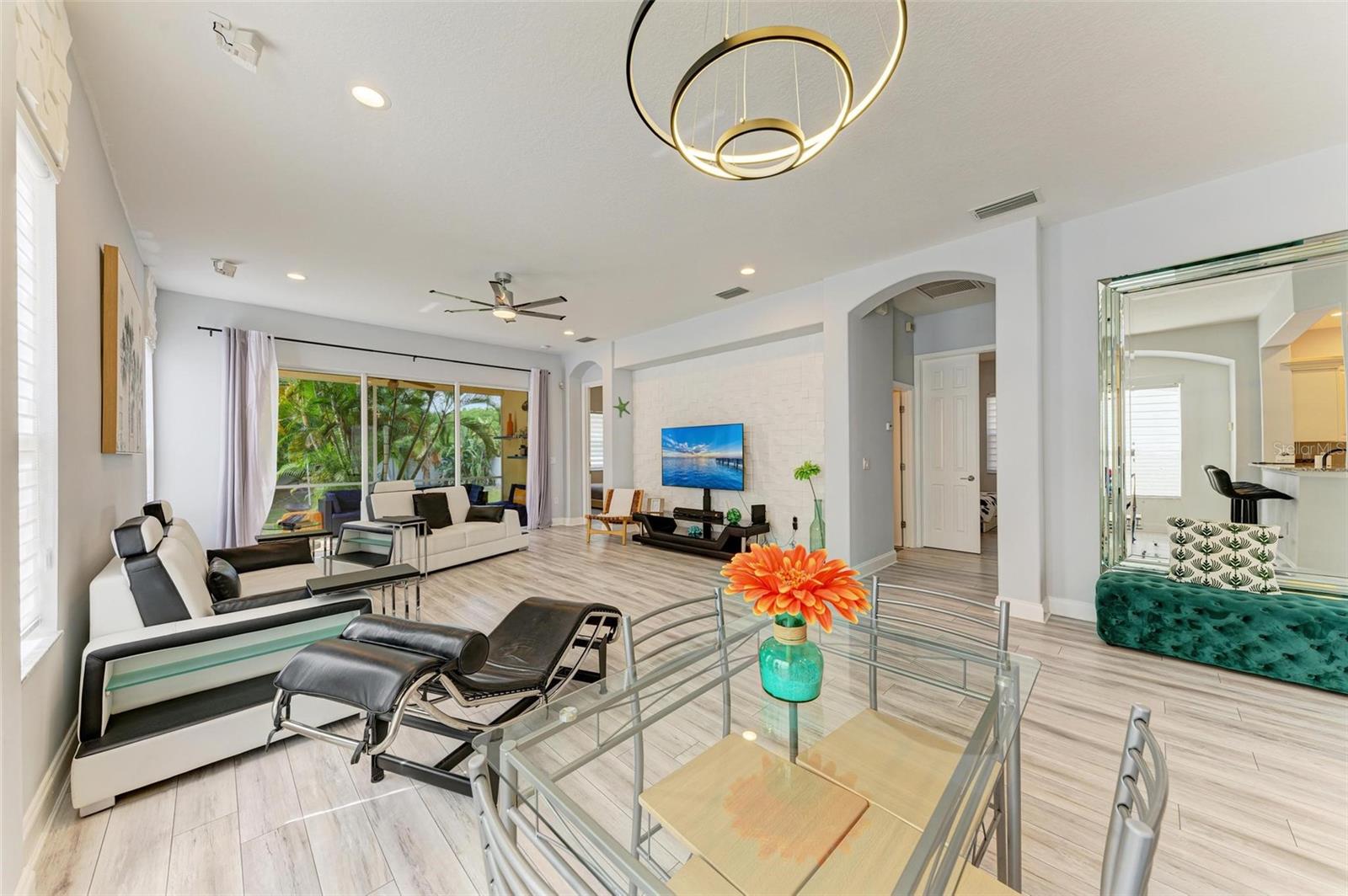 WHY WAIT TO BUILD?! This Immaculate Custom Built Absolutely Stunning, Coastal Inspired, Luxury, Modern Decor Turnkey Furniture 3 Bed +2 Bath / 2 Car Garage WITH HUGE DESIGNER RESORT STYLE HEATED SALT WATER POOL, SPA, KIDDIE POOL with Paver Decking. PLACED in ENCLAVE AT ASHTON with NO HOA!!! and now AVAILABLE FOR * IMMEDIATE OCCUPANCY. * Located in a PREMIUM CUL-DE-SAC LOCATION ON 1/3 OF AN ACRE OVERSIZED PRIVATE FENCED IN BACKYARD the attractive PAVER DRIVEWAY AND FRONT WALKWAY is graced by lush landscaping which provides an undeniably inviting curb appeal. LOCATION LOCATION LOCATION!!! ONLY 7 MILES TO THE NUMBER ONE FLORIDA BEACH-SIESTA KEY BEACH and ONLY 12 MILES TO FAMOUS LIDO BEACH! Step inside this home and discover a bright entryway that seamlessly transitions into an OPEN CONCEPT LIVING AREA, adorned with a neutral color palette that amplifies the natural light. RICH PREMIUM LUXURY VINYL FLOORING THROUGHOUT ADDS COASTAL CHARM AND OFFERS EASY MAINTENANCE. This home exudes quality and you will recognize it immediately. The spacious great room features SOARING HIGH CEILINGS! SHOWS LIKE A MODEL! REMODELED WITH PLANS FOR IT TO BE HIS FOREVER HOME. ONLY THE HIGHEST QUALITY MATERIALS USED! FURNISHED IN HIGH END ITALIAN COTEMPORARY FURNITURES. The heart of this home is undoubtedly the gourmet kitchen, new Coastal Cream cabinets with crown, New Granite Countertops, Stainless Steel Appliances, island, double pantry, TASTEFUL tile backsplash, opened pass through to dining room. The kitchen layout is perfect for entertaining, offering both visual appeal and functionality. The bedroom showcases meticulous design with a soft, inviting color scheme and HIS AND HER LARGE WALK-IN CLOSETS. The ensuite bathroom exudes spa-like qualities with its dual vanities, designer fixtures, and a large walk-in shower AND LARGE BATHTUB NO NEED TO CHOOSE ONE! And, BAI ANTI FOG MIRRORS IN ALL BATHROOMS! Additional features include a LAUNDRY ROOM WITH EXTRA STORAGE and state-of-the-art appliances, UPGRADED LIGHTING SYSTEM WITH CEILING FANS IN EVERY ROOM FOR YOUR ENJOYMENT! BUILT-IN BOSE SPEAKER SURROUND SYSTEM and TOO WAY TOO MANY OTHER UPGRADES TO LIST. Looking for great schools? A RATED ASSIGNED SCHOOLS ARE *** ASHTON ELEMENTARY / SARASOTA MIDDLE / RIVERVIEW HIGH ***. LOCATION LOCATION LOCATION.ONLY 7 MILES TO THE NUMBER ONE FLORIDA BEACH-SIESTA KEY BEACH and ONLY 12 MILES TO FAMOUS LIDO BEACH! Why live out east when you can HAVE THE HOME YOU DESIRE AND BE NEAR TO EVERYTHING YOU DESIRE?! Close to schools, Siesta Key Village and world class Gulf Beaches, Downtown Sarasota, Gulf Gate and UTC Entertainment and shopping districts. THIS HOME IS AN ABSOLUTE MUST SEE!
