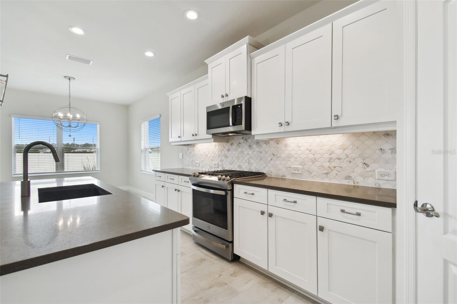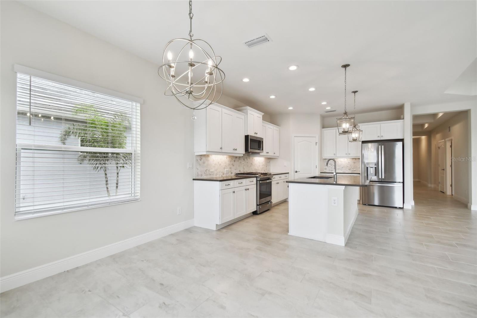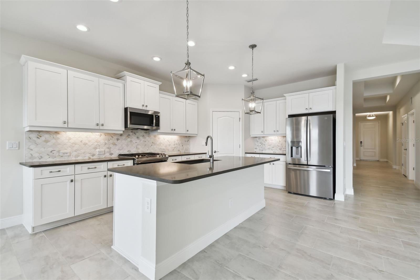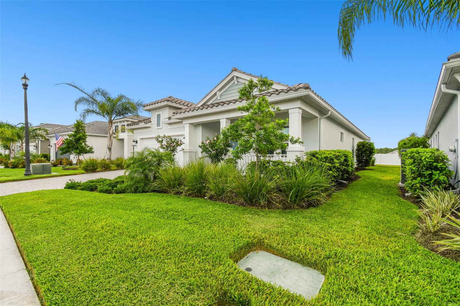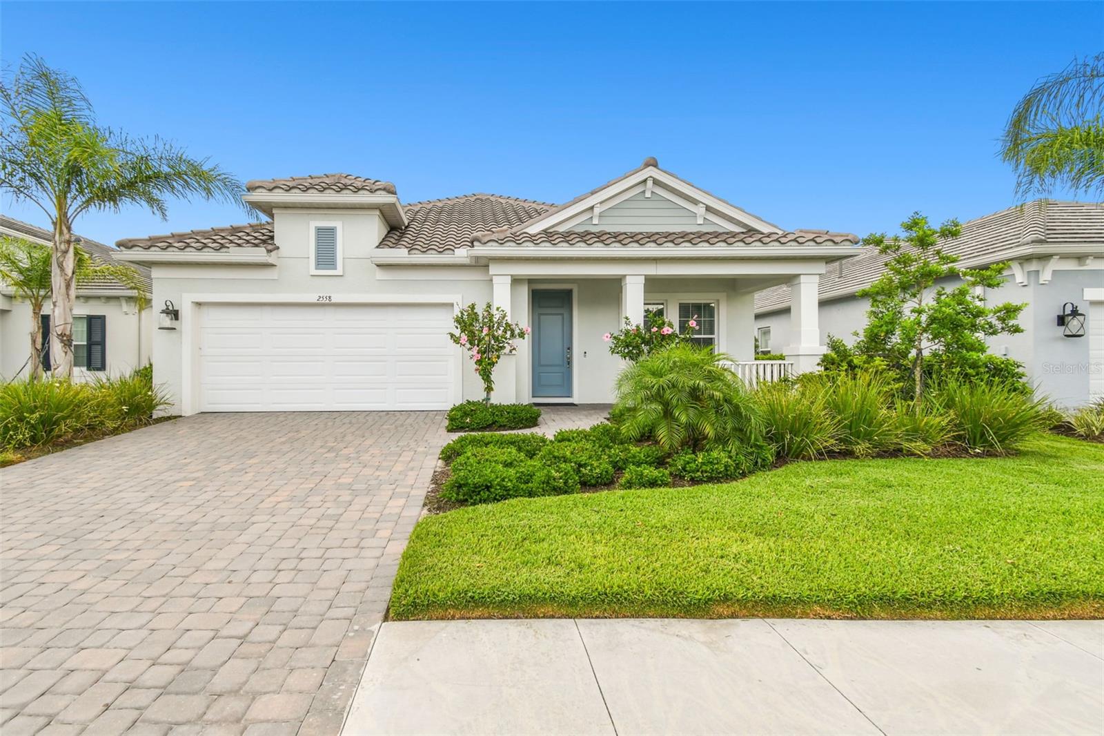 Why wait for New Construction when you can step into Luxury with this 3 Bed, 3 Bath + Den Custom Built Home built in October of 2022 in the Gated Community of Windward at Lakewood Ranch. You'll be greeted by a beautiful pavered driveway with a cozy front porch space. Enter your new home and feel the elegance of Neutral Tile Flooring - making this home the ultimate entertainment or relaxing retreat! Great Room with Tray Ceiling and Pocket Slider to your Pavered Patio with Gas hook-up for BBQ Grill. Open Chef's Kitchen features plenty of Upgrades such as Shaker Style Cabinets, Quartz Counters, Decorative Tile Backsplash, Large Island with Breakfast Bar seating, Under cabinet lighting, 5 Burner Gas stove, Stainless Steel Appliances, French Style Refrigerator, Step-in Pantry & Large Dining area off Kitchen. Master Bedroom features Two Walk-in Closets and Tray Ceiling. En-Suite Bath with Dual sinks, and Large Step-in Shower. 2 additional Bedrooms with plenty of Closet space (one with an En-Suite Bath with Step-in Shower & one with adjacent Full Bath). Den with Rich-Wood like Flooring at the front of the Home with Double Door Entry. Want to add a pool? NO PROBLEM! The home is pre-wired for a Pool and Heater. You can breathe easy and enjoy the active lifestyle of Windward close to a 10,000 sq ft clubhouse with TWO Resort Style Pools, Full Sized Gym, 8 Pickleball courts, Playground, Tennis courts, Walking Fitness Trail, and a Dog Park! All of this while being minutes away from all major highways, shopping centers and airport. Features included Hurricane Windows, Gas Water Heater, Washer and Gas Dryer. HOA fee includes Windward Amenities, Gates, ground maintenance, and trash. Make your appointment today.