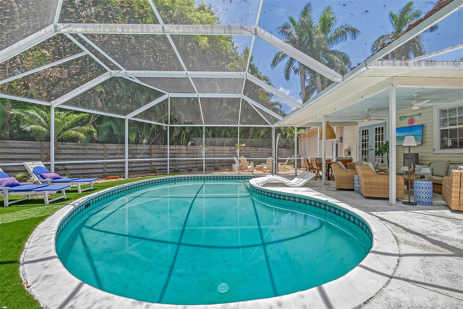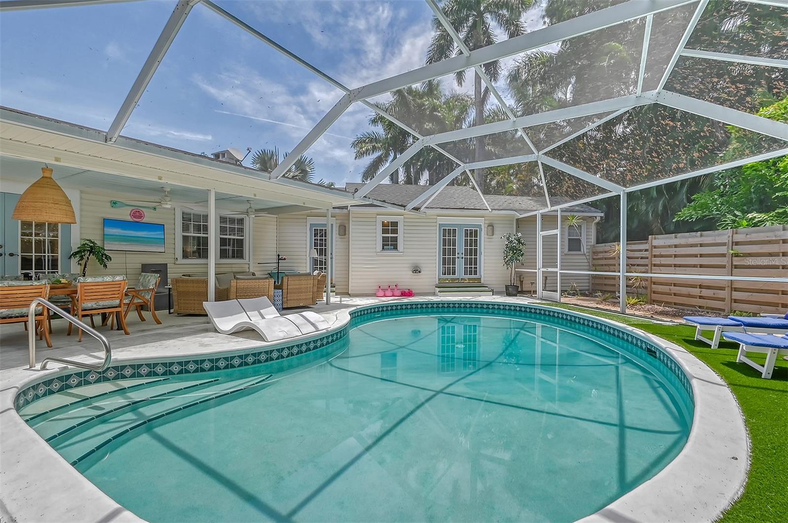 INCREDIBLE HOME WEST OF THE TRAIL! Just moments away from downtown Sarasota, Southside Village, and the beautiful Siesta Key, this fully updated 3-bedroom, 2-bathroom home with a den is a true gem. Situated on an oversized corner lot and priced well below the neighboring multimillion-dollar homes of Avondale, this home is a truely special oprotunity. Step inside to discover a newly renovated kitchen, complemented by refinished heart pine floors, contemporary interior lighting, and updated bathrooms, creating a fresh and inviting ambiance. The light-filled den provides the perfect work-from-home space, easily transforming into an extra sleeping area for guests when needed. The living room, featuring a cozy wood-burning fireplace and a chic built-in bar, exudes warmth and sophistication. Enjoy year-round outdoor dining on the covered, screened lanai and invite friends and family to unwind by the 8-foot-deep saltwater swimming pool. Privacy is paramount in the outdoor space, enhanced by extensive landscaping. Cooler evenings can be spent around the inviting fire pit, creating memories that will last a lifetime. The attached two-car garage offers ample storage, adding to the home's convenience. Recent updates include a new washer and dryer, built-in bar, and ceiling fans, ensuring every detail has been considered. This delightful home is also very close to shopping, dining, the new Sarasota Art Museum, and all the amenities downtown Sarasota has to offer. A unique opportunity awaits to own a home in one of the area's most desirable neighborhoods.