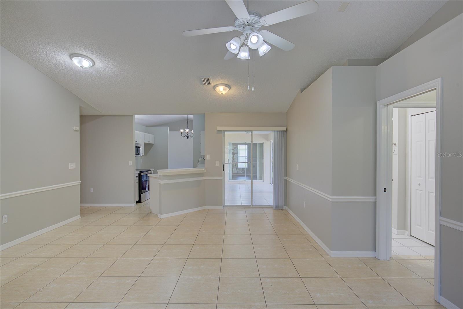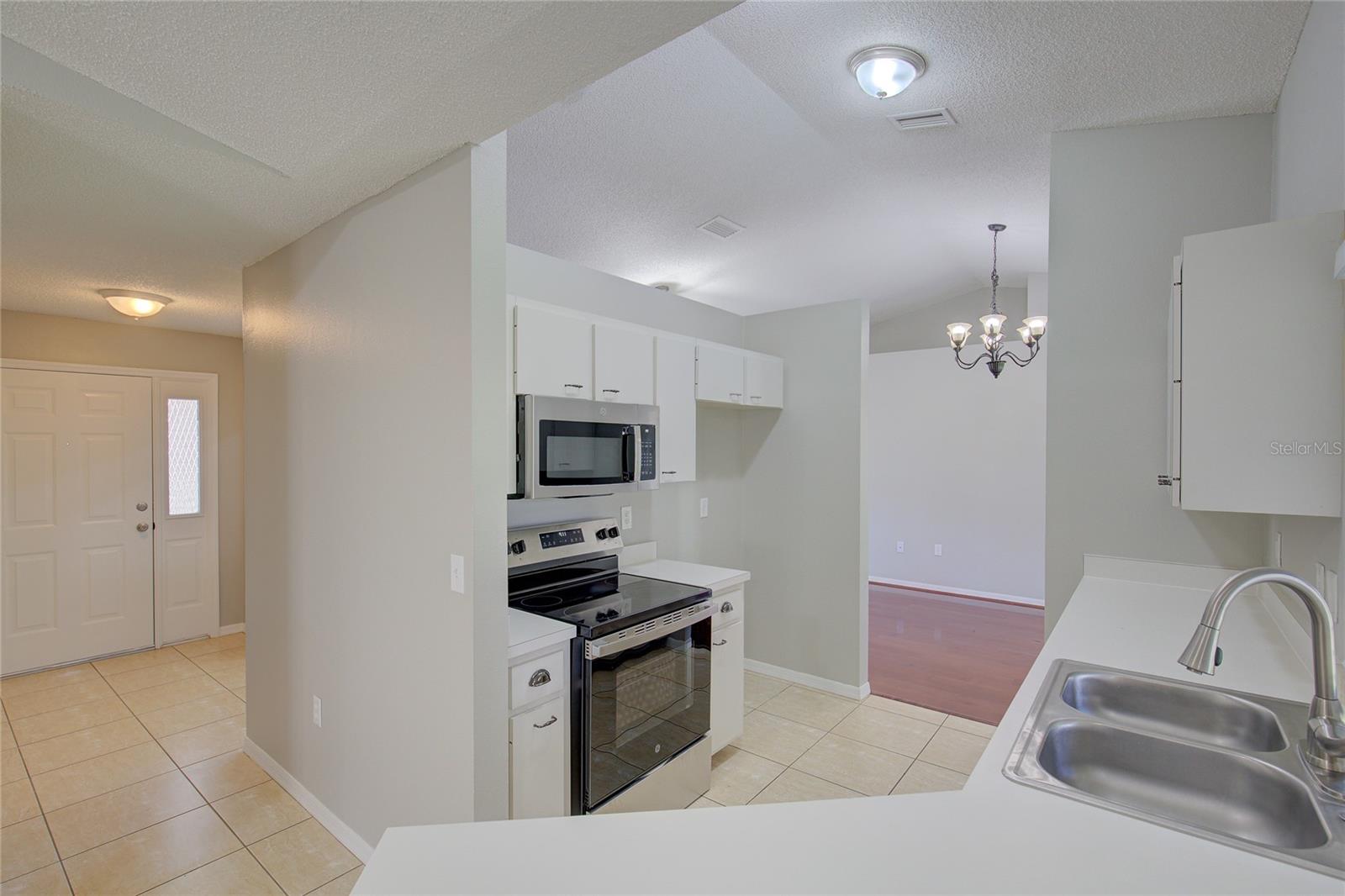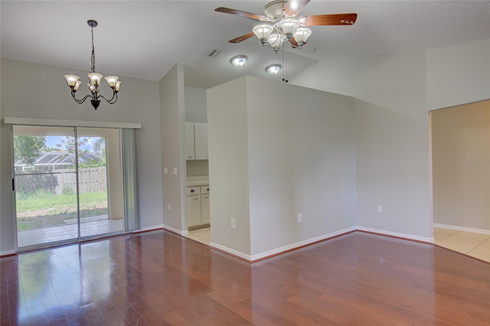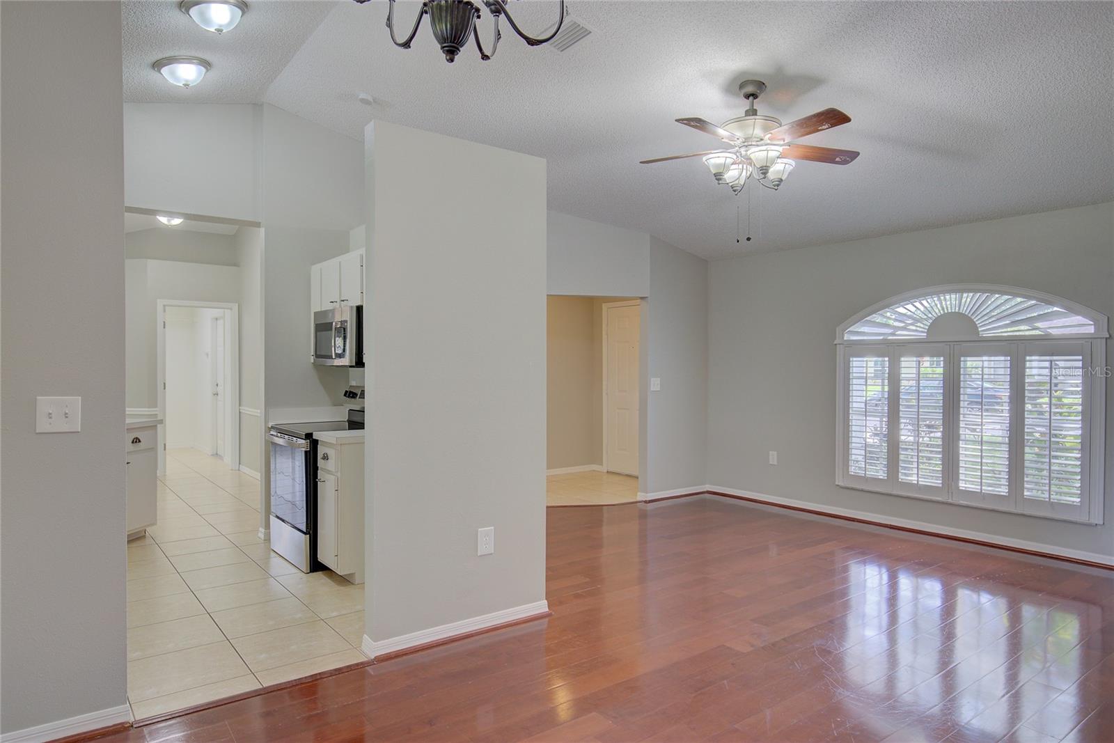 Welcome to your dream home! This beautifully updated residence boasts a modern kitchen featuring sleek stainless steel appliances and a convenient breakfast bar, perfect for casual dining and entertaining. The home is adorned with elegant tile floors in the kitchen and wood floors in all living areas, providing a warm and inviting atmosphere. The spacious living room is highlighted by vaulted ceilings and large glass sliding doors that flood the space with natural light, seamlessly connecting the indoors to the serene screened-in patio. This outdoor space is ideal for relaxing and enjoying the beautiful weather. The master suite is a true retreat, offering ample space, dual closets, and a luxurious bathroom with a separate tub and shower. The partially fenced backyard provides a safe and private area for outdoor activities. Located just minutes from I-75, top-rated schools, popular local attractions, and a variety of restaurants, this home offers both convenience and comfort. Don't miss the opportunity to make this stunning property your own!
