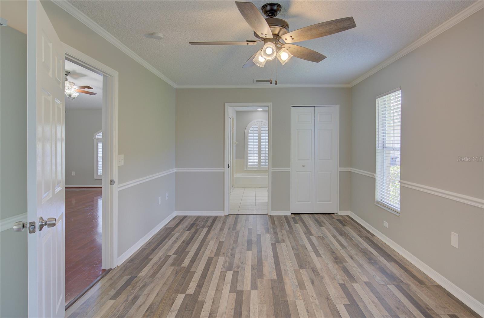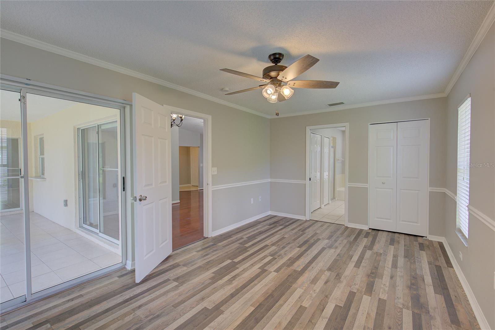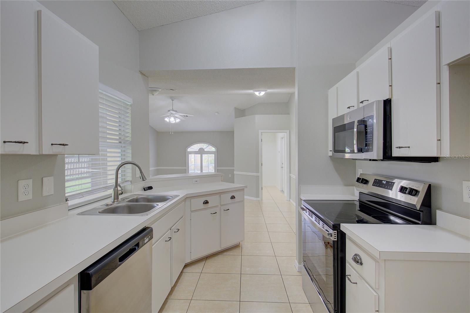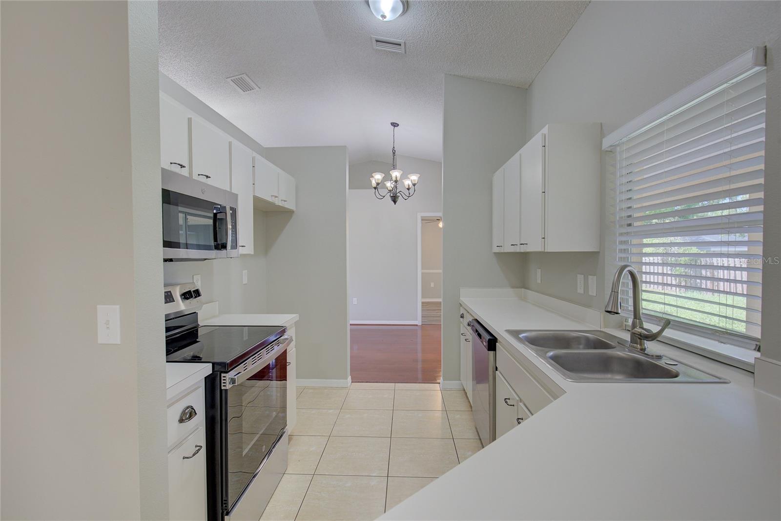 Welcome to your dream home! This beautifully updated residence boasts a modern kitchen featuring sleek stainless steel appliances and a convenient breakfast bar, perfect for casual dining and entertaining. The home is adorned with elegant tile floors in the kitchen and wood floors in all living areas, providing a warm and inviting atmosphere. The spacious living room is highlighted by vaulted ceilings and large glass sliding doors that flood the space with natural light, seamlessly connecting the indoors to the serene screened-in patio. This outdoor space is ideal for relaxing and enjoying the beautiful weather. The master suite is a true retreat, offering ample space, dual closets, and a luxurious bathroom with a separate tub and shower. The partially fenced backyard provides a safe and private area for outdoor activities. Located just minutes from I-75, top-rated schools, popular local attractions, and a variety of restaurants, this home offers both convenience and comfort. Don't miss the opportunity to make this stunning property your own!