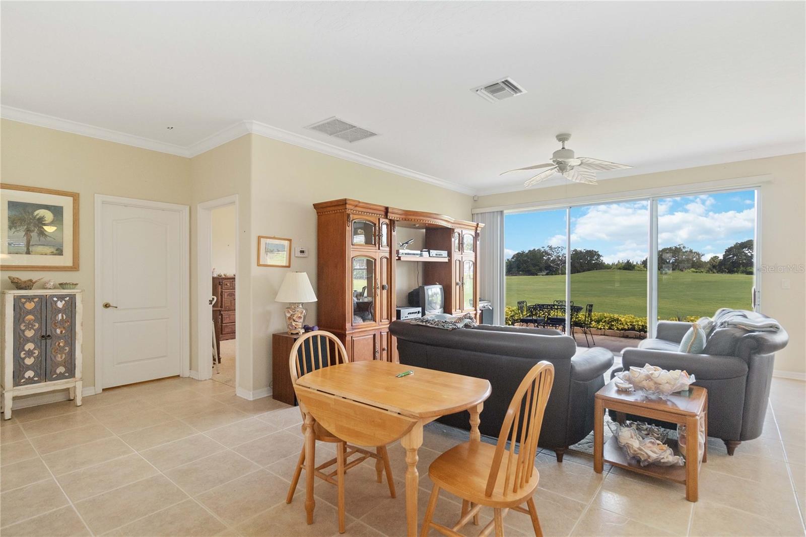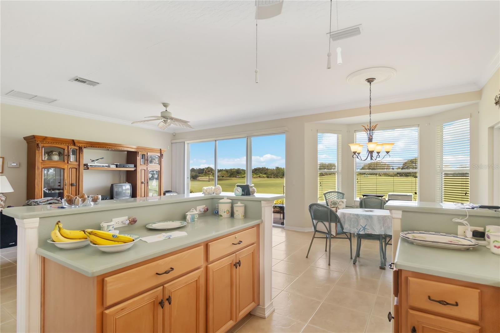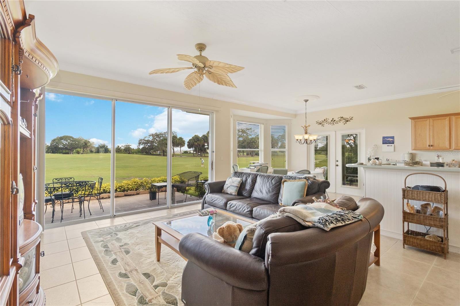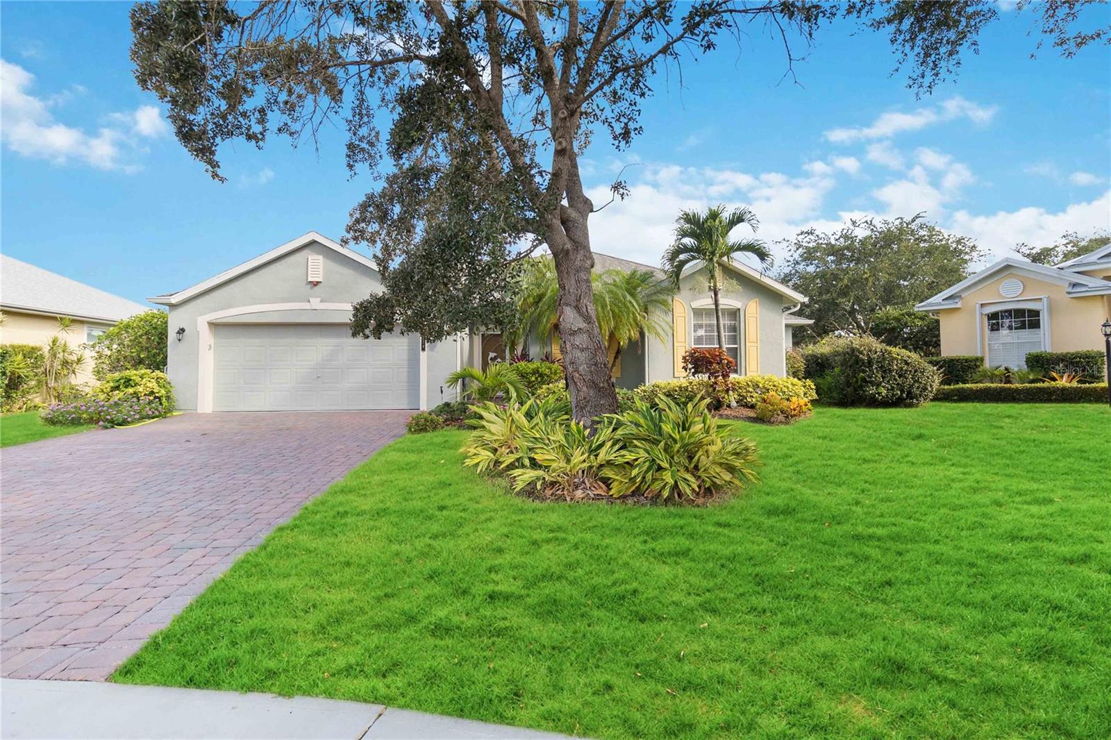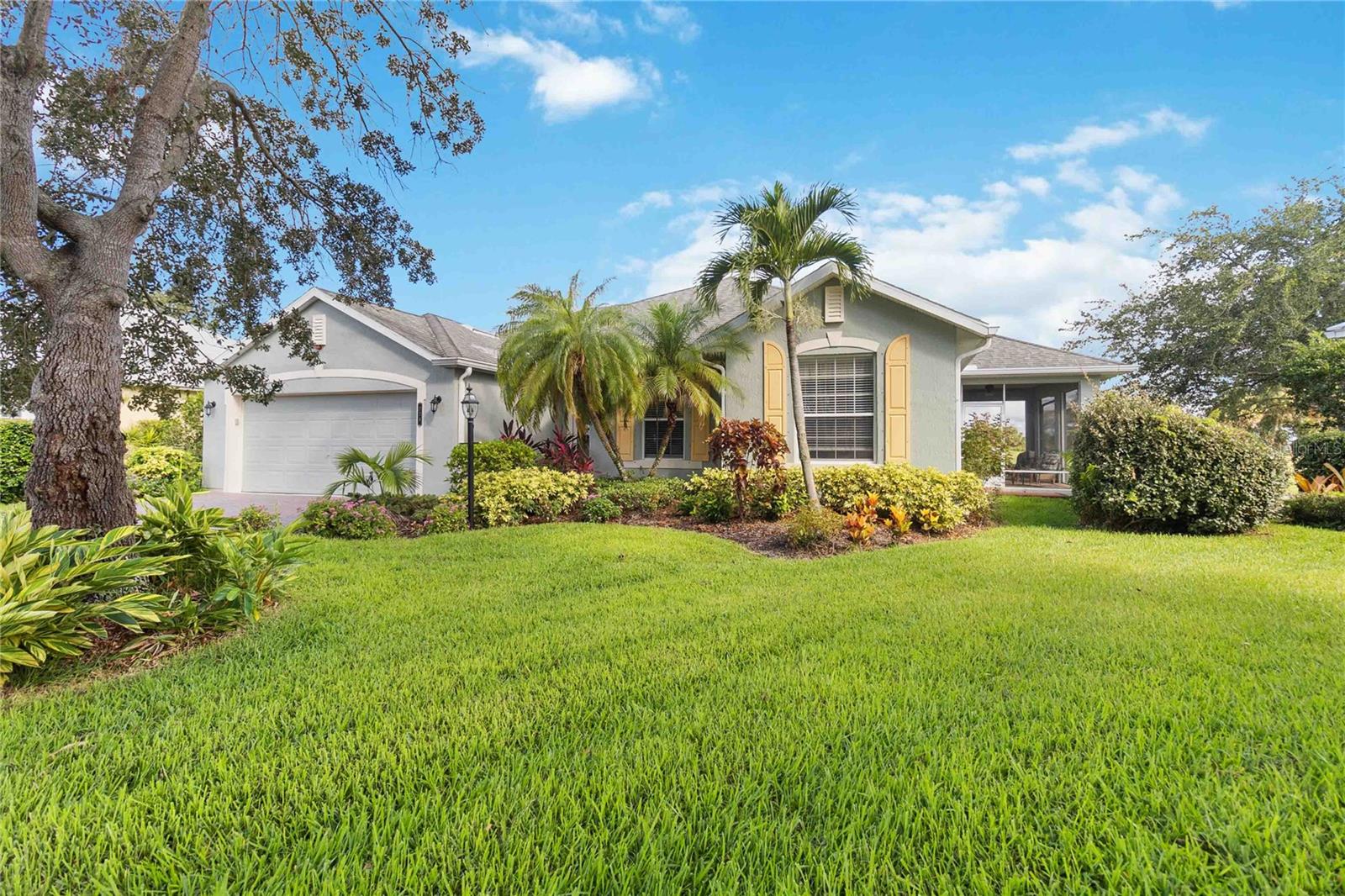BRAND NEW ROOF August 2024!! Warranty on shingles and workmanship will transfer to new owner! House has updated Wind Mit code. Window shutters are in garage. See stunning golf course views from living room, dining room, kitchen, patio, and screen porch. Watch brilliant sunsets in the evening. Beautiful and bright home with open floor plan. Split layout for additional privacy. The kitchen has solid surface counters, solid wood cabinets, and light bright appliances. Home has a the added privacy of a cul-de-sac, and the subdivision is gated with stunning natural areas, a club house, heated community pool, and a fitness center. Less than a 10 minute drive to the River with fantastic restaurants, shopping, and public parks. Don't miss this opportunity for your Florida dream.