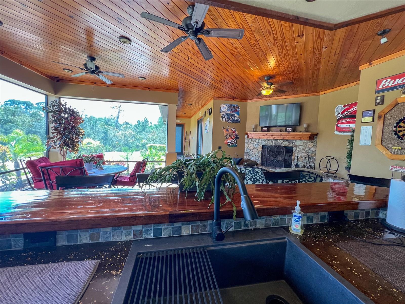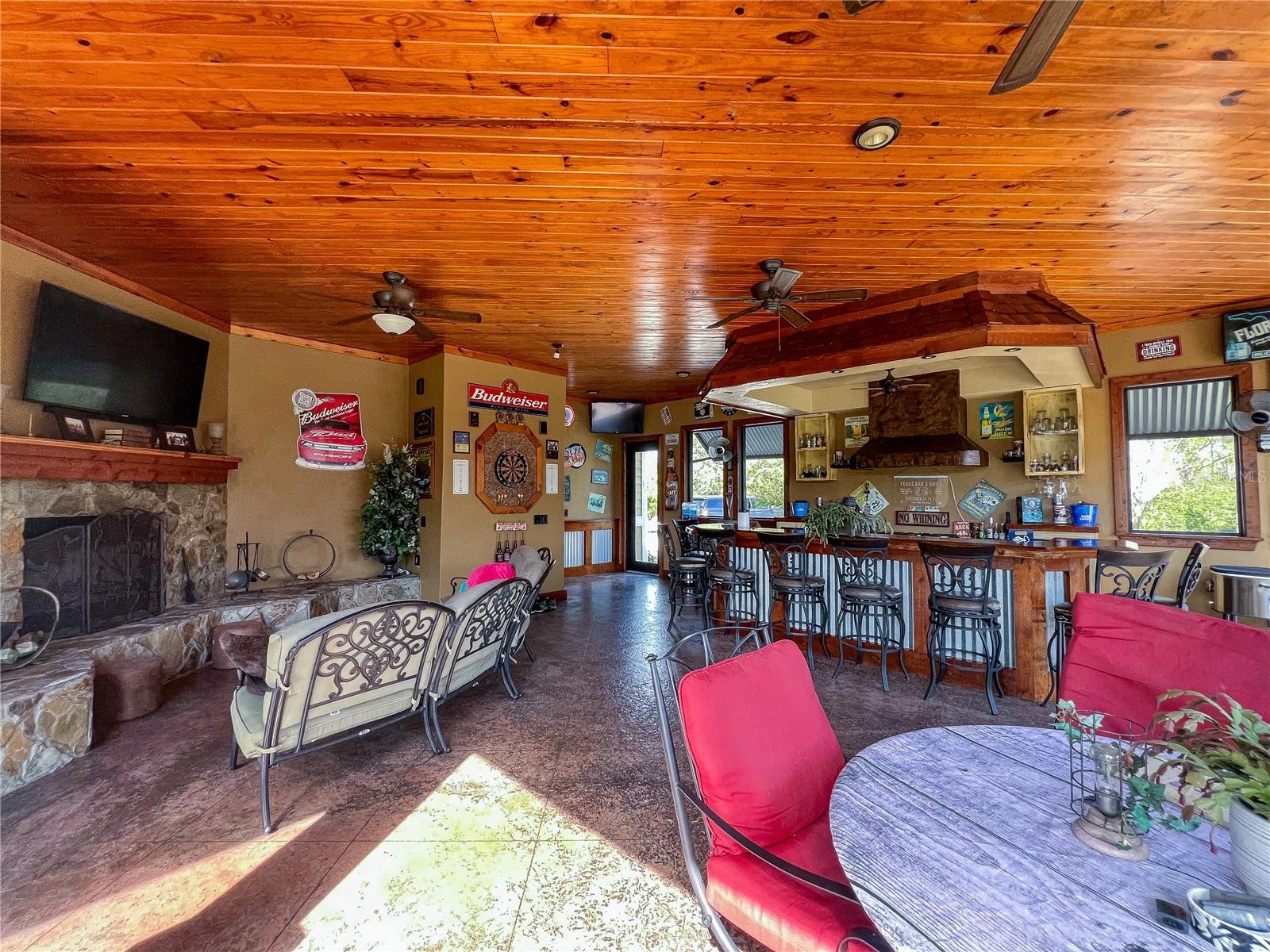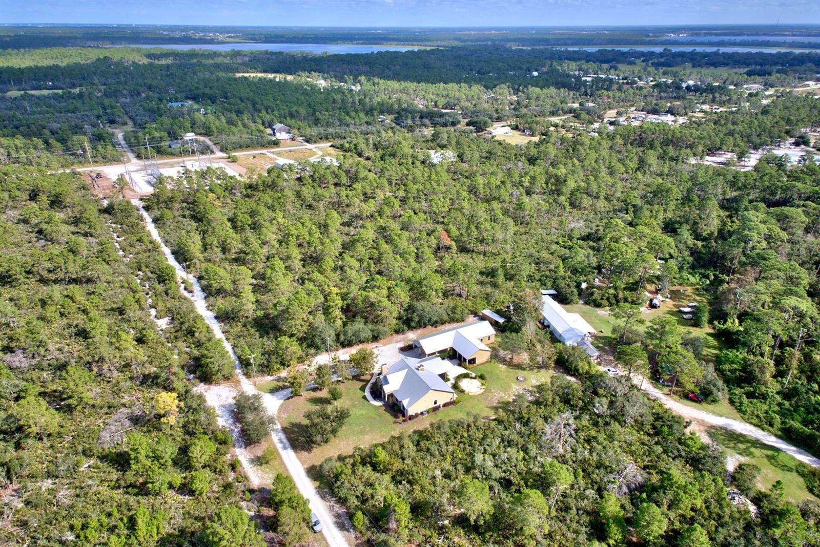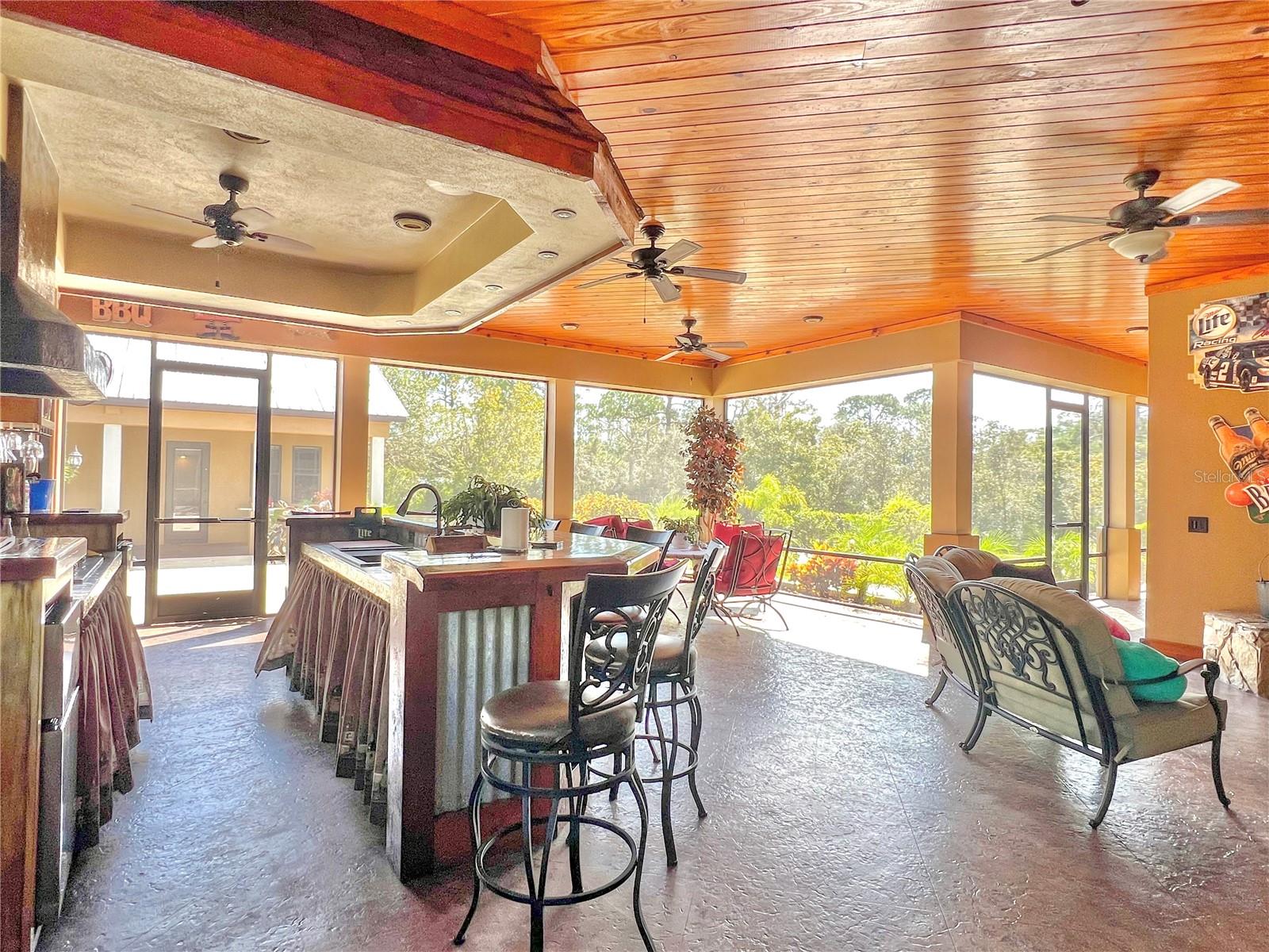 Private Oasis... Custom Home... Outdoor Living Space... Abundant Garage Space... this is an unique homestead that has so much to love! Tucked away in the native Florida scrubland, the property provides an escape to a peaceful and secluded environment. The options are endless with almost 6,000 total square footage in the home and detached building on almost an acre of land. The property has great curb appeal with mature landscaping and tasteful architecture using the combination of stucco, Hardie board, and stone. It has a metal roof on both buildings. One of the main focal points is the beautiful, screened-in back porch that features a large wood burning fireplace, an outdoor kitchen with a gas stove and a wet bar. The half bath with outside shower, tongue and groove wood ceiling, stoned fireplace and hearth, large bar area, multiple fans, televisions, and several sitting areas make this an enjoyable place to hang out and host company! The home has been built with some many thoughtful interior details such as custom window and door casings, 10 foot ceilings throughout the home with some vaulted areas featuring more tongue and groove wood, curved windows, and custom built cabinetry. The master suite is a dream!! All the doors in the master are double doors including the glass doors that lead to the back porch. The master bathroom has a soaking tub, a double vanity with a tower, water closet, and walk-in closets. One of the best perks is the beautiful walk-in shower with double shower heads. The living room has an attactive focal fireplace wall with detailed wood work. It has a guest bedroom and an additional room that can be used as a den, office, or extra bedroom. The kitchen has custom built cabinets, a gas stove, wall mounted convection oven, microwave and warming drawer, and custom countertops. The dining room is surrounded with windows for great natural lighting. PLUS... there is a large detached building in the back with endless options. There is a finished, air conditioned bonus room that could be used many different ways such as a bedroom/living room, a game room, an office, or art studio! This bonus room has a large porch overlooking the yard and includes a splash pad. There is a 2 car carport that leads into a very large garage space with an additional storage room in the back. It could be a wonderful setup for a wide range of hobbies! The options are so endless that you need to see it for yourself! It was built as a forever home, so no details were overlooked. Come unwind, kick back, and enjoy your stay!!