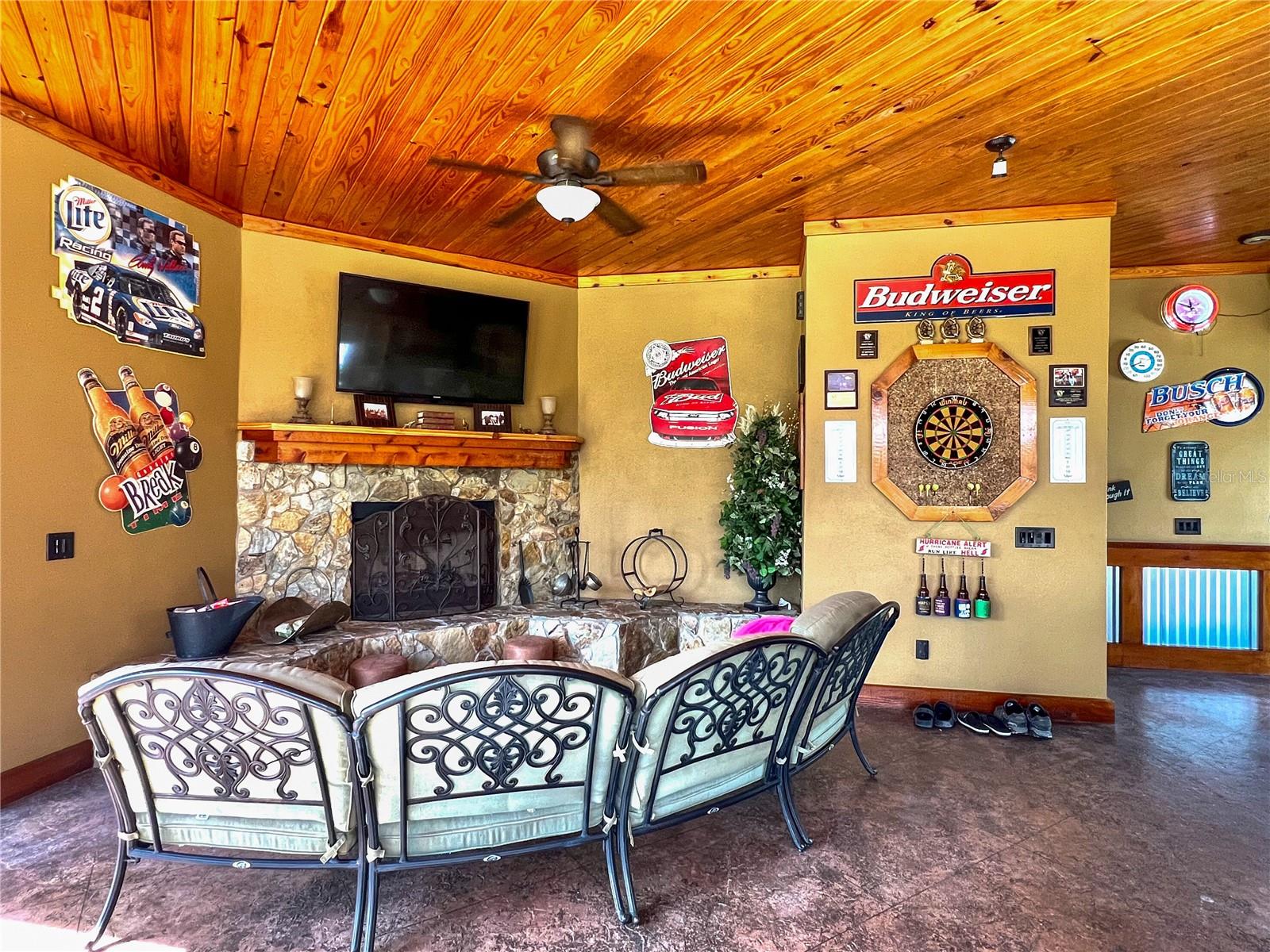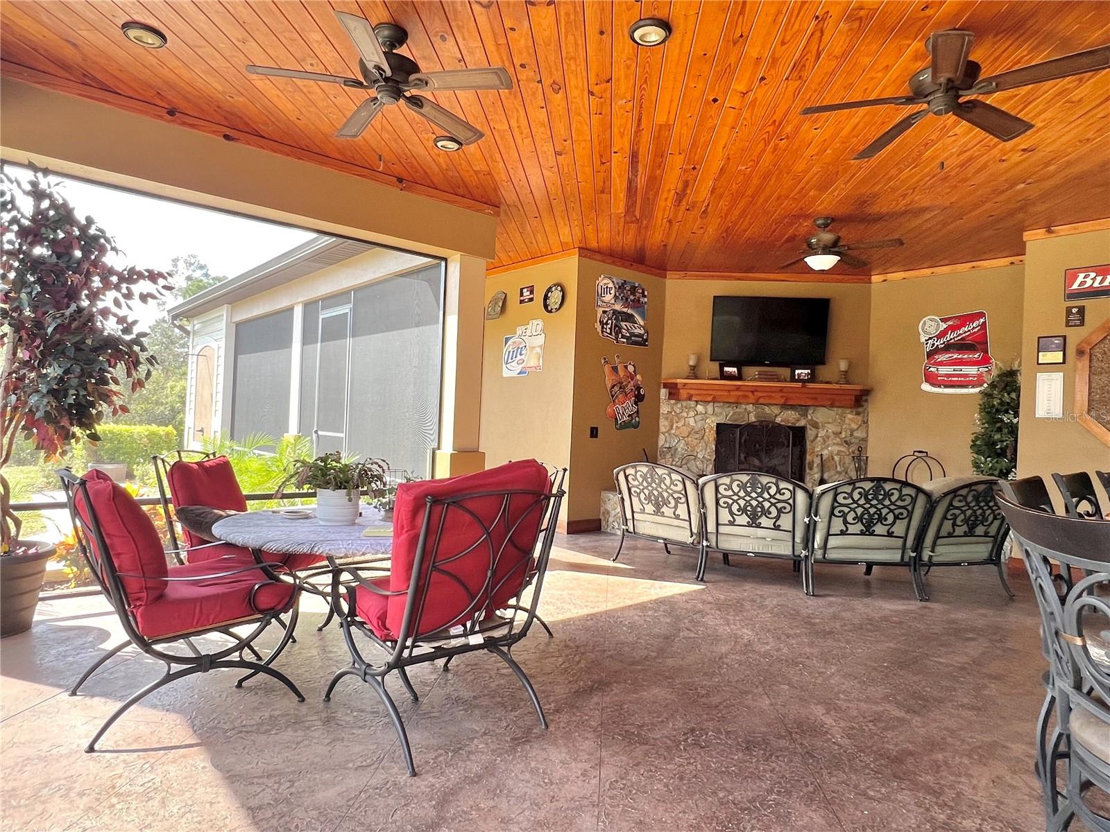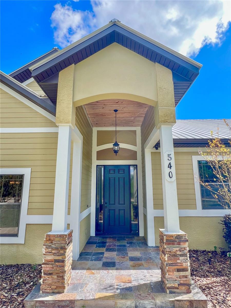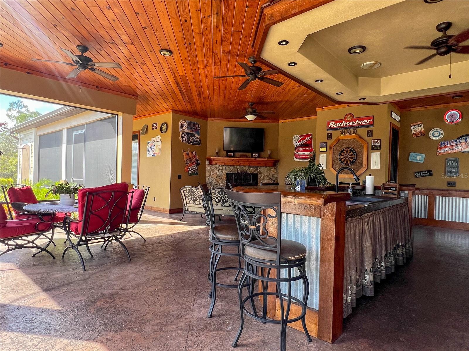 Private Oasis... Custom Home... Outdoor Living Space... Abundant Garage Space... this is an unique homestead that has so much to love! Tucked away in the native Florida scrubland, the property provides an escape to a peaceful and secluded environment. The options are endless with almost 6,000 total square footage in the home and detached building on almost an acre of land. The property has great curb appeal with mature landscaping and tasteful architecture using the combination of stucco, Hardie board, and stone. It has a metal roof on both buildings. One of the main focal points is the beautiful, screened-in back porch that features a large wood burning fireplace, an outdoor kitchen with a gas stove and a wet bar. The half bath with outside shower, tongue and groove wood ceiling, stoned fireplace and hearth, large bar area, multiple fans, televisions, and several sitting areas make this an enjoyable place to hang out and host company! The home has been built with some many thoughtful interior details such as custom window and door casings, 10 foot ceilings throughout the home with some vaulted areas featuring more tongue and groove wood, curved windows, and custom built cabinetry. The master suite is a dream!! All the doors in the master are double doors including the glass doors that lead to the back porch. The master bathroom has a soaking tub, a double vanity with a tower, water closet, and walk-in closets. One of the best perks is the beautiful walk-in shower with double shower heads. The living room has an attactive focal fireplace wall with detailed wood work. It has a guest bedroom and an additional room that can be used as a den, office, or extra bedroom. The kitchen has custom built cabinets, a gas stove, wall mounted convection oven, microwave and warming drawer, and custom countertops. The dining room is surrounded with windows for great natural lighting. PLUS... there is a large detached building in the back with endless options. There is a finished, air conditioned bonus room that could be used many different ways such as a bedroom/living room, a game room, an office, or art studio! This bonus room has a large porch overlooking the yard and includes a splash pad. There is a 2 car carport that leads into a very large garage space with an additional storage room in the back. It could be a wonderful setup for a wide range of hobbies! The options are so endless that you need to see it for yourself! It was built as a forever home, so no details were overlooked. Come unwind, kick back, and enjoy your stay!!
