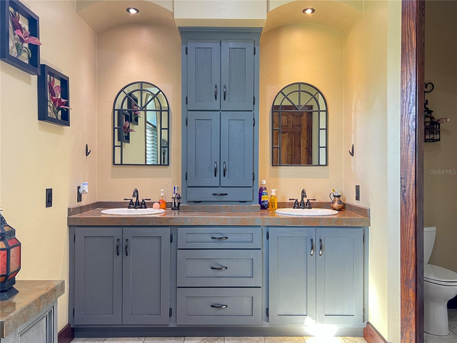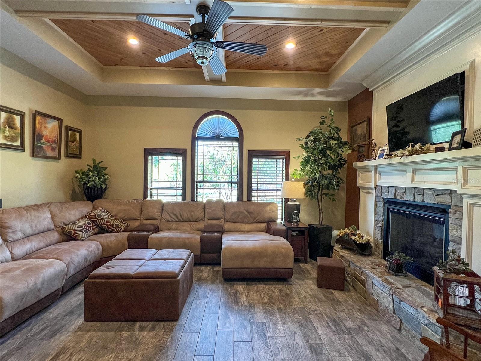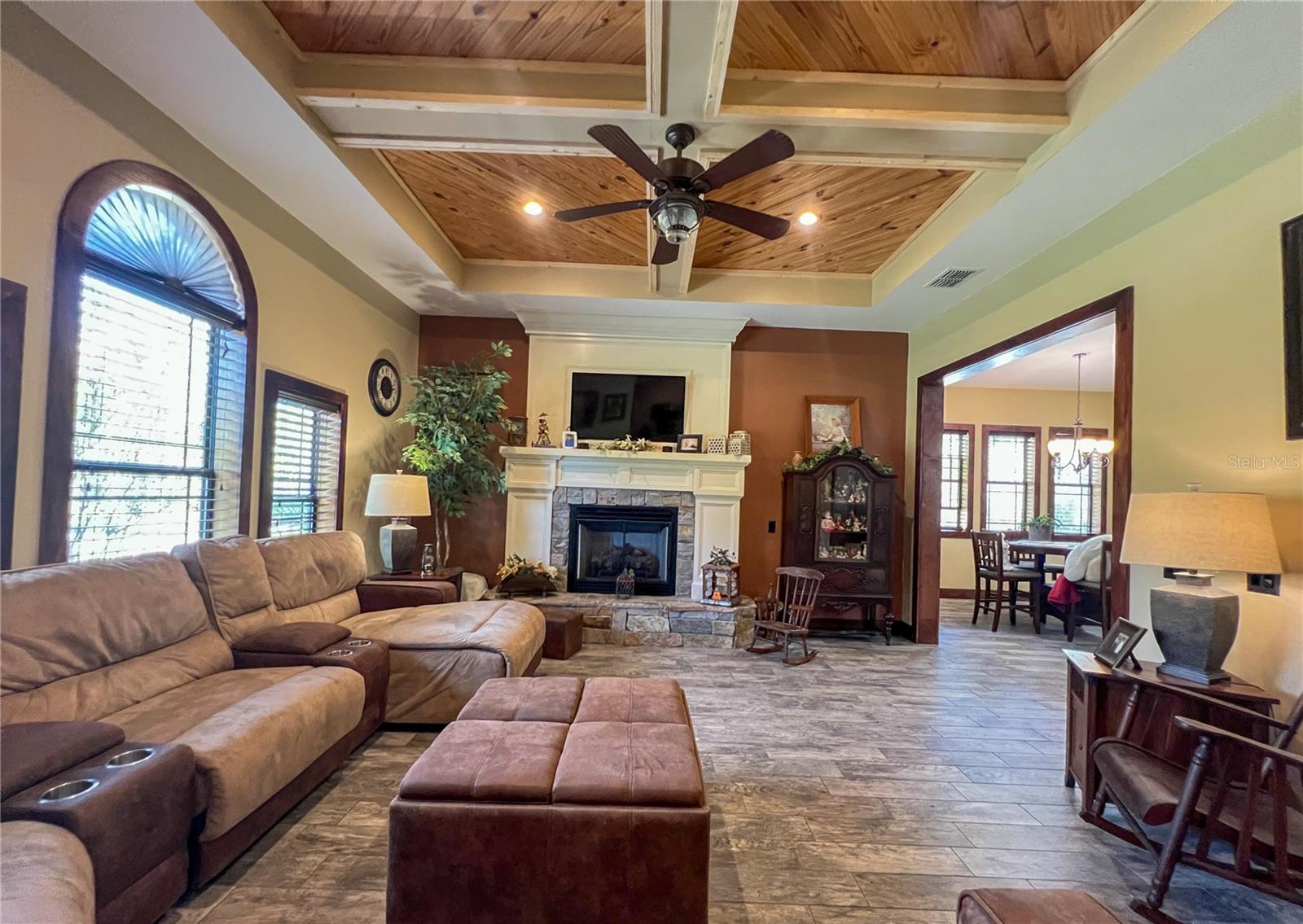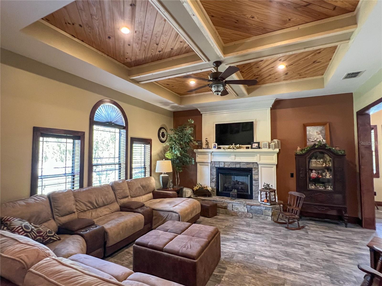 Private Oasis... Custom Home... Outdoor Living Space... Abundant Garage Space... this is an unique homestead that has so much to love! Tucked away in the native Florida scrubland, the property provides an escape to a peaceful and secluded environment. The options are endless with almost 6,000 total square footage in the home and detached building on almost an acre of land. The property has great curb appeal with mature landscaping and tasteful architecture using the combination of stucco, Hardie board, and stone. It has a metal roof on both buildings. One of the main focal points is the beautiful, screened-in back porch that features a large wood burning fireplace, an outdoor kitchen with a gas stove and a wet bar. The half bath with outside shower, tongue and groove wood ceiling, stoned fireplace and hearth, large bar area, multiple fans, televisions, and several sitting areas make this an enjoyable place to hang out and host company! The home has been built with some many thoughtful interior details such as custom window and door casings, 10 foot ceilings throughout the home with some vaulted areas featuring more tongue and groove wood, curved windows, and custom built cabinetry. The master suite is a dream!! All the doors in the master are double doors including the glass doors that lead to the back porch. The master bathroom has a soaking tub, a double vanity with a tower, water closet, and walk-in closets. One of the best perks is the beautiful walk-in shower with double shower heads. The living room has an attactive focal fireplace wall with detailed wood work. It has a guest bedroom and an additional room that can be used as a den, office, or extra bedroom. The kitchen has custom built cabinets, a gas stove, wall mounted convection oven, microwave and warming drawer, and custom countertops. The dining room is surrounded with windows for great natural lighting. PLUS... there is a large detached building in the back with endless options. There is a finished, air conditioned bonus room that could be used many different ways such as a bedroom/living room, a game room, an office, or art studio! This bonus room has a large porch overlooking the yard and includes a splash pad. There is a 2 car carport that leads into a very large garage space with an additional storage room in the back. It could be a wonderful setup for a wide range of hobbies! The options are so endless that you need to see it for yourself! It was built as a forever home, so no details were overlooked. Come unwind, kick back, and enjoy your stay!!