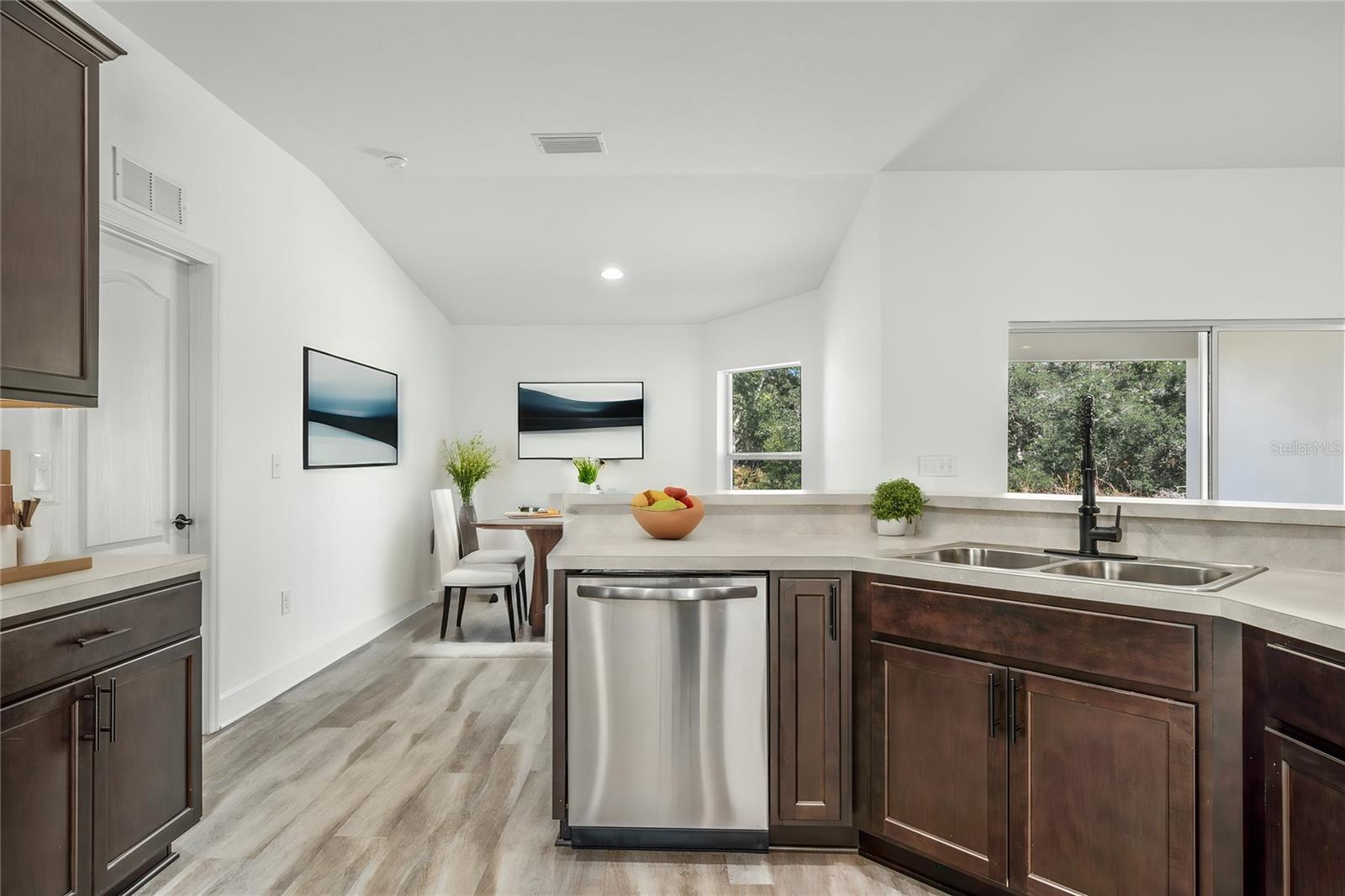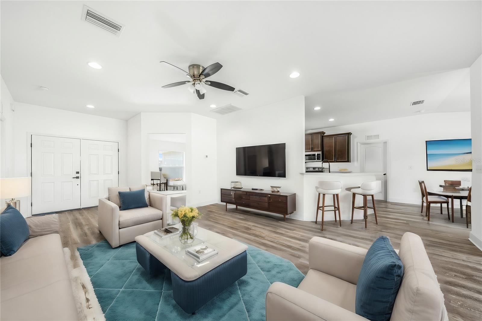 Step into the warmth of The Norfolk, a delightful all updated 4-bedroom, 2-bathroom home offering 1,847 square feet of living space. Revel in the beauty and durability of brand-new Luxury Vinyl Plank flooring throughout the home, adding a touch of modern elegance and easy maintenance. The kitchen boasts a spacious nook and a seated bar overlooking the expansive great room, creating an ideal space for entertaining or casual family gatherings. Sun ‘N Lake is a 36-hole championship golf community featuring tennis courts, a swimming pool, and more. Residents have easy access to a plethora of amenities designed for leisure and enjoyment.