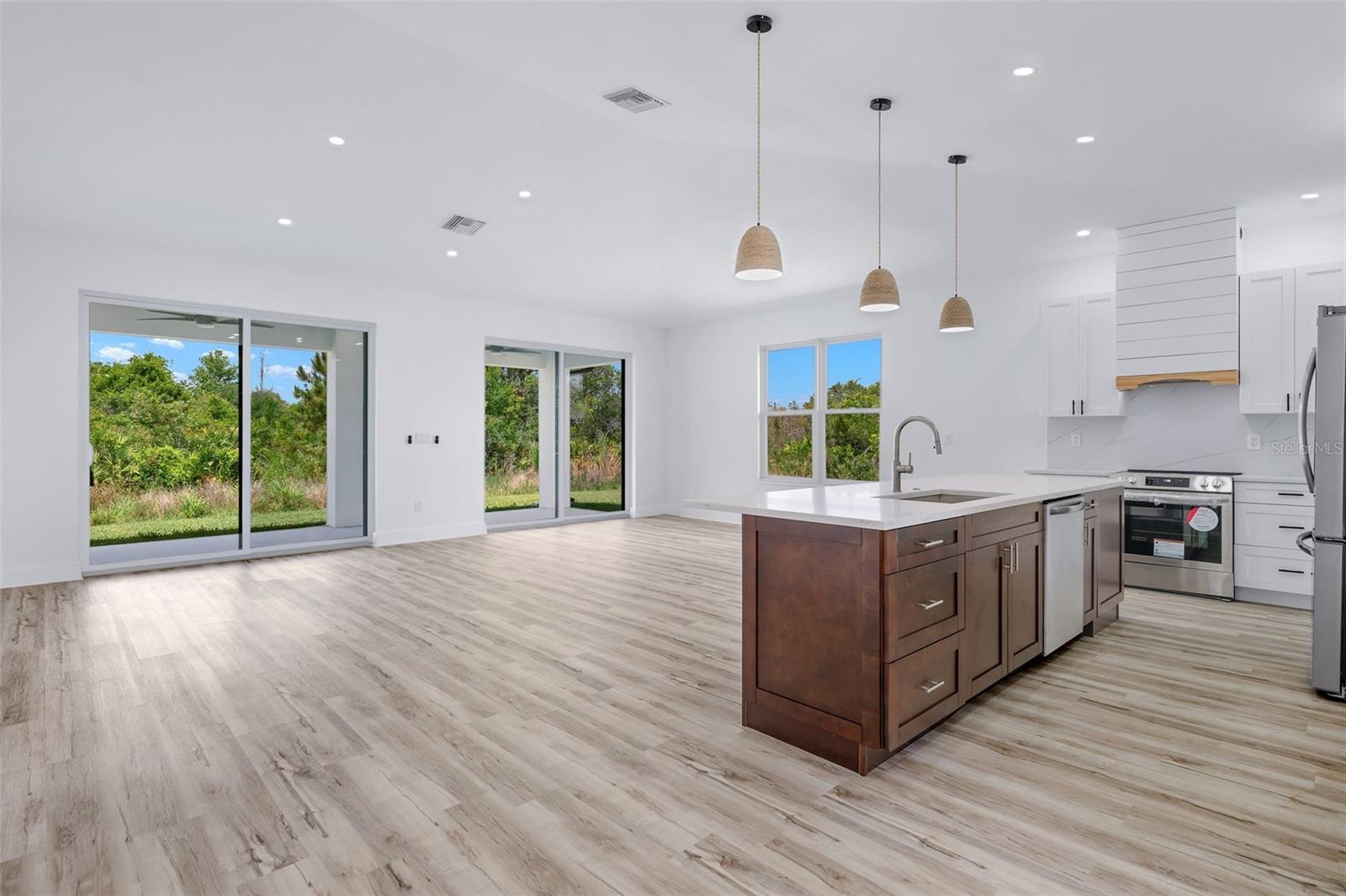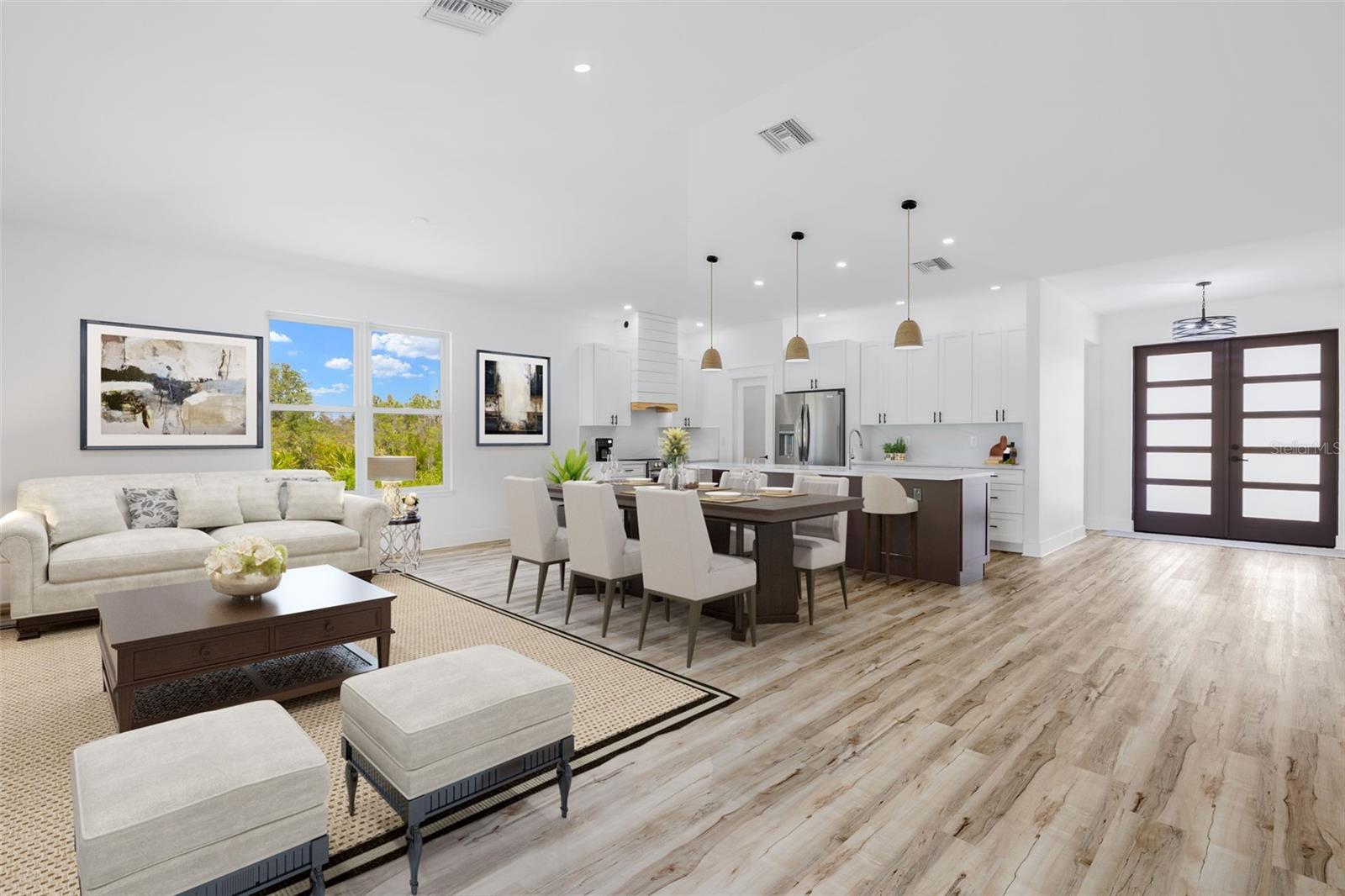Step into luxury and comfort in this Sebring gem! This new construction home boasts 1,858 sqft of meticulously crafted living space, featuring 3 bedrooms and 2 baths. With Sun ‘N Lake golf course minutes away, your access to 36 hole championship golf couldn’t be more accessible year round. As you enter, you'll be greeted by the warmth of LVP flooring throughout, offering both durability and style. The spacious living area is accentuated by high vaulted ceilings, while the kitchen dazzles with quartz countertops, slow-close drawers and cabinets. Indulge in relaxation in the master suite, complete with a luxurious walk-in shower. Instant slider door access to enjoy the serene surroundings on the back lanai, adorned with tongue and groove ceilings, perfect for savoring the Florida breeze. Anderson windows bathe every room in natural light, enhancing the ambiance of this exquisite home. Don't miss out on this opportunity for luxury living in Sebring—schedule your viewing today!
