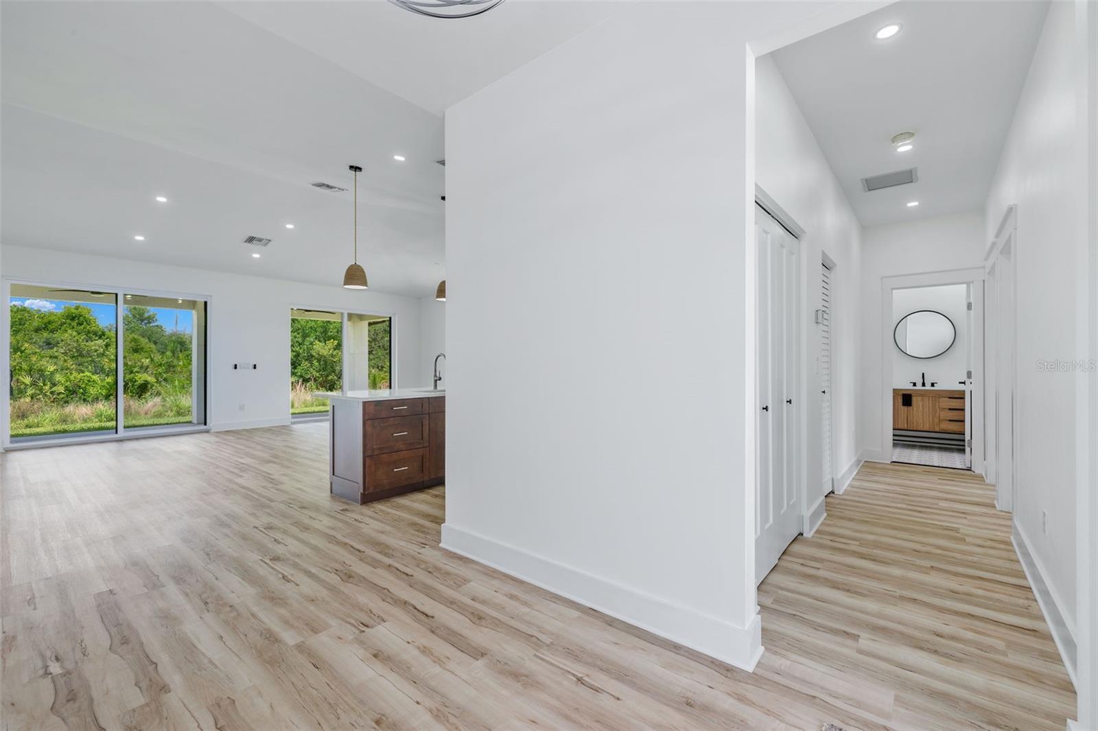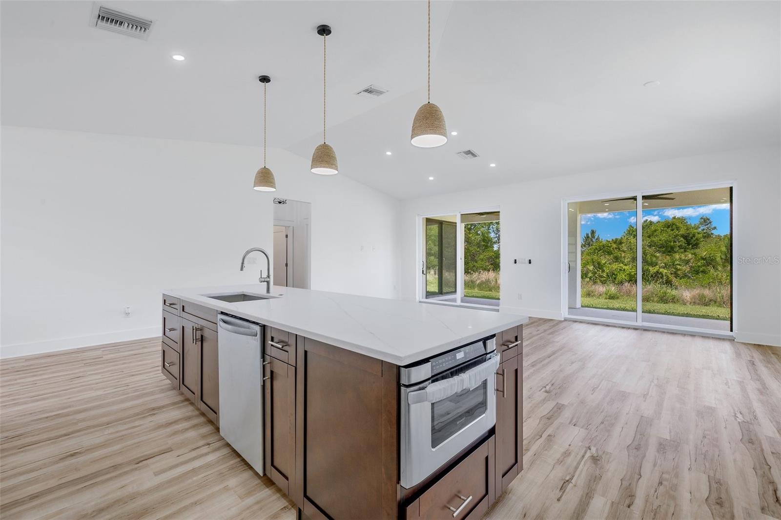 Step into luxury and comfort in this Sebring gem! This new construction home boasts 1,858 sqft of meticulously crafted living space, featuring 3 bedrooms and 2 baths. With Sun ‘N Lake golf course minutes away, your access to 36-hole championship golf couldn’t be more accessible year-round. As you enter, you'll be greeted by the warmth of LVP flooring throughout, offering both durability and style. The spacious living area is accentuated by high vaulted ceilings, while the kitchen dazzles with quartz countertops, slow-close drawers and cabinets. Indulge in relaxation in the master suite, complete with a luxurious walk-in shower. Instant slider door access to enjoy the serene surroundings on the back lanai, adorned with tongue and groove ceilings, perfect for savoring the Florida breeze. Anderson windows bathe every room in natural light, enhancing the ambiance of this exquisite home. Don't miss out on this opportunity for luxury living in Sebring—schedule your viewing today!