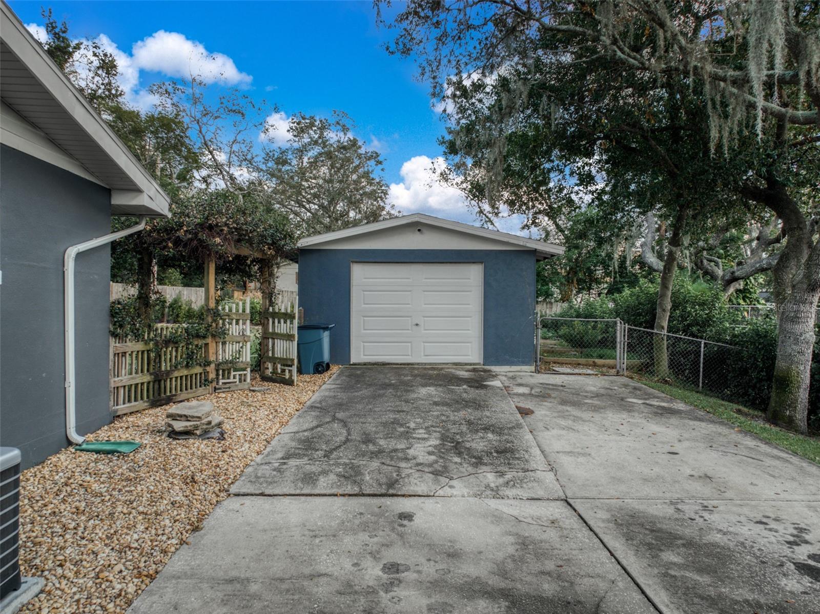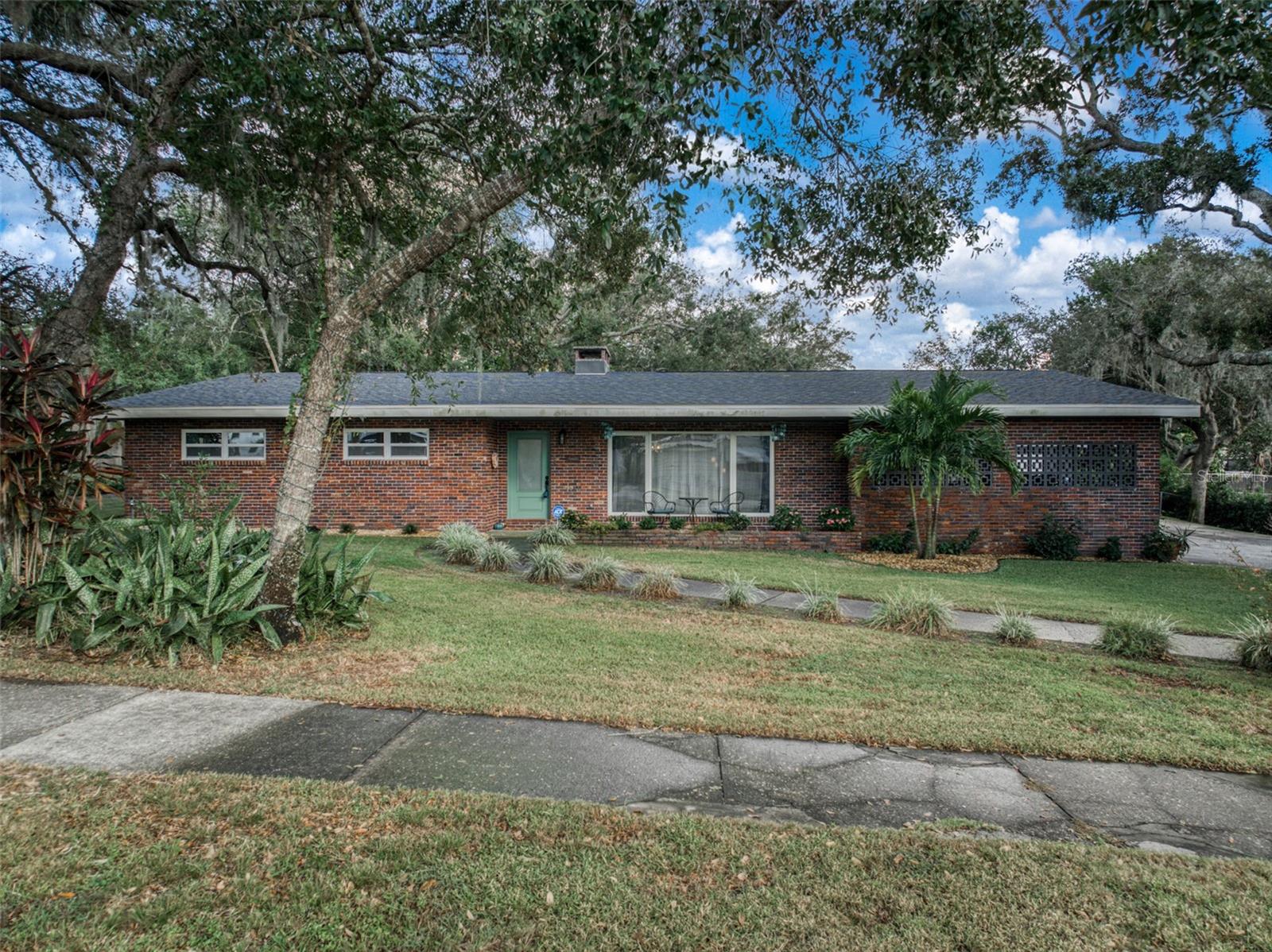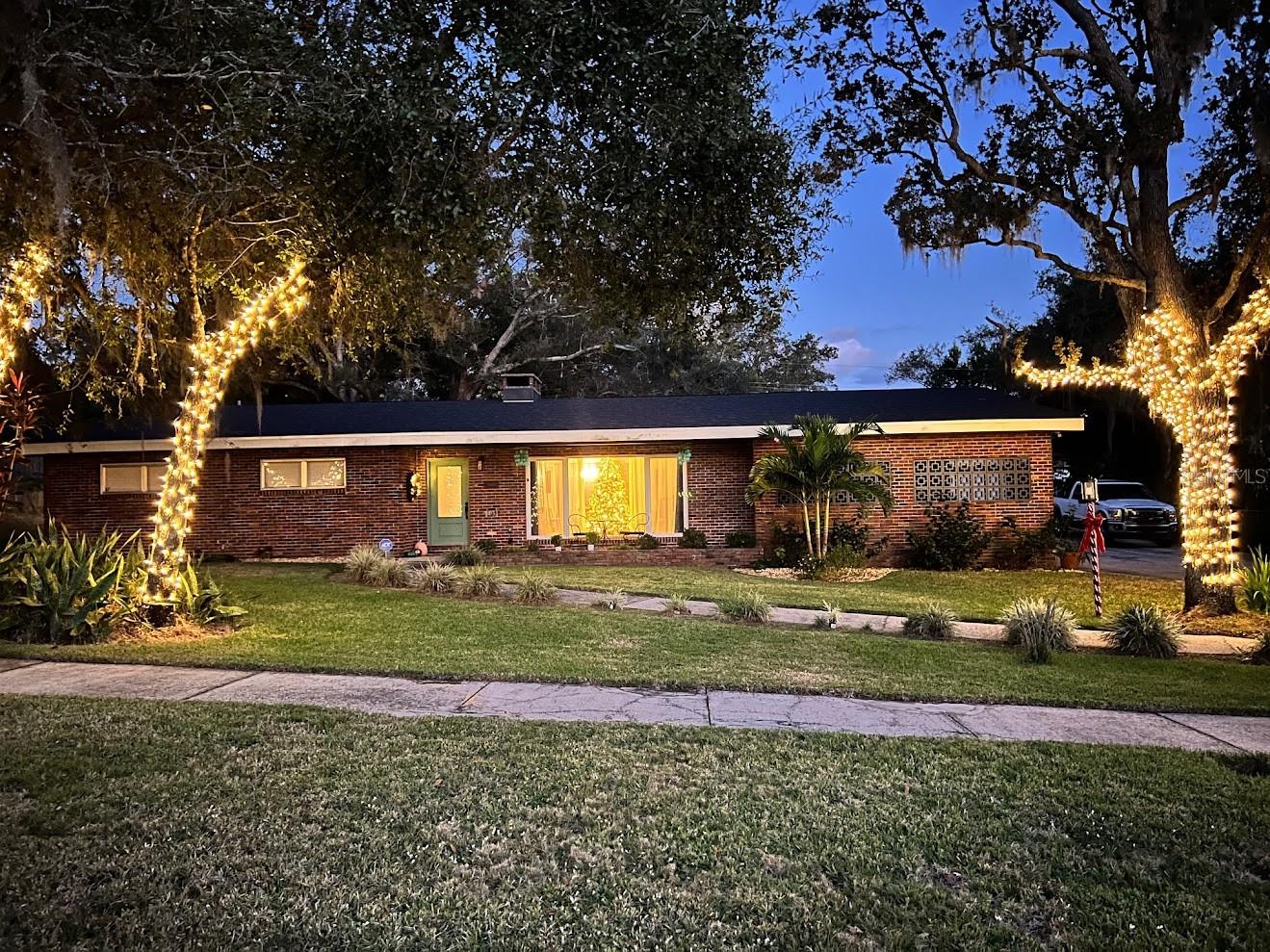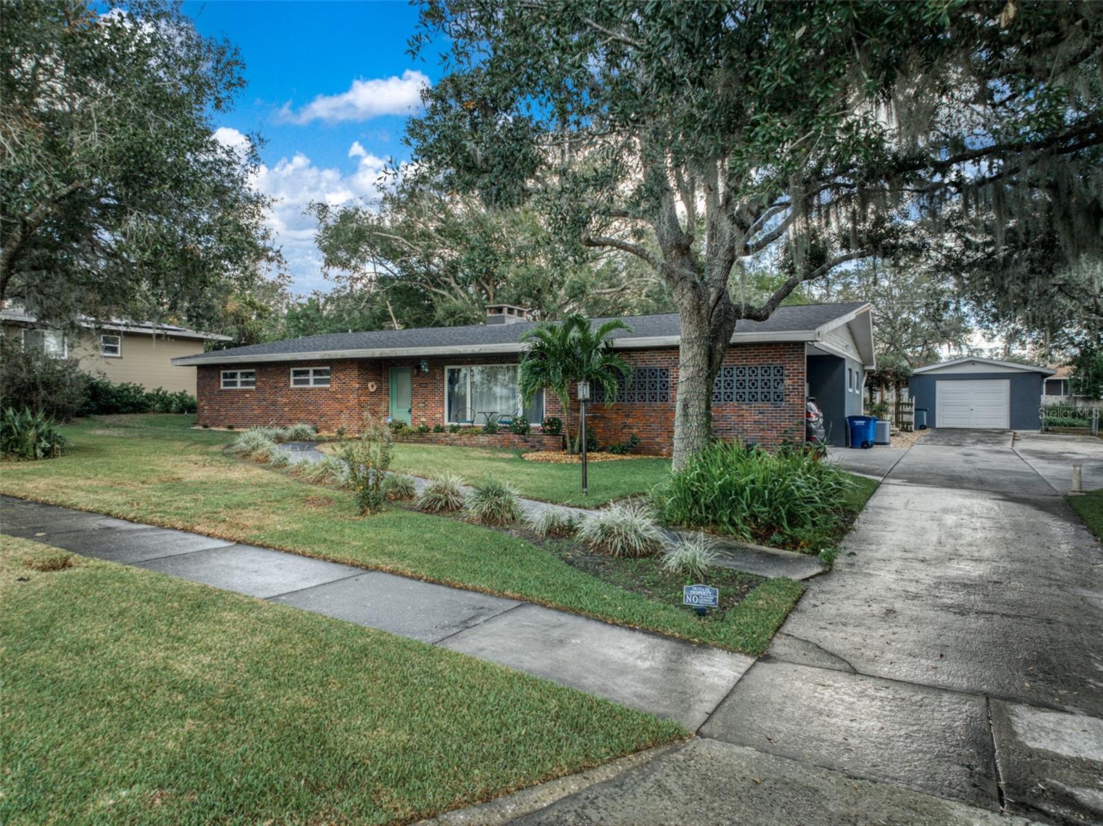 This charming and spacious home is a must see. It is nestled on an oversize lot with plenty of beautiful oak trees to provide great shade in this Florida heat. The Front porch is a perfect place to sit and enjoy your morning coffee. Double carport and detached garage with a long driveway for lots of parking. The oversized back yard is private and ready for you to entertain all your friends and family for a BBQ. Numerous upgrades. The remodeled gourmet kitchen and a double-sided wood fireplace are located perfectly and can be seen from all rooms. Refinished Terrazzo floors and a spacious sunken living room. New A/C in June 2022. New Roof in November 2021. The home has 2 hot water heaters. Enjoy the backyard looking through the sliding glass doors. The large front window is new in 2022 and new double paned windows in October 2024. PLUS a detached garage for a hobby room or workshop. This home is clean and ready to move in. Custom remodeled bathrooms in 2023. Recessed LED lighting was installed in 2023. Electrical panel was upgraded in 2023 including a Tesla level 2 EV charger as a bonus. This is a well-maintained home and pride of ownership shows throughout. Park and lake nearby.