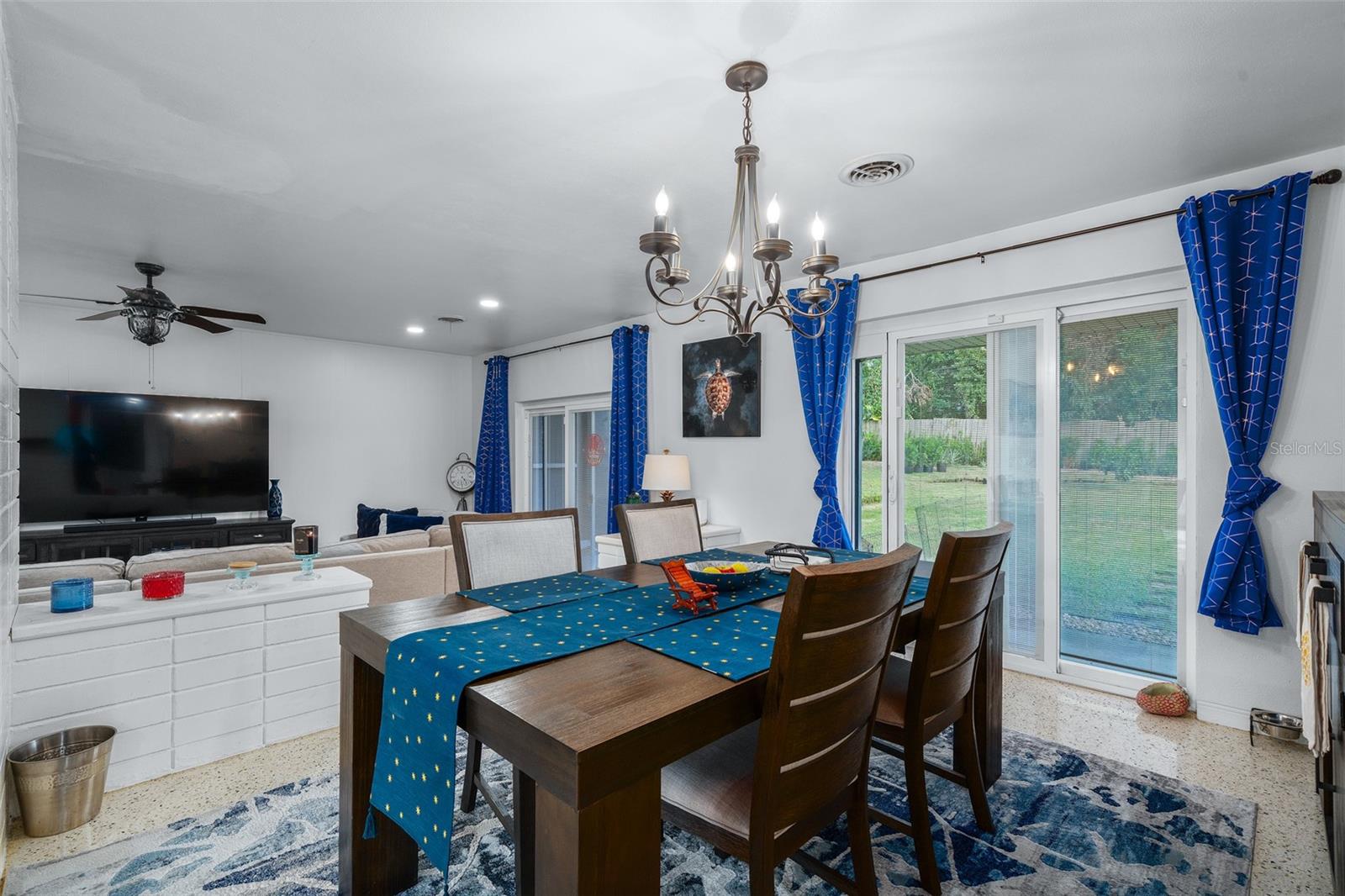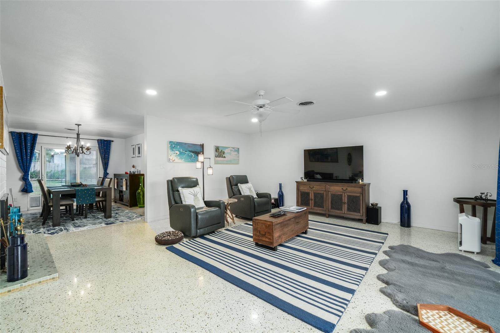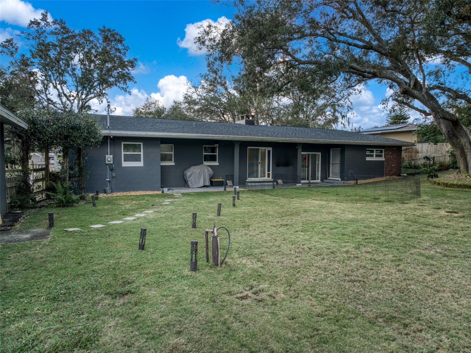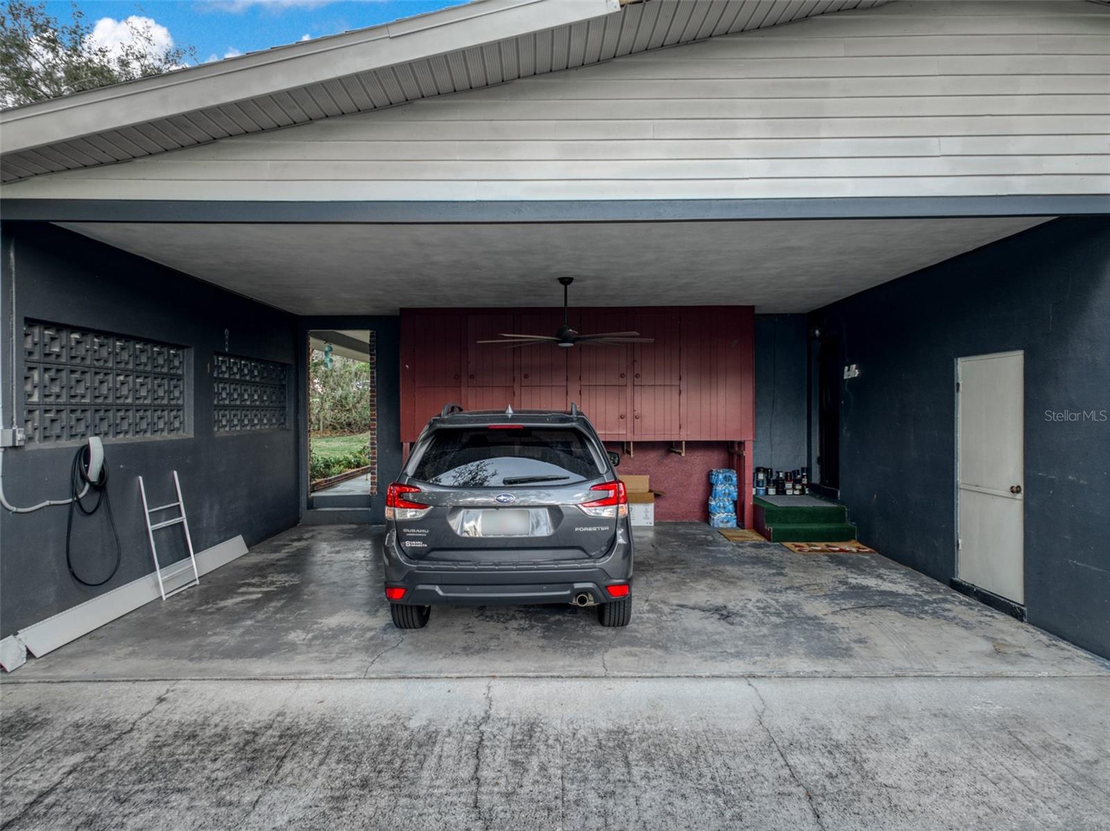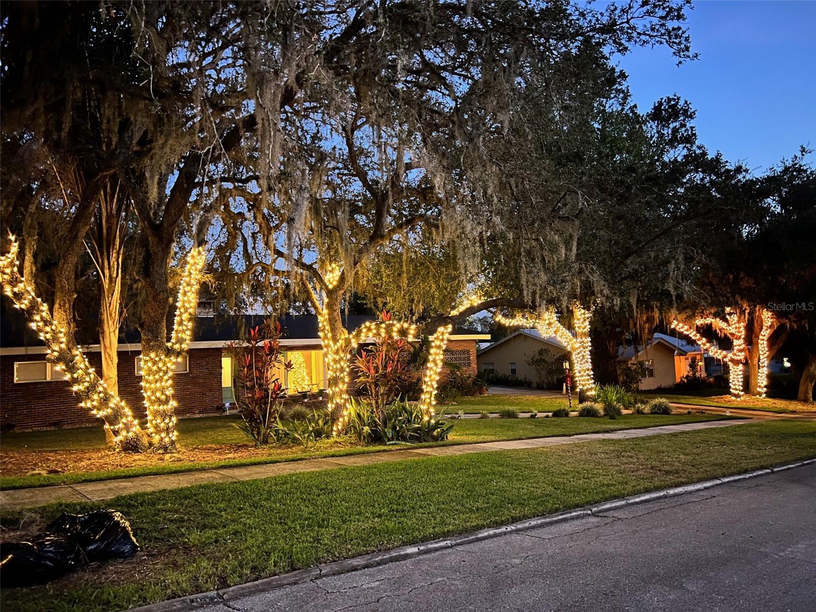 This charming and spacious home is a must see. It is nestled on an oversize lot with plenty of beautiful oak trees to provide great shade in this Florida heat. The Front porch is a perfect place to sit and enjoy your morning coffee. Double carport and detached garage with a long driveway for lots of parking. The oversized back yard is private and ready for you to entertain all your friends and family for a BBQ. Numerous upgrades. The remodeled gourmet kitchen and a double-sided wood fireplace are located perfectly and can be seen from all rooms. Refinished Terrazzo floors and a spacious sunken living room. New A/C in June 2022. New Roof in November 2021. The home has 2 hot water heaters. Enjoy the backyard looking through the sliding glass doors. The large front window is new in 2022 and new double paned windows in October 2024. PLUS a detached garage for a hobby room or workshop. This home is clean and ready to move in. Custom remodeled bathrooms in 2023. Recessed LED lighting was installed in 2023. Electrical panel was upgraded in 2023 including a Tesla level 2 EV charger as a bonus. This is a well-maintained home and pride of ownership shows throughout. Park and lake nearby.