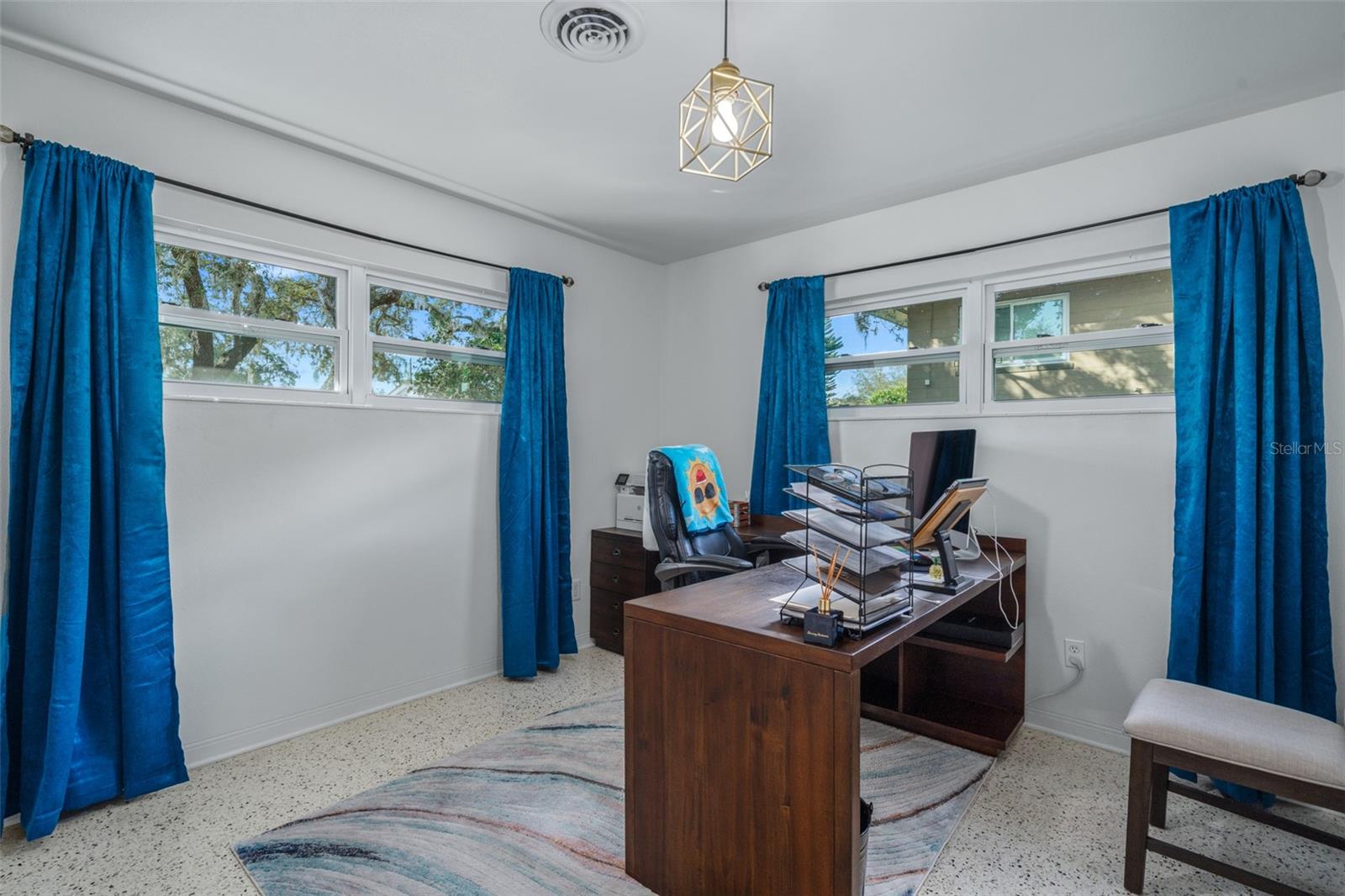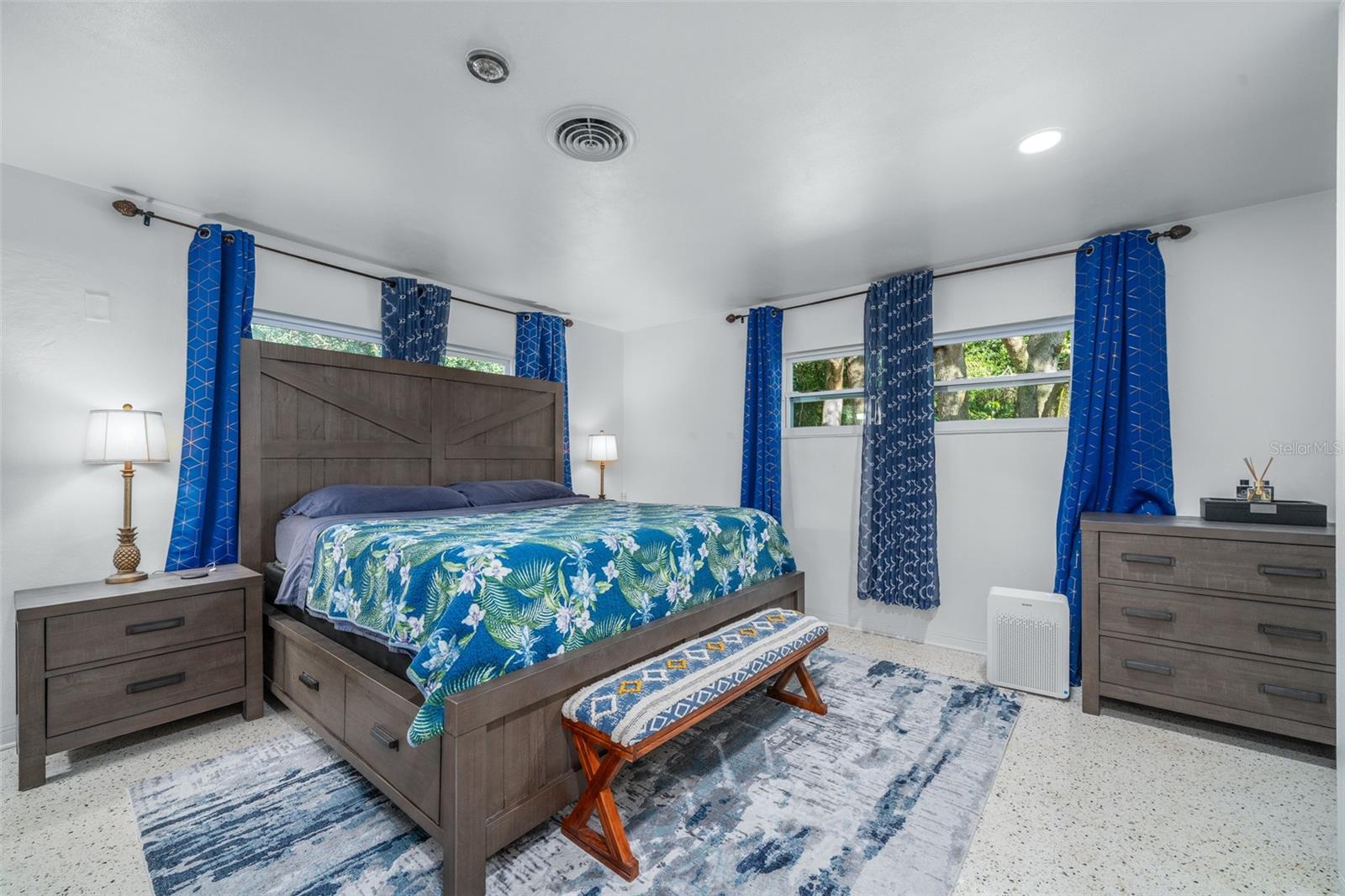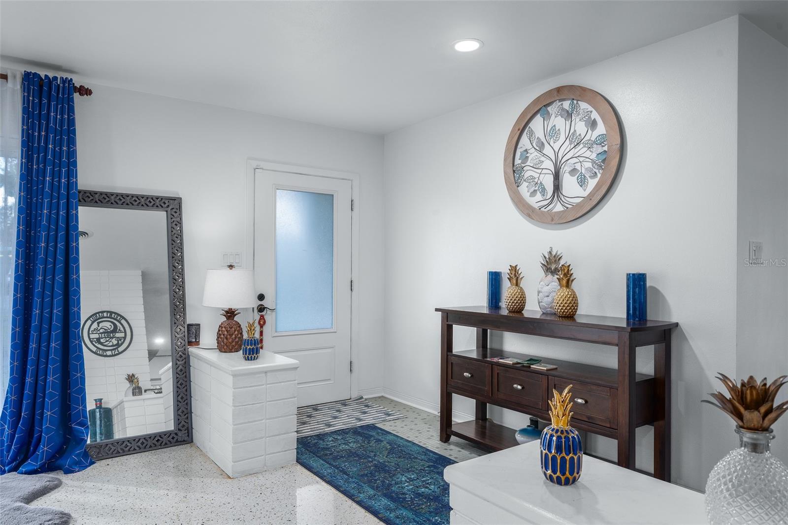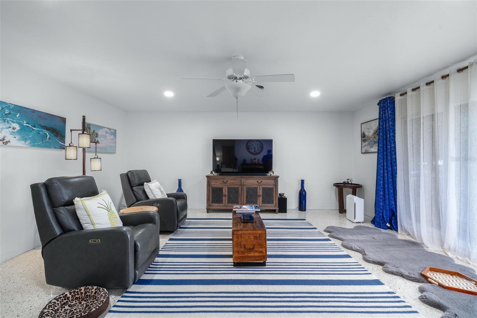 This charming and spacious home is a must see. It is nestled on an oversize lot with plenty of beautiful oak trees to provide great shade in this Florida heat. The Front porch is a perfect place to sit and enjoy your morning coffee. Double carport and detached garage with a long driveway for lots of parking. The oversized back yard is private and ready for you to entertain all your friends and family for a BBQ. Numerous upgrades. The remodeled gourmet kitchen and a double-sided wood fireplace are located perfectly and can be seen from all rooms. Refinished Terrazzo floors and a spacious sunken living room. New A/C in June 2022. New Roof in November 2021. The home has 2 hot water heaters. Enjoy the backyard looking through the sliding glass doors. The large front window is new in 2022 and new double paned windows in October 2024. PLUS a detached garage for a hobby room or workshop. This home is clean and ready to move in. Custom remodeled bathrooms in 2023. Recessed LED lighting was installed in 2023. Electrical panel was upgraded in 2023 including a Tesla level 2 EV charger as a bonus. This is a well-maintained home and pride of ownership shows throughout. Park and lake nearby.