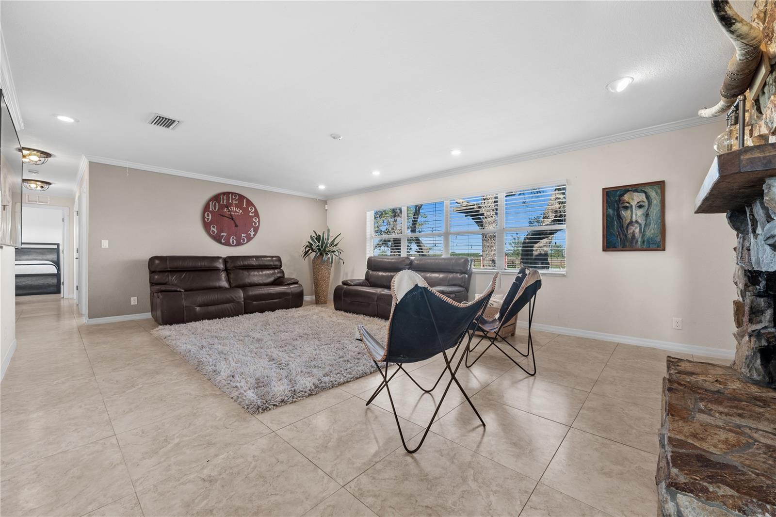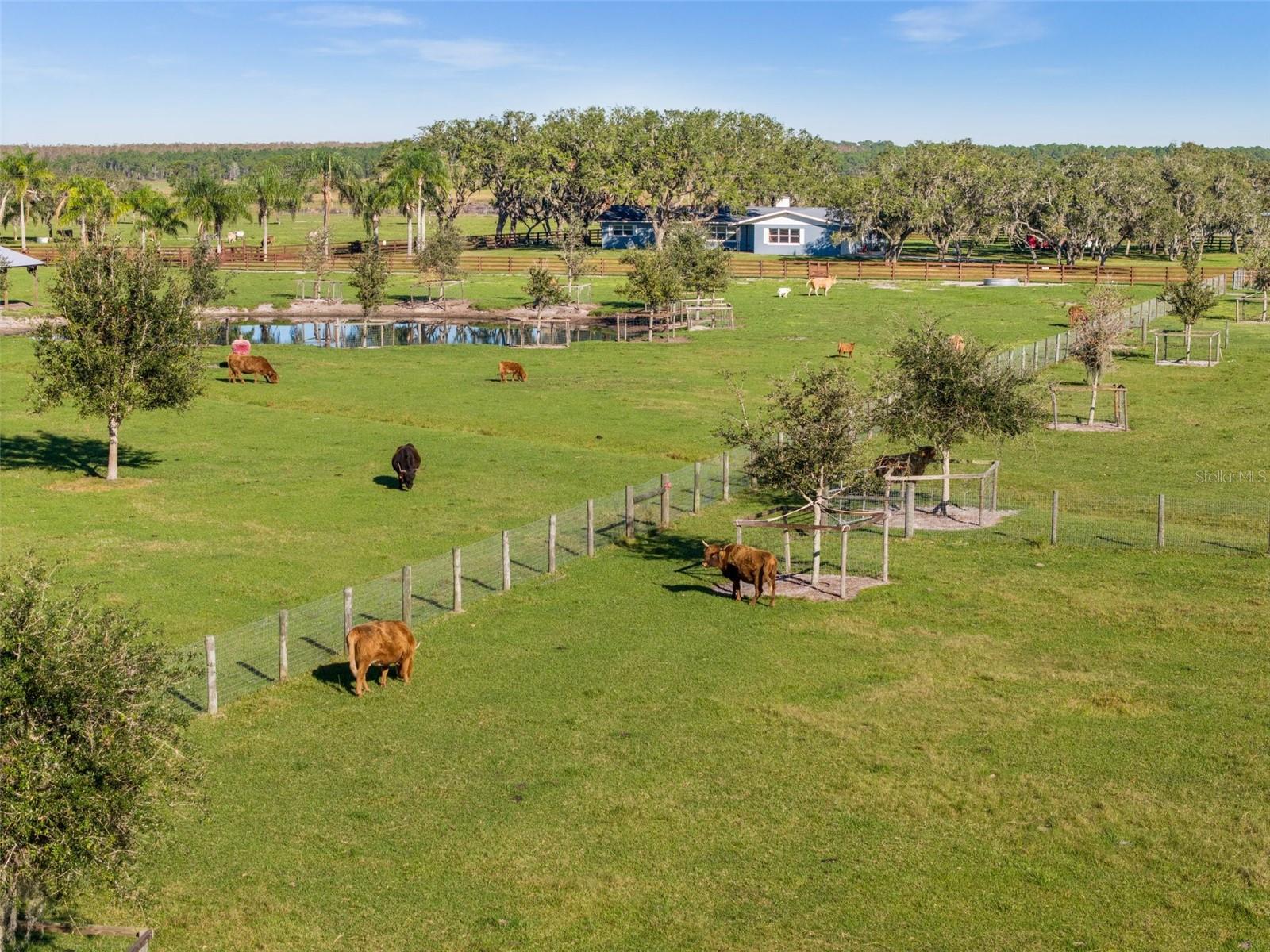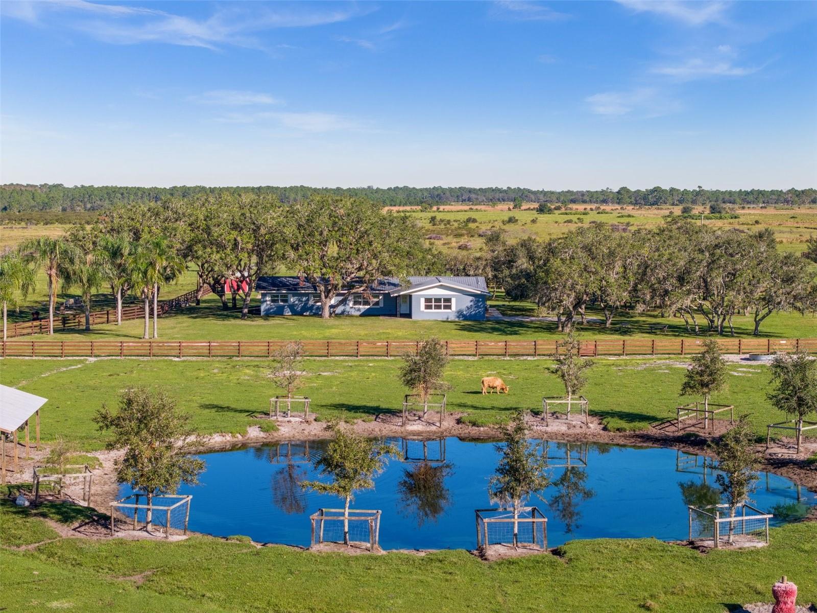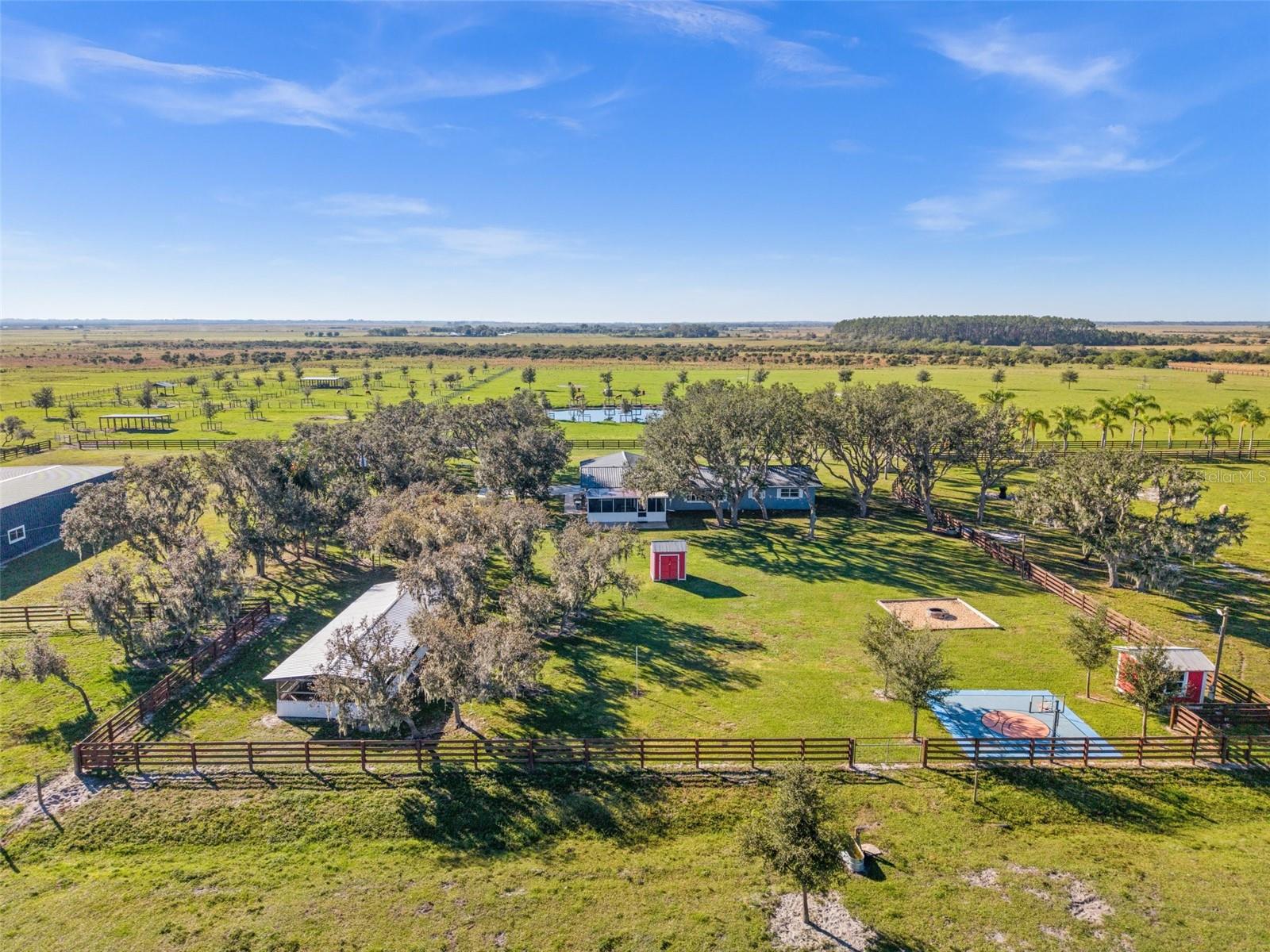 PERFECT FOR FARM AIRBNB !!! Located on 41.34 acres of prime Florida ranchland, this 2,200 sq. ft. home features 4 bedrooms and 3 bathrooms, with modern updates throughout. The kitchen boasts stainless steel appliances, a gas stove, and new countertops. Enjoy tile floors, a cozy stone fireplace, and a metal roof. Outside, relax by the fire pit, shoot hoops on the basketball court, or unwind under the oak trees on the screened porch. Fully equipped for animals with a chicken coop, pumphouse, Cowpens, and a 70' x 40' barn with plumbing, stalls, and a tack room. Motivated seller, seller financing available—every item that you see is for sale, but not included on the property asking price (please ask for price). Come see it today!