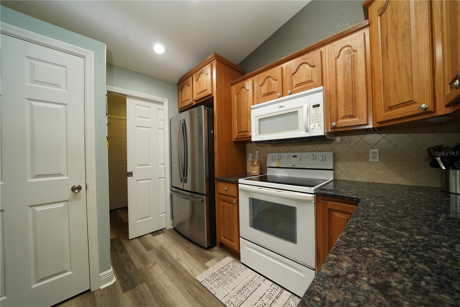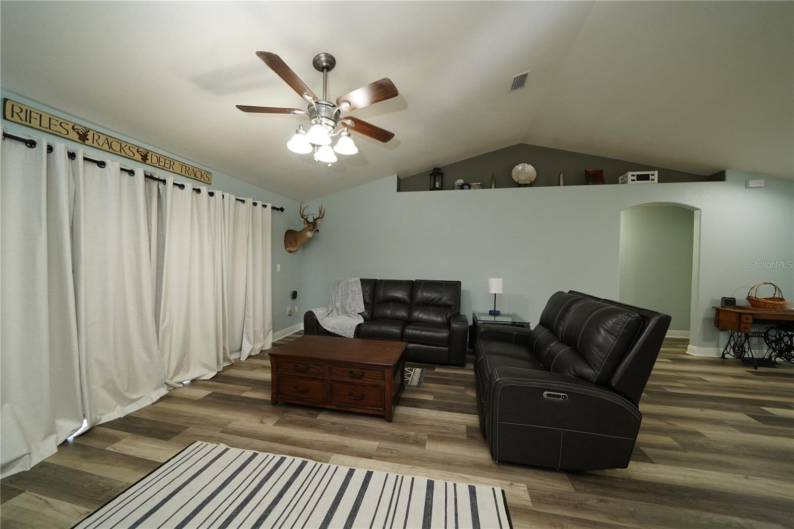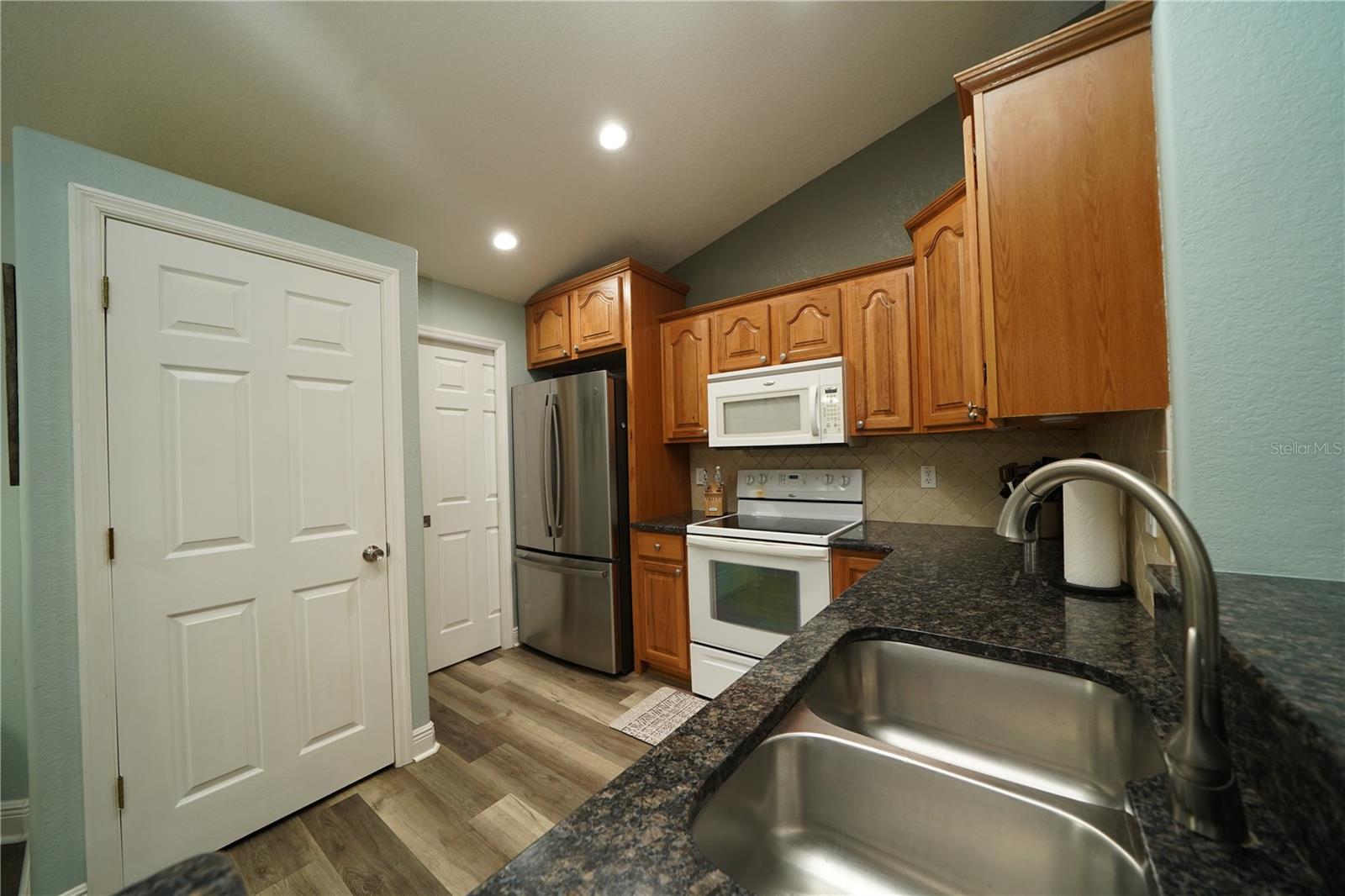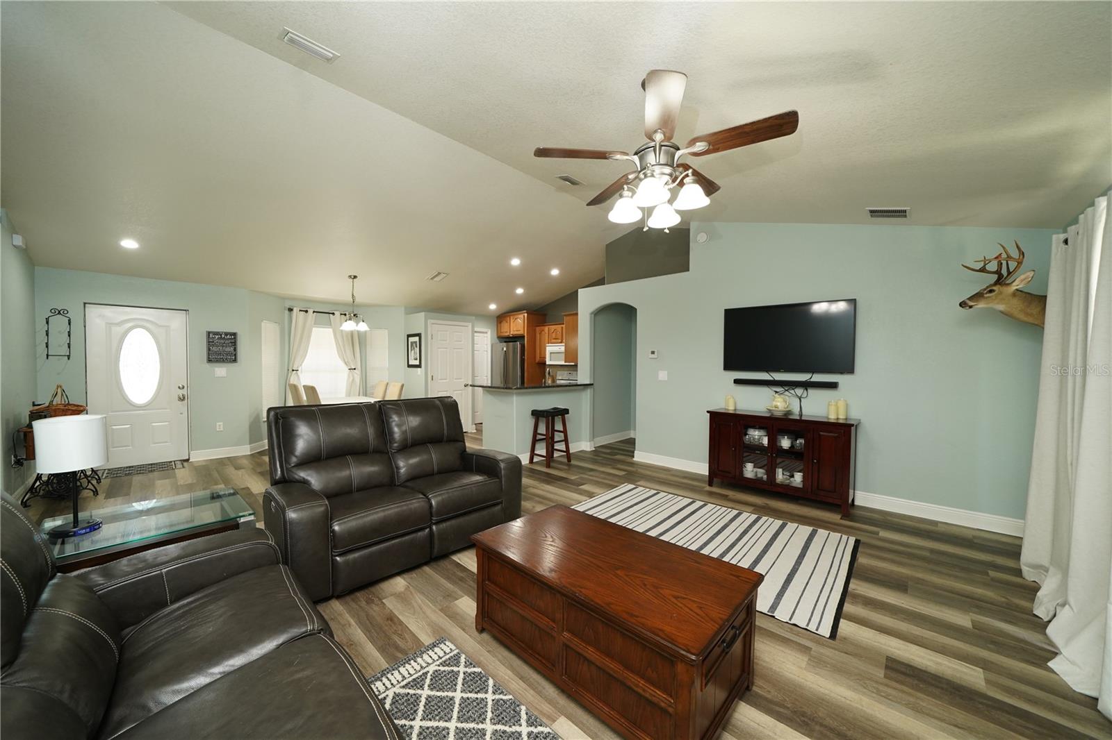 This charming 3- bedroom, 2- Bathroom home spanning 1,506 sq ft, is waiting just for you! Nestled in Lake Haven Estates community with NO HOA fees., you're welcomed by a spacious driveway and a sprawling front yard. This home exudes warmth and charm from the moment you arrive. Inside, high ceilings and an open layout create an inviting atmosphere, perfect for both relaxation and spending quality time with your loved ones. The kitchen is a dream, boasting a granite countertops, solid wood cabinets, modern appliances, and a backsplash for a contemporary finish. Ample countertop space and storage in the cabinets ensure functionality meets style. The master bedroom offers ample space and a luxurious connecting master bath, featuring a dual vanity and spacious updated walk-in shower, easily makes this room your personal oasis. Additional bedrooms are designed with plenty of space, storage and natural light, ensuring everyone in the family feels right at home. Outside, a large patio sets the stage for designing your own space. This backyard is an ideal spot to soak up the warm Florida weather while allowing little ones and four-legged friends to roam freely. Don't miss out on this exceptional opportunity to embrace a lifestyle of comfort, contemporary design and convenience!