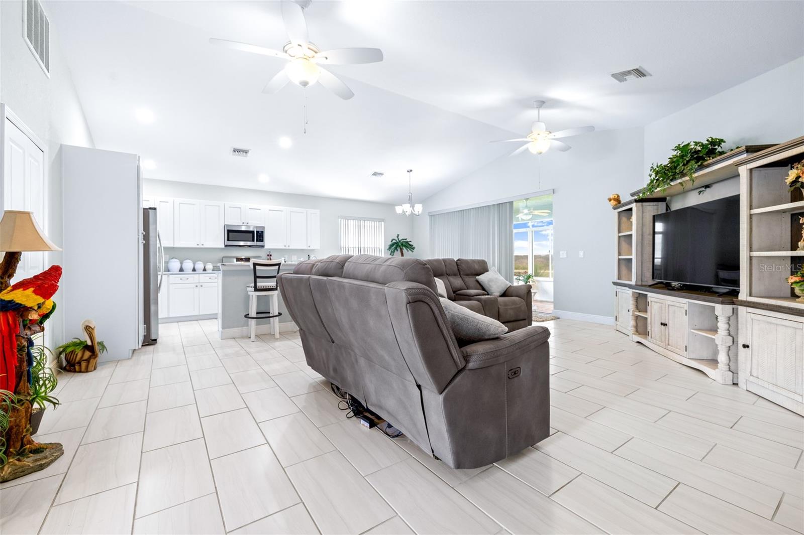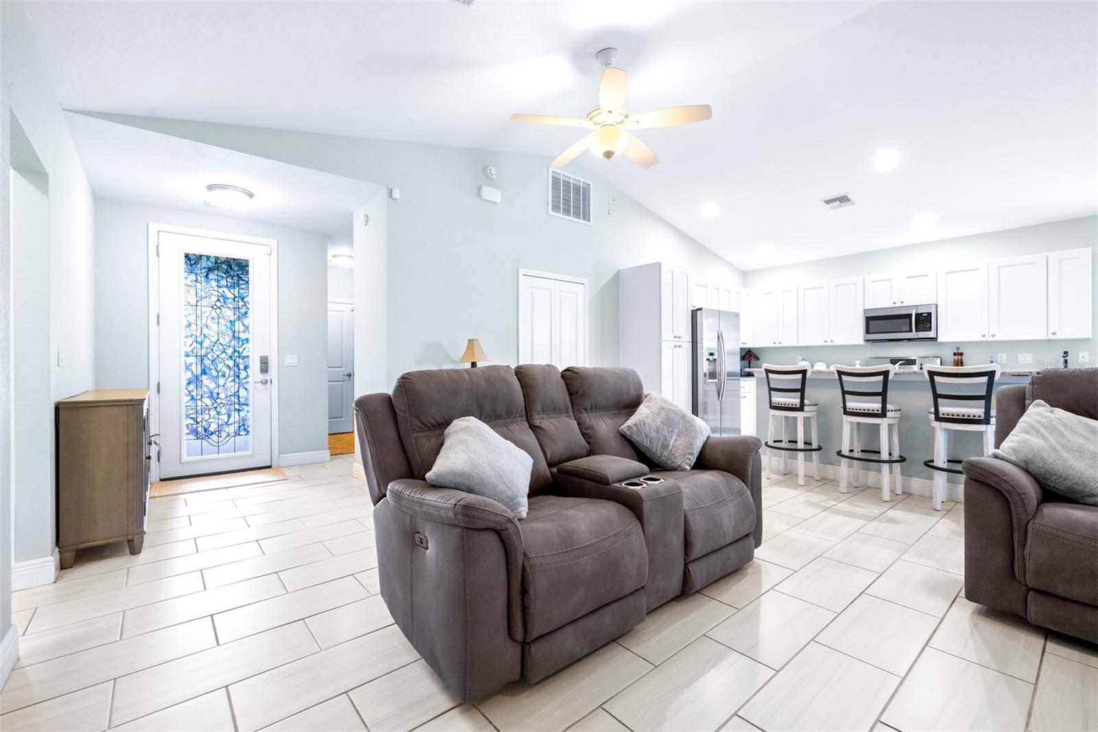 PRICE REDUCTION....Discover a beautifully maintained home in a prime central location, brimming with upgrades that offer comfort, efficiency, and style. The open floor plan boasts soaring ceilings and sleek porcelain tile throughout, creating a modern and inviting atmosphere. The kitchen and bathrooms are adorned with granite countertops, and the natural gas stove and stainless steel appliances ensure energy and cost efficiency. A Large Walk-In Shower in Primary Bedroom. Brand New carpet in the bedrooms. This home is packed with thoughtful upgrades, including two Kool Spin roof solar fans, Kool Blanket reflective attic insulation for faster cooling, a Nest thermostat and doorbell, a 22KW whole house generator, and a tankless gas instant water heater. These features make everyday living more convenient and eco-friendly. Step outside to enjoy the spacious backyard, complete with a covered patio for added privacy. The motorized garage door screen, hurricane panels, and water treatment system add an extra layer of practicality and security. The brick paver driveway, patio, and sidewalks create an elegant and welcoming first impression. Inside, you’ll find solid wood raised-panel cabinets and vanities, ceiling fans in every room, and a reverse osmosis system at the kitchen sink, all designed to enhance your daily experience. The elegant newer Furniture is available. If that is not enough the HOA includes pool, clubhouse, and lawn care. With so much value packed into this stunning property, it’s truly a must-see. Schedule your visit today and prepare to be delighted! Taxes are for a secondary Home does not reflect homestead exemption or any exemption