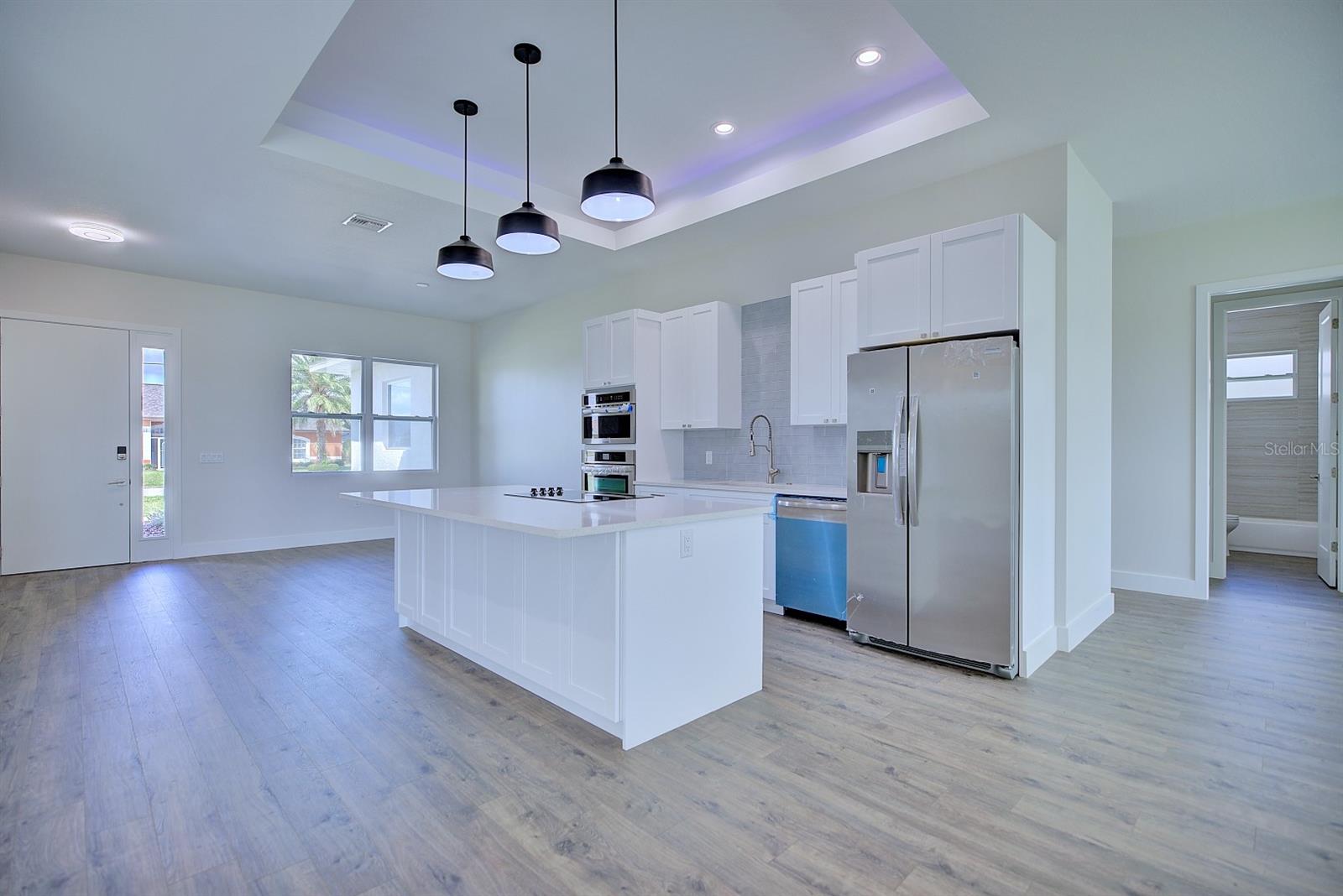 One or more photo(s) has been virtually staged. Price improvement on this lowest-price golf-front home of this size in Sun N Lakes, Sebring. Approximately 2,200 living square feet with direct Turtle Run Golf Course frontage and a screened backyard porch offering stunning views. Interior features include soaring ceilings, tray accents, a chef’s kitchen with wall ovens, solid-surface countertops, and an island cooktop. The luxurious master bath features his-and-her walk-in closets and a guest half bath. An oversized two-car garage includes a separate golf cart entrance. Move-in ready, live the golf lifestyle just steps from your backyard.