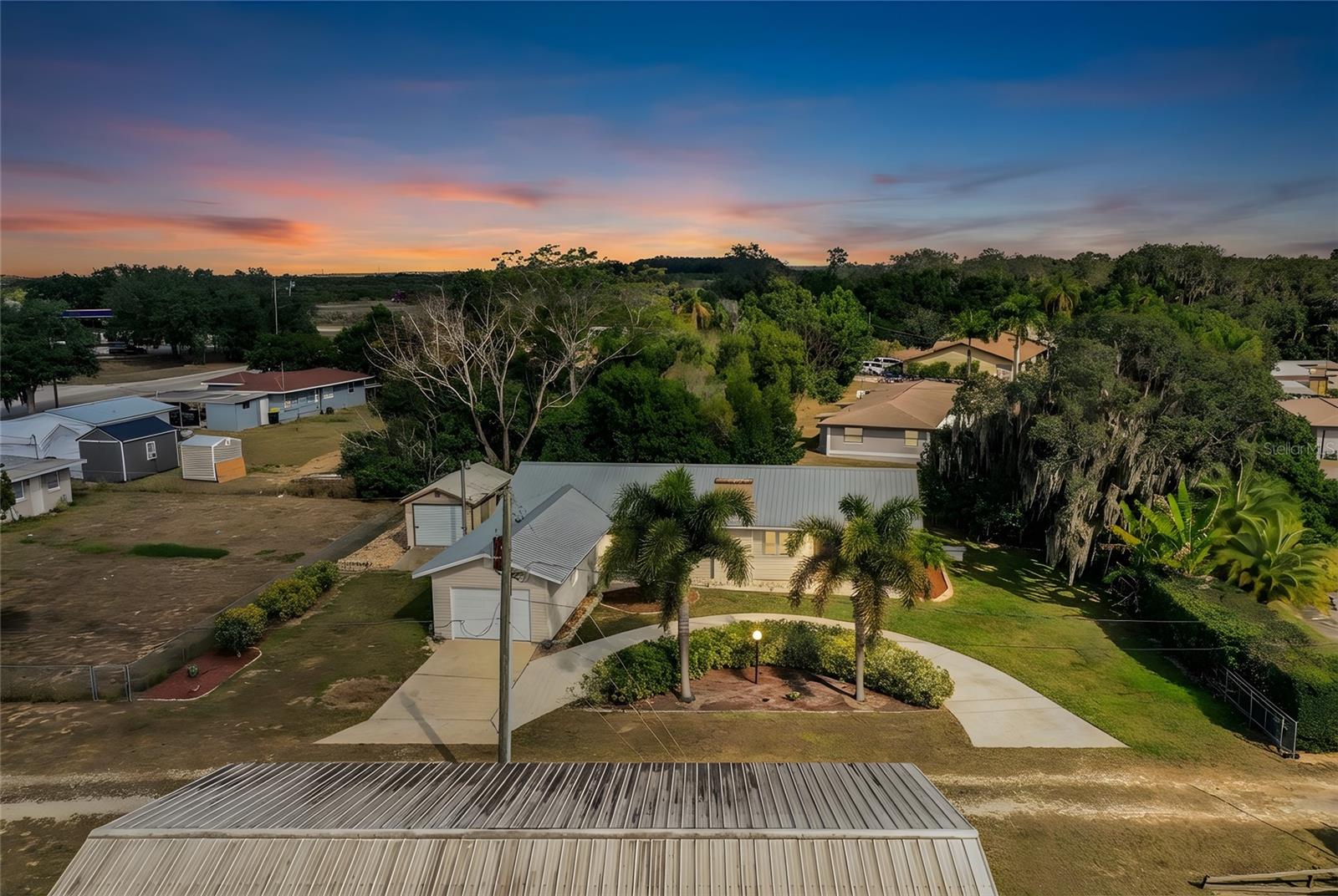Located just off the shores of Dinner Lake in Sebring, this inviting and move-in-ready 2-bedroom, 2-bath home is ideal as a full-time residence or the perfect vacation retreat. The home features a smart, open floor plan, abundant upgrades, and is being sold fully furnished for your convenience. From the moment you arrive, you’ll appreciate the attractive curb appeal, highlighted by a circular driveway, additional drive leading to the oversized one-car garage which is large enough to accommodate a bass boat, and extra space for a workshop or storage. Mature palms, manicured landscaping, and a durable metal roof further enhance the exterior. A fully screened 27’ x 13’ lanai offers plenty of room for outdoor furniture and entertaining, creating a seamless transition into the home. Inside, you are welcomed by a dedicated laundry room with washer and dryer included. The living room features newer wood-look ceramic tile flooring, a cozy wood-burning fireplace, and charming exposed wood beams. The adjacent formal dining area comes fully furnished and is perfect for hosting guests. The kitchen is well appointed with solid wood cabinetry, upgraded hardware, and newer stainless-steel appliances, all of which convey with the sale. Both bedrooms provide private, full bathrooms, providing comfort and privacy. A bonus room adds flexibility and can be used as a den, office, or playroom. Additional highlights include a newer HVAC system (2017), a 21 x 11 shed with power and a concrete ramp easy for onloading and uploading, an easement access to Dinner Lake for breathtaking views, and a nearby boat ramp for fishing and boating enthusiasts. Shopping and grocery stores are just a short drive away. Sebring is a vibrant city in south-central Florida, known as “The City on the Circle” for its unique downtown layout and as the home of the historic Sebring International Raceway and the legendary 12 Hours of Sebring. Outdoor lovers enjoy over 100 lakes, along with the natural beauty of Highlands Hammock State Park. With an affordable cost of living, warm climate, and no state income tax, Sebring continues to be a popular destination for all residents. This home is easy to show so schedule your private tour today!