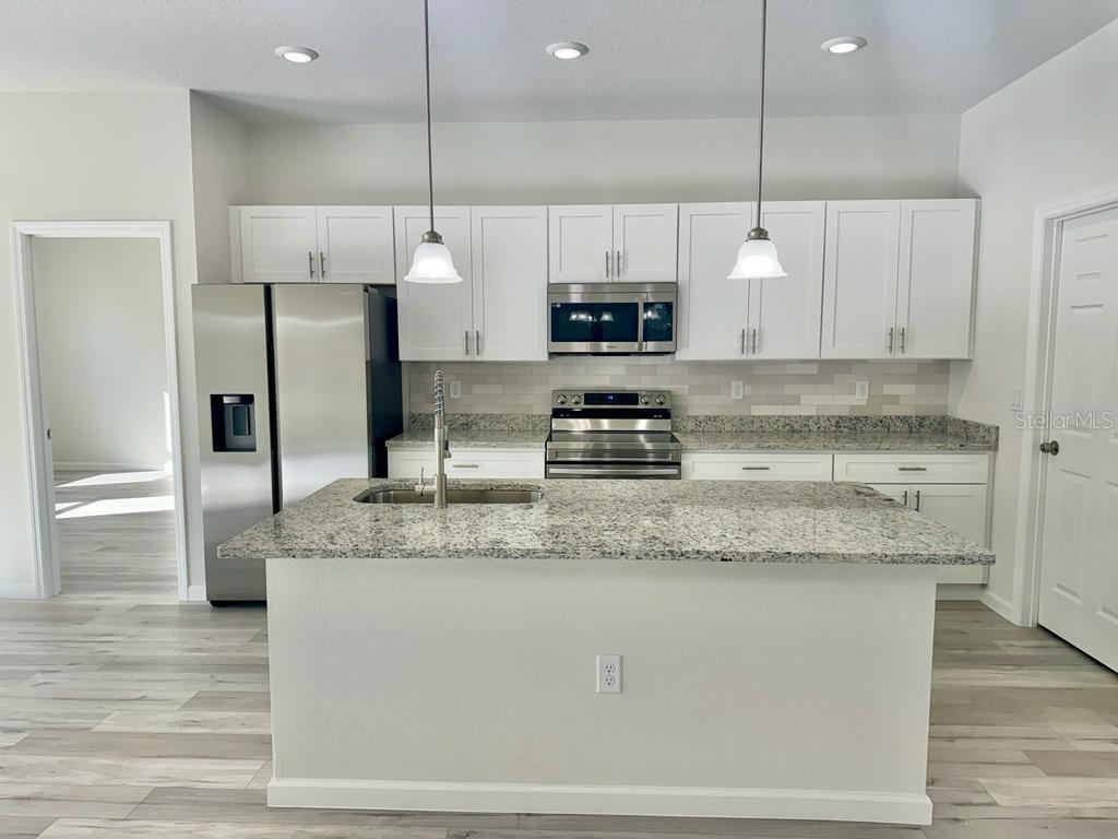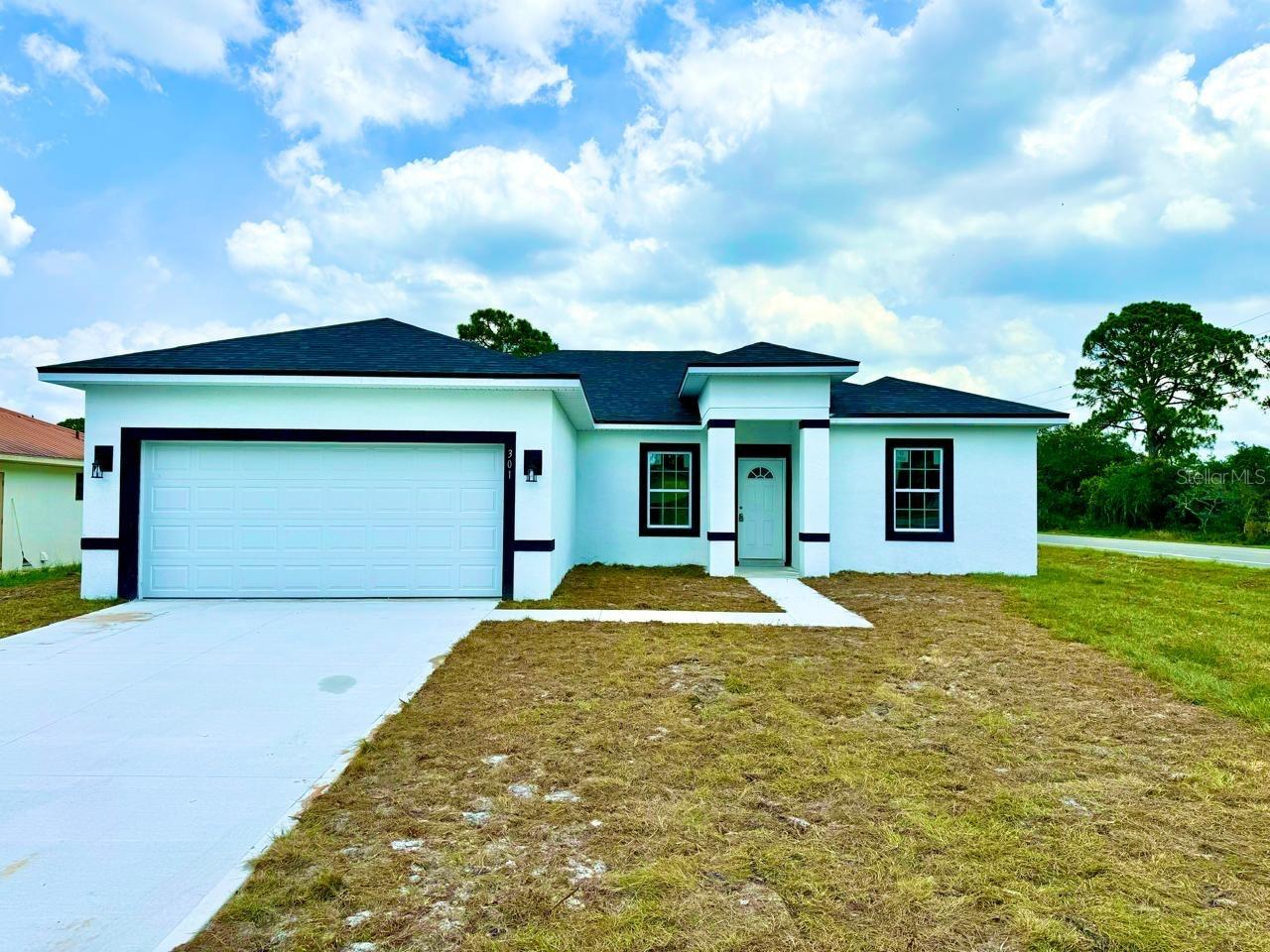 CORNER LOT ! THIS BEAUTIFUL NEW HOUSE features 1,765 SqFt of living heated area. 4 bedrooms and 2 full bathrooms. Open , bright and airy floor plan. Kitchen and bathrooms with granite countertops. Full stainless Steel appliance package and wood cabinets. High efficiency air Conditioning Unit, double walk-in closet in master bedroom. Bathrooms shower with ceramic tile up to ceiling.