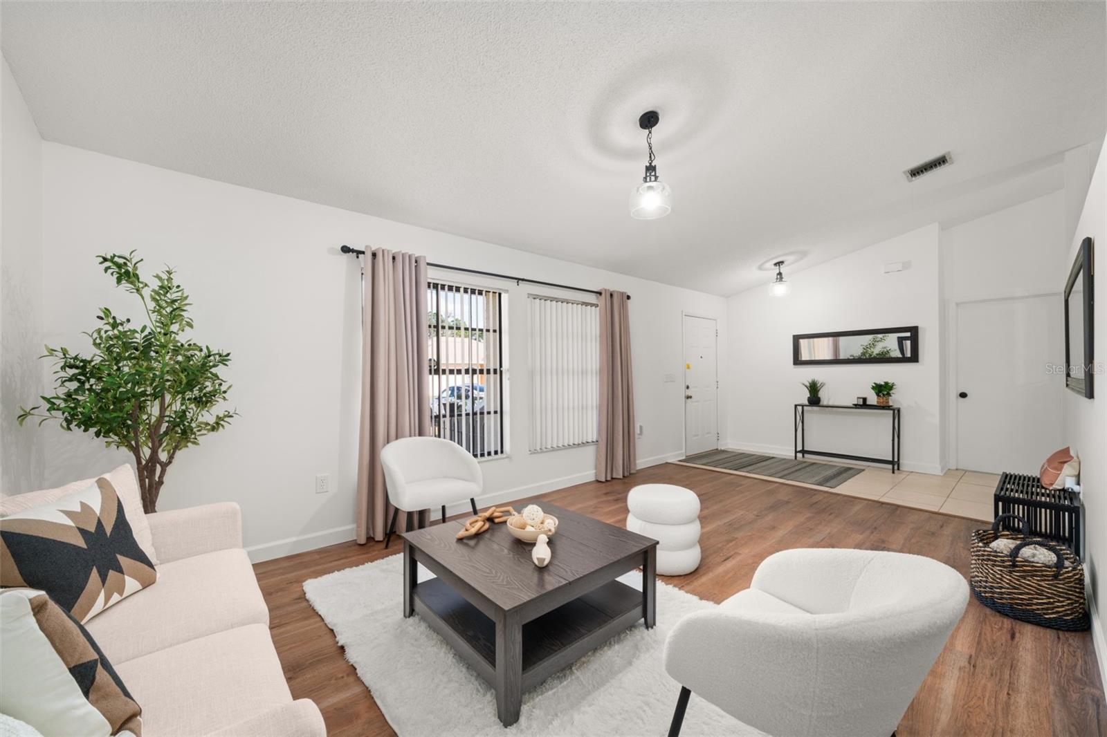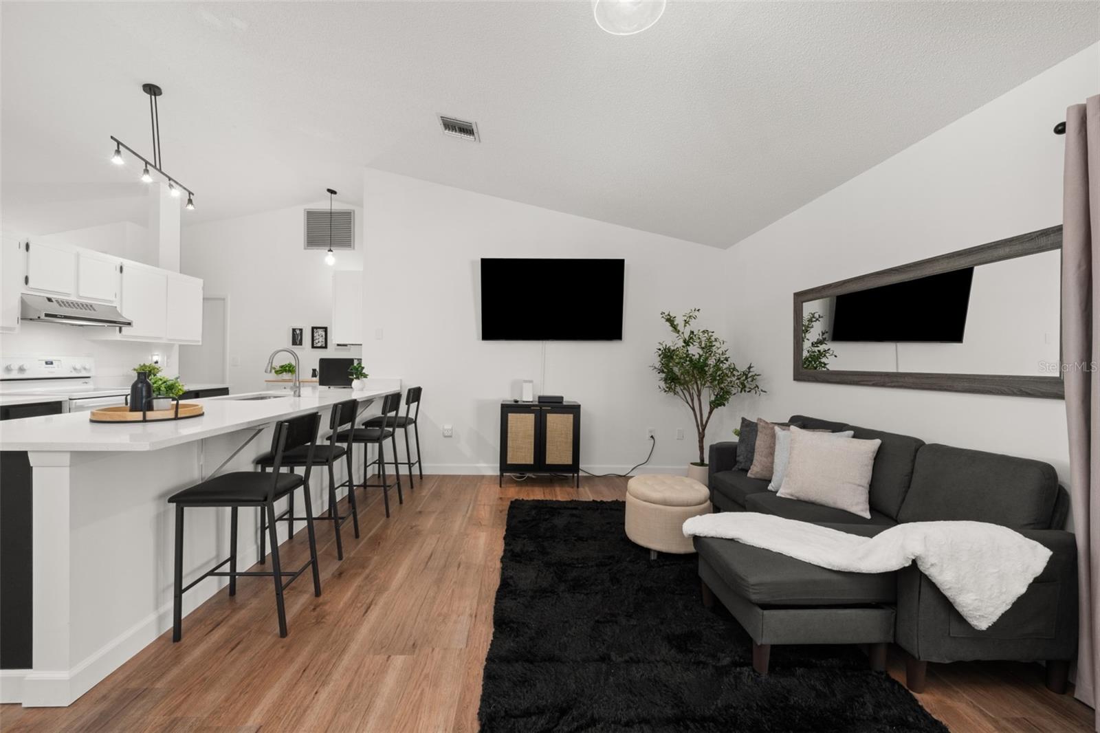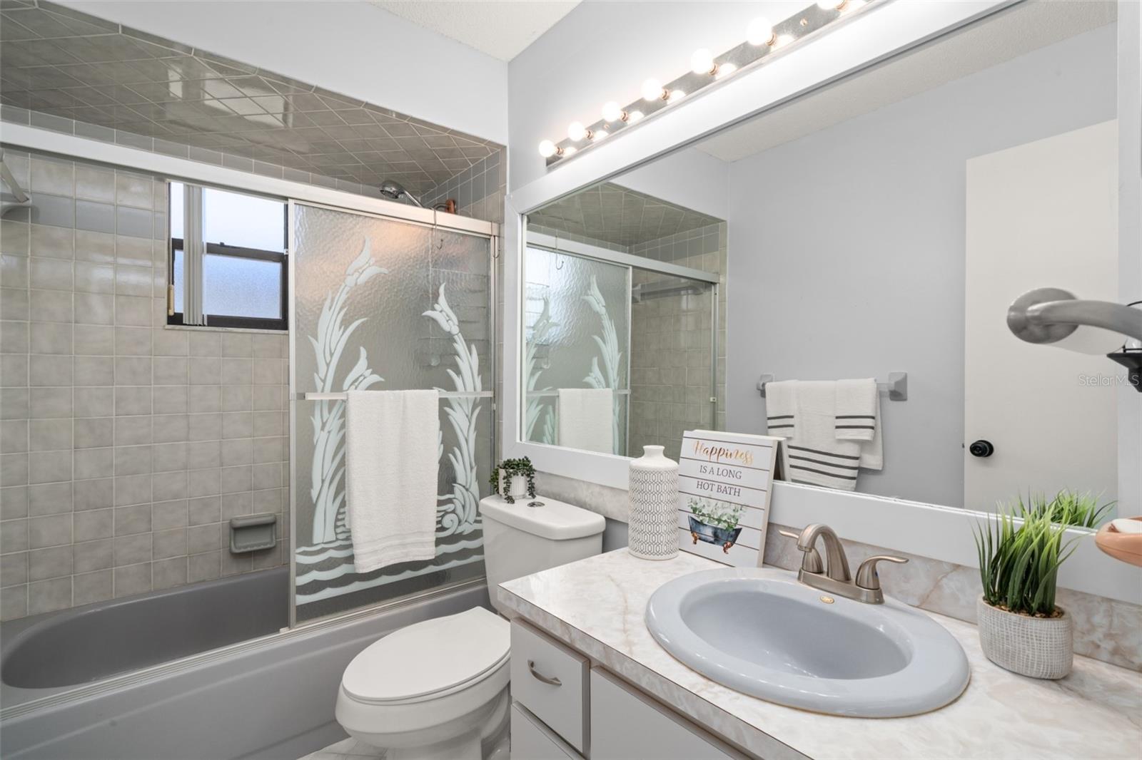 This stunning property is now ready for new owners to fully indulge in all it has to offer! Tastefully updated concrete block & stucco construction home located in the highly sought-after neighborhood of Sun 'N Lake Estates in Sebring, FL! Gorgeous curb appeal greets you as soon as you arrive at the driveway with the aesthetically pleasing clean exterior, New 2024 shingle roof, custom arched entryway, and adorable front open porch area to enjoy the Florida climate! Enter inside to a lovely 3 bedroom, 2 bathroom split floor plan home incorporating soaring high vaulted ceilings, updated modern lighting fixtures, and spotlessly clean freshly painted interior throughout the central main living areas. Easy to maintain vinyl plank and tile flooring in all bedrooms - No Carpet! With over 1,500 square feet of living space alone, there is definitely the ability to make this home into the perfect family retreat or seasonal oasis to escape the cold northern winters. Spacious kitchen with plenty of resurfaced cabinet and quartz counter space, white kitchen appliances, white tile backsplash, and a central solid quartz bar perfect for entertaining large groups of people. Private primary bedroom with access into the huge 30’x52’ screened-in back porch with pebbled flooring, and ensuite bathroom containing a fully tiled walk in shower and a large walk-in closet with mirrored closet doors. Two additional generously sized bedrooms and full bath with a shower/tub combo on the opposite side of the house providing privacy for your visiting guests. The oversized 1 car garage also contains the laundry utilities, air handler, and water heater. The 10’x16’ back yard shed was installed with a permit in 2018 and is included with the sale of the property. Surrounding the shed is a vinyl privacy fence along the property’s property boundary allowing your fur babies to play in the back yard with peace of mind. Water heater new in 2024, HVAC system 2019. The Sun N Lake Estates of Sebring community offers beautiful championship golf courses, a family pool, tennis courts, a playground for young children, and an excellent restaurant for an enjoyable meal out!
