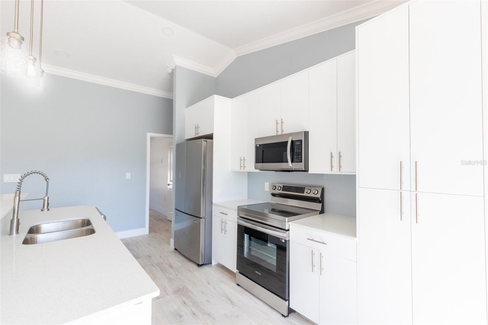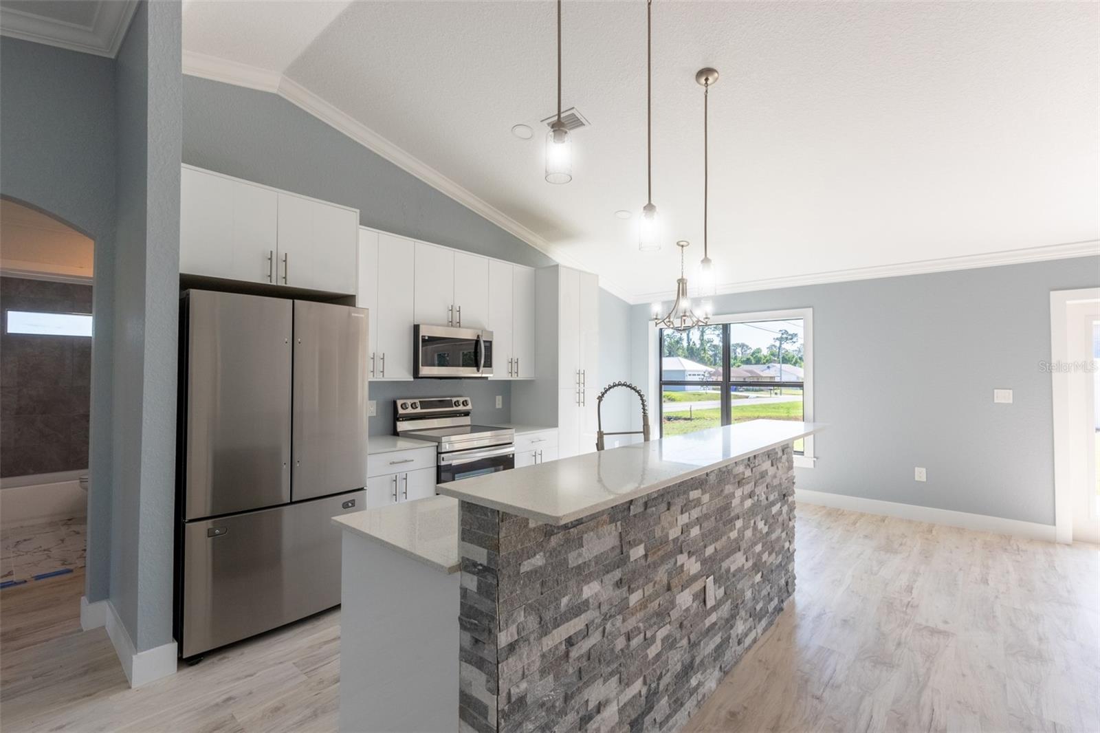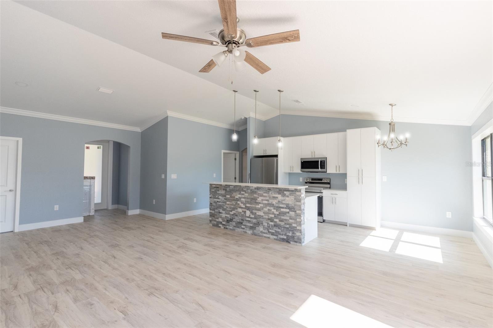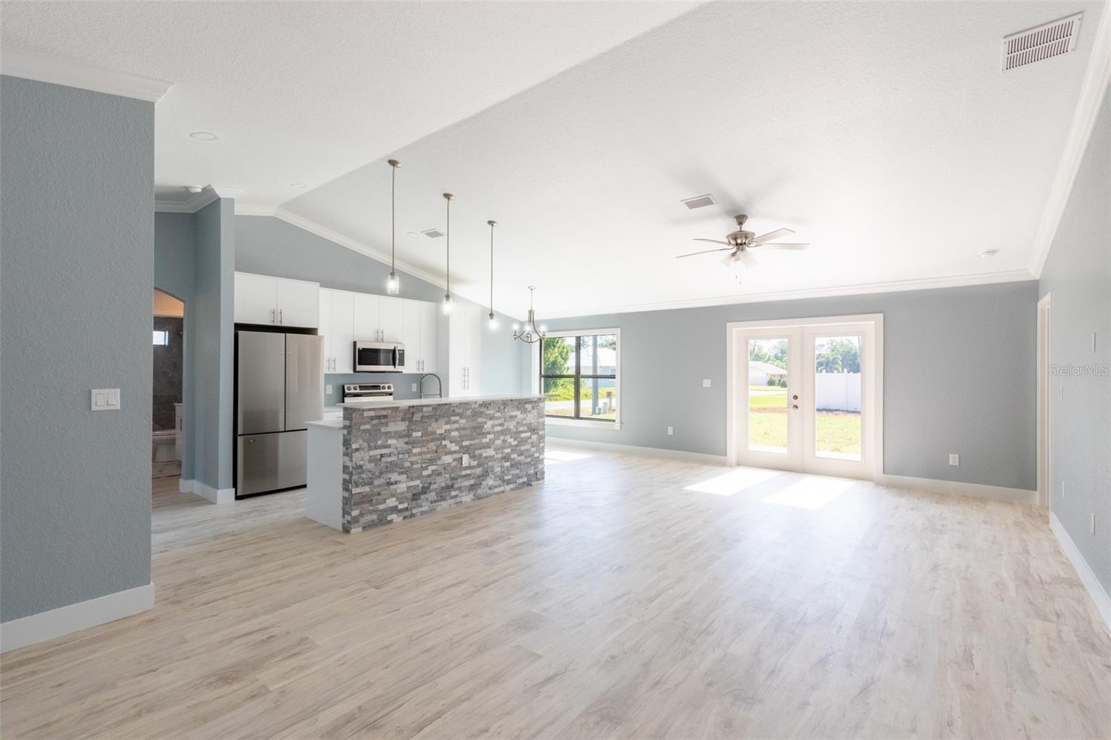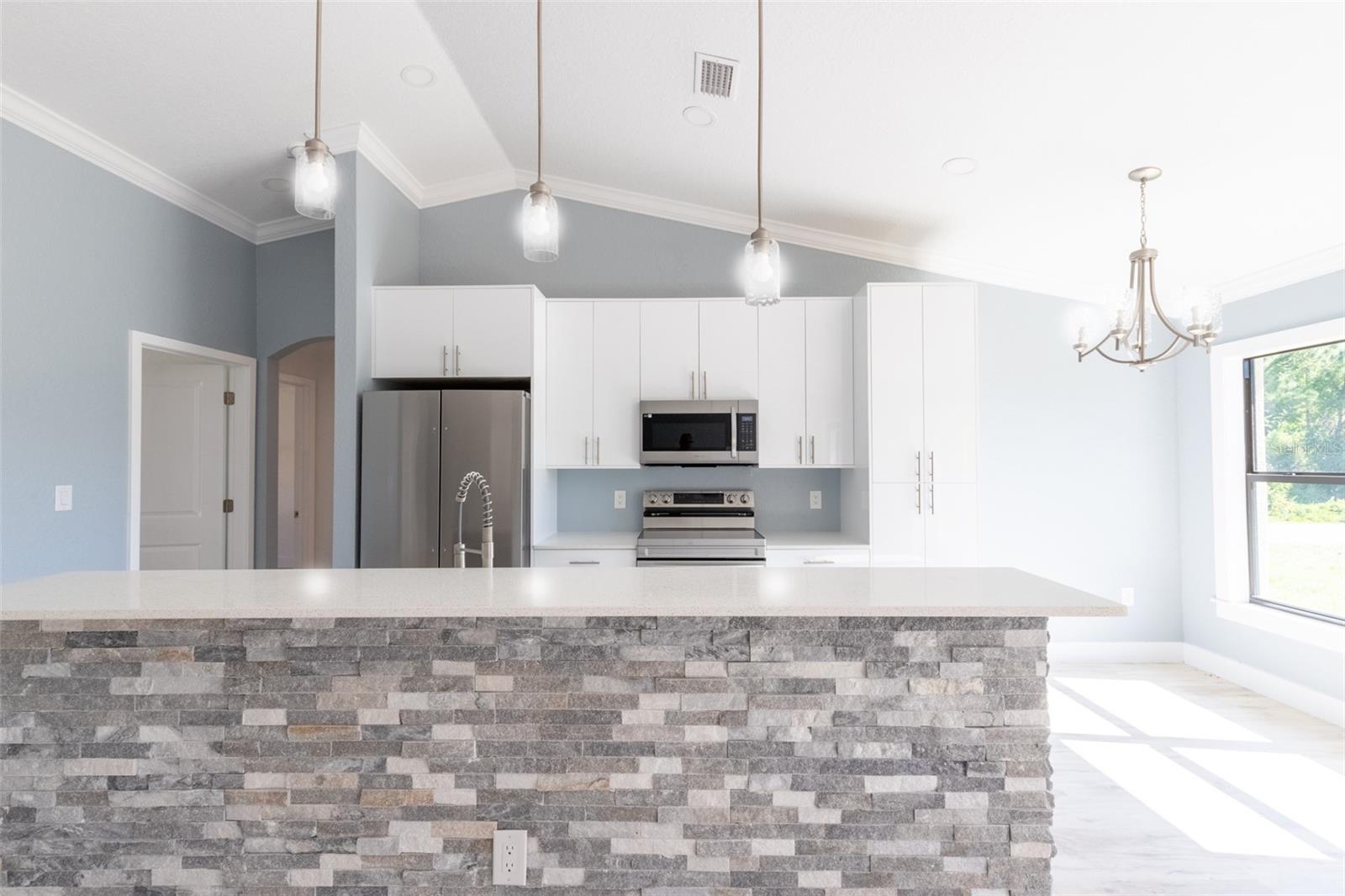 Located in the desirable Lake Haven Estates and Lake Huckleberry area, this exceptional brand-new 4-bedroom, 2-bath home boasts top-of-the-line features and a 2-car garage. The home’s metal roof adds both durability and charm, while soaring ceilings, crown molding, and an ethereal color palette create a light and airy ambiance throughout. The open-concept design includes a spacious 25x15 great room and a kitchen equipped with stainless steel appliances, a stone-enhanced island, and elegant drop LED lighting next to the dining nook. The kitchen also features stunning quartz countertops with a breakfast bar for casual dining. The master suite offers a generous walk-in closet and a luxurious ensuite with dual sinks and a spa-like low-threshold shower. The split floor plan ensures privacy, with the additional bedrooms and second bath separated from the master. The 20x20 garage provides ample space, and the septic tank is conveniently located in the front yard. The expansive rear yard is ready for a pool or an additional garage, with an entrance accessible from another road. There is no mandatory HOA, though a voluntary annual fee of $80 grants access to the community’s boat slip at Lake Haven Estates and the community center, just a short distance from your new home. For golf enthusiasts, the nearest course in Sebring is just a golf cart ride away. Highlands County, located in Florida's heartland, is known for its stunning natural beauty, with 100 lakes offering ample opportunities for boating and fishing. Outdoor lovers can enjoy Highlands Hammock State Park, scenic oak hammock bike trails, and fishing or horseback riding nearby. Experience the tranquility of living in the higher elevations of Florida, surrounded by the beauty of pines, oaks, and palms. It’s the perfect place to call home in the heart of nature’s splendor.