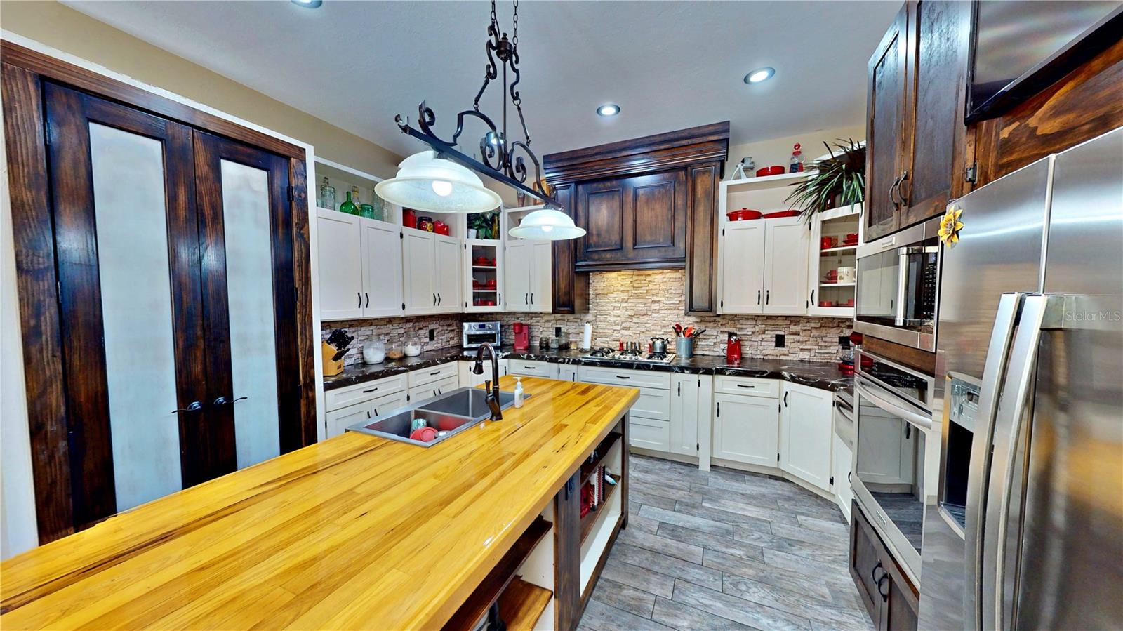 Welcome to this beautifully crafted, one-of-a-kind 3-bedroom, 2.5-bathroom home featuring an array of premium, thoughtful upgrades designed for comfort, durability, and long-term peace of mind. Built by the owner with care and precision, this wood-frame home is finished with plywood and stucco walls, cedar-dressed window frames, and trayed ceilings in both the living room and master bedroom, adding warmth and architectural charm. The kitchen is a chef’s dream, equipped with gas ranges, wooden countertops sealed with food-grade epoxy, and concrete outdoor counters also finished with epoxy—perfect for entertaining. A gas fireplace in the living room adds cozy potential (gas line not yet connected), while a wood-burning fireplace outside in the screened-in lanai creates the perfect setting for year-round outdoor enjoyment that includes a custom outdoor bar. Designed with quality in mind, this home has no PVC joints under the foundation, minimizing long-term risk of leaks. A convenient outside water shutoff and whole-home termite spray treatment—not just the standard first two feet—giving you lasting protection. Retreat to the master suite where you'll find a wheelchair-accessible shower and 4’ high concrete board-lined walls in both bathrooms for durability and easy maintenance. Outside, you'll find a large detached building with its own 2-car carport and an impressive amount of storage space. This versatile structure also includes a separate room that could serve as a spare bedroom, a man cave, a hobby room, or a private home office. Additional features include: Built-in TVs that stay with the home, and an outdoor shower for added convenience. This home is a rare find—combining handcrafted quality, timeless finishes, and thoughtful features not often found in today’s market. Schedule your private showing today!