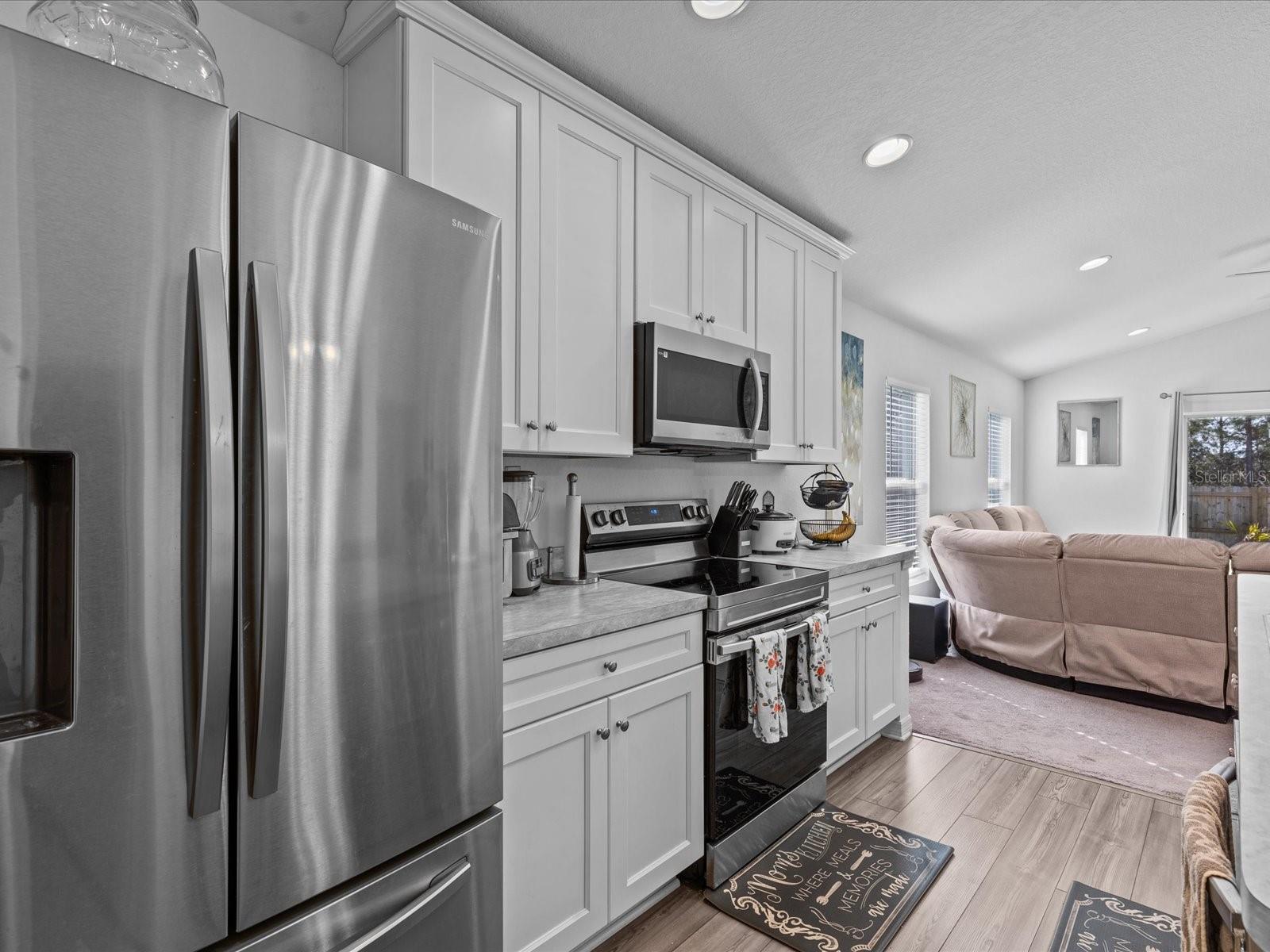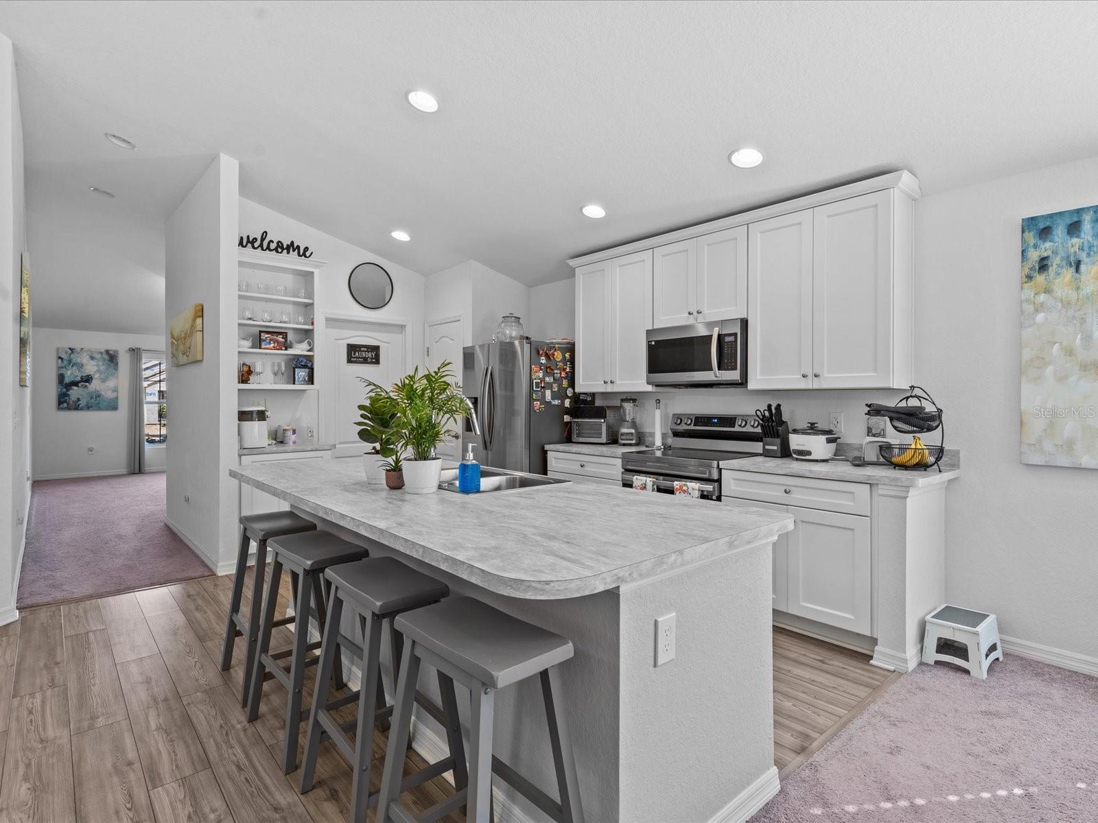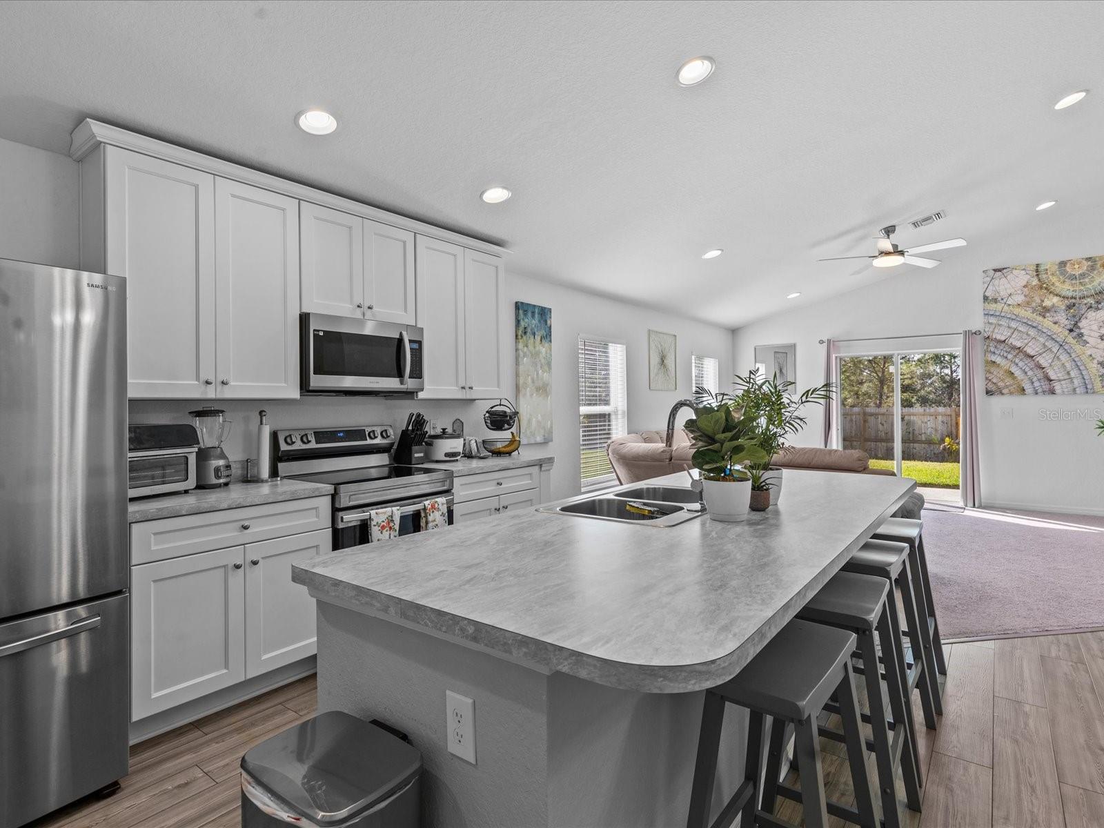 This beautiful, like-new 2022 home is even better than new, with added features that make it truly move-in ready! Already equipped with a fully fenced-in yard, window coverings, a garage opener, and a convenient pad on the side of the garage, as well as an extended driveway, this home is designed for both functionality and style. Boasting 4 generously sized bedrooms, 2 full baths, and situated on just over a quarter-acre of land, this home offers ample space and privacy. As you step inside, you'll be greeted by a bright and inviting Florida sitting room with vaulted ceilings that create a welcoming, open feel. The vaulted ceilings continue seamlessly into the kitchen and family room, further enhancing the spacious atmosphere. The kitchen features a large island, perfect for preparing meals while staying connected with family and friends in the adjoining family room. Whether hosting gatherings or enjoying quiet moments at home, this property offers the perfect balance of comfort and style. Additionally, the home’s location couldn’t be more convenient—just 5 minutes from golfing, a hospital, and shopping, giving you easy access to all the essentials. This home truly has it all!