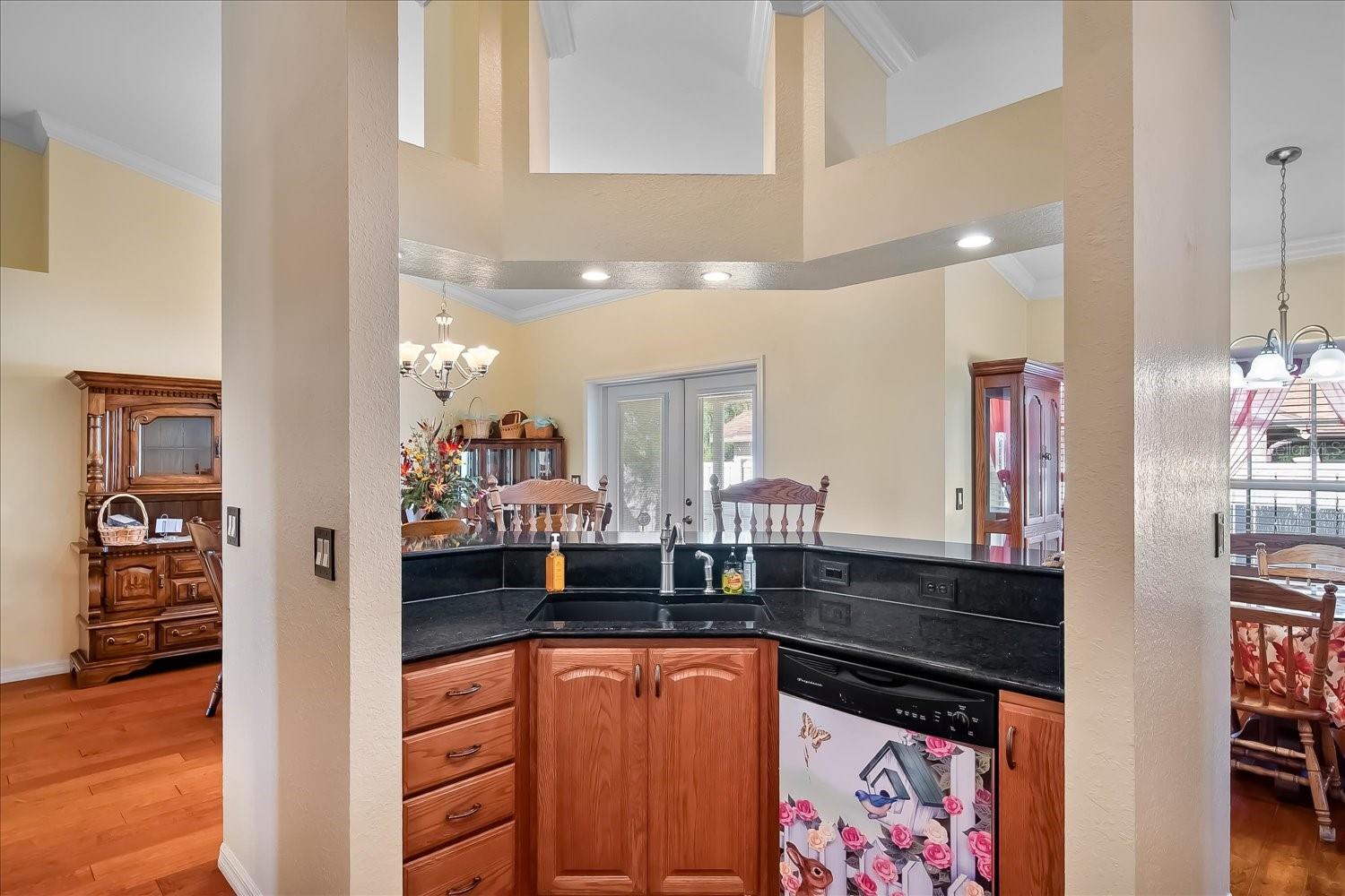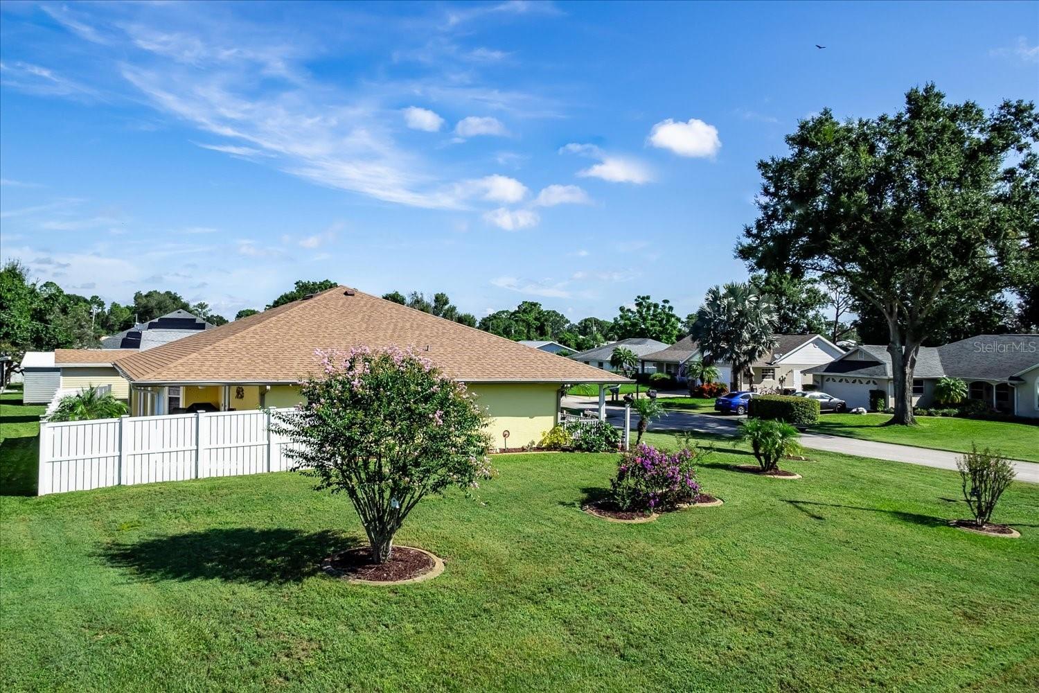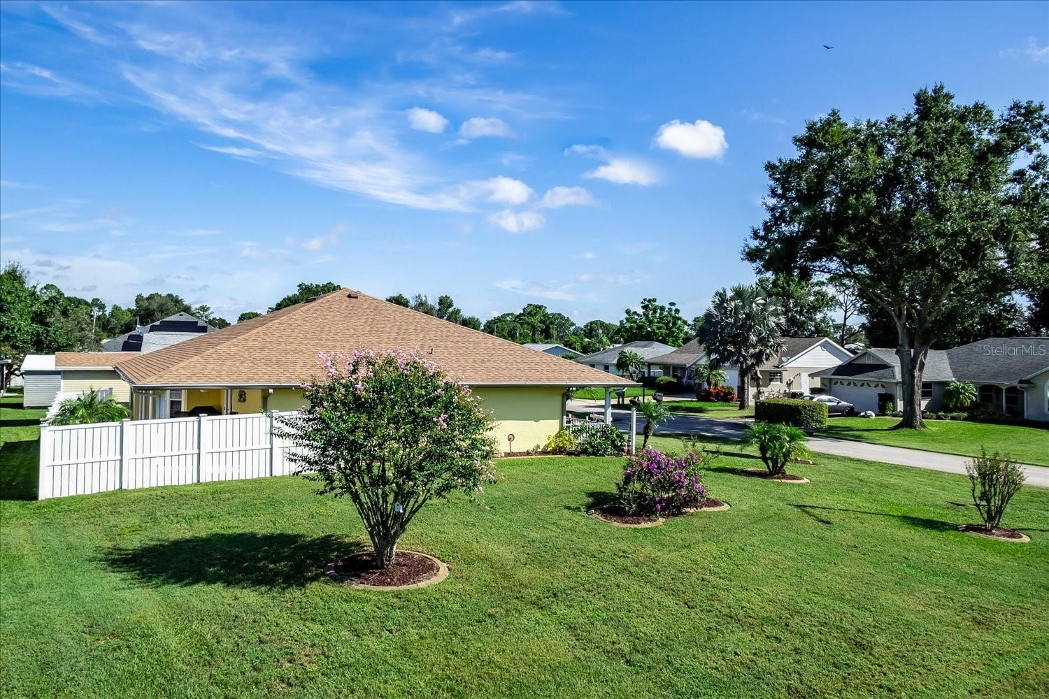 Step into the charm of this classic, storybook home, where comfort meets timeless style. With over 1,600 sq. ft. of living space, this 3-bedroom, 2-bath beauty welcomes you with warm engineered hardwood floors, plush carpet in just two bedrooms, and a layout designed for easy, relaxed living. Imagine afternoons on the inviting front porch in this quiet neighborhood, just a few blocks from the serene waters of Lake Huckleberry. The kitchen is the true heart of the home, rich wood cabinets, quartz countertops, and beautiful wraparound counters create both function and style, while offering the perfect setting for gatherings and entertaining. Step out back to a paved and covered porch, ideal for morning coffee, while enjoying the peaceful privacy of a fully fenced backyard. The corner lot (.23 acres) also offers a charming shed and plenty of green space. Lovingly maintained and brimming with a cozy, cottage-like feel, yet still within city limits, this home offers the perfect balance of tranquility and convenience. This isn't just a house, it's a place where life feels just right.
