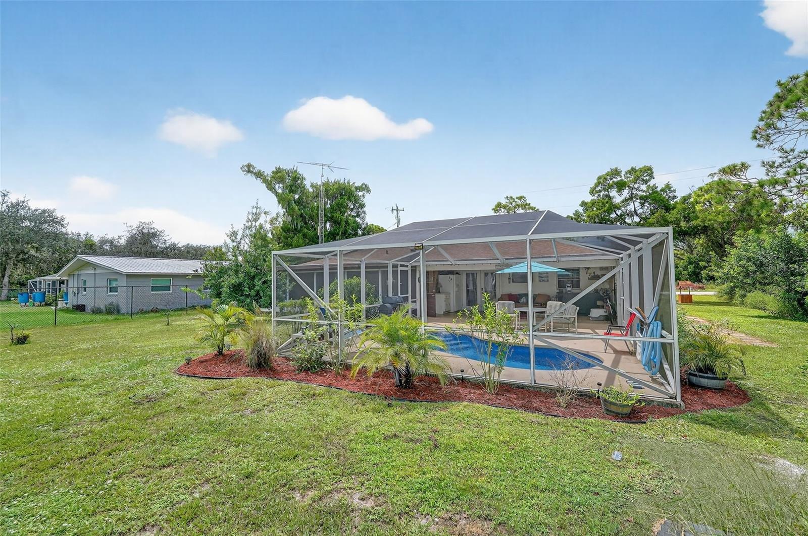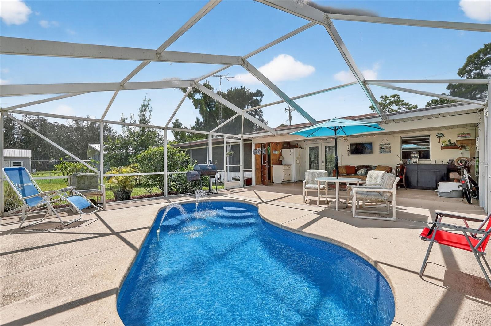 This stunning retreat blends style, comfort, and effortless living. Set on a beautifully landscaped quarter-acre lot, this three-bedroom, two-bath ranch is packed with personality. From the inviting front porch to the screened-in saltwater pool and heated spa out back, every inch of this home is designed to help you relax and enjoy. Inside, natural light fills the open layout, highlighting a mix of luxury vinyl and ceramic tile. The kitchen is both functional and stylish with modern appliances, a built-in water filtration system, and space for casual dining. A spacious Florida room offers over thirty feet of extra living space—ideal for entertaining, lounging, or creating your dream setup. The primary suite features a built-in closet and en-suite bath, while two additional bedrooms provide comfort and flexibility. Smart home features, a full security system, energy-efficient windows, and a smart thermostat ensure peace of mind and year-round comfort. With a private pool oasis, Private access to Lake Charlotte, and plenty of space to live and entertain, this home isn't just a place to live—it’s a place to love. Schedule your Personal Showing today.