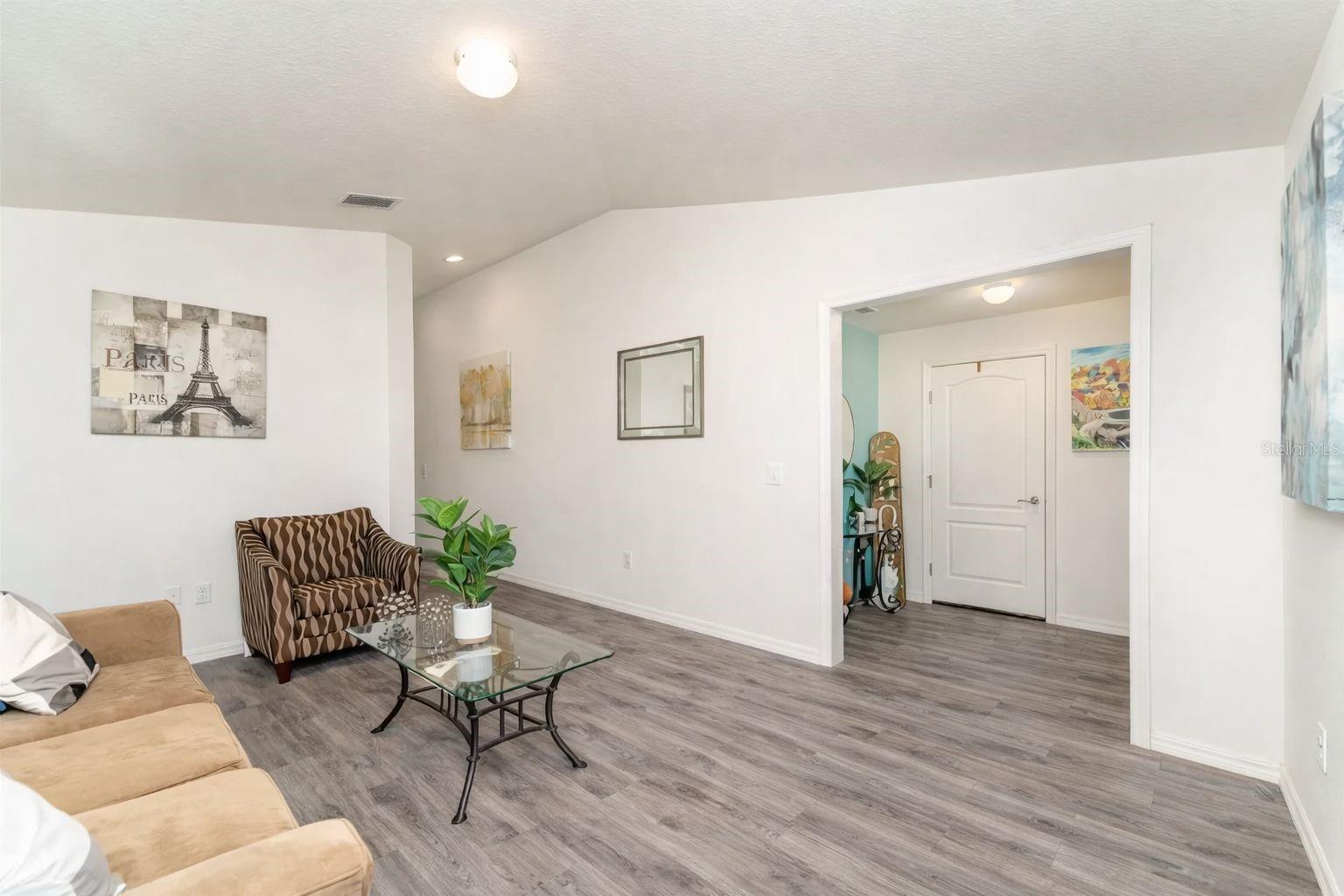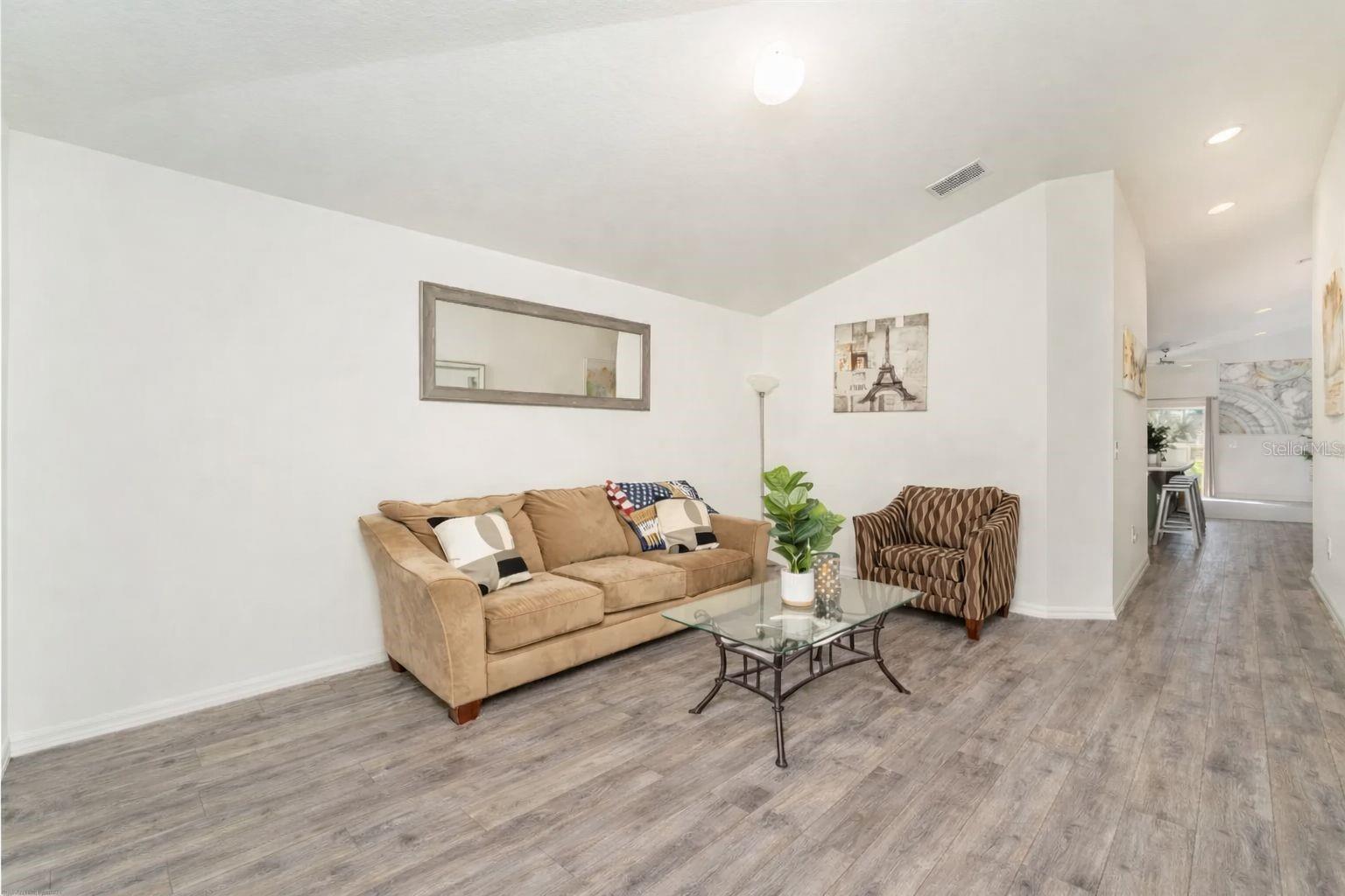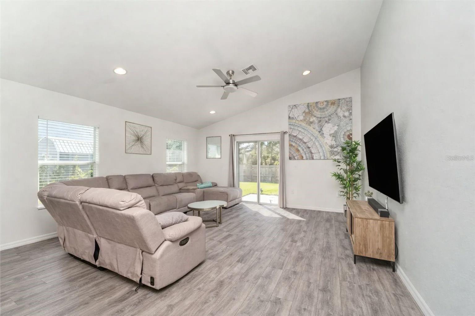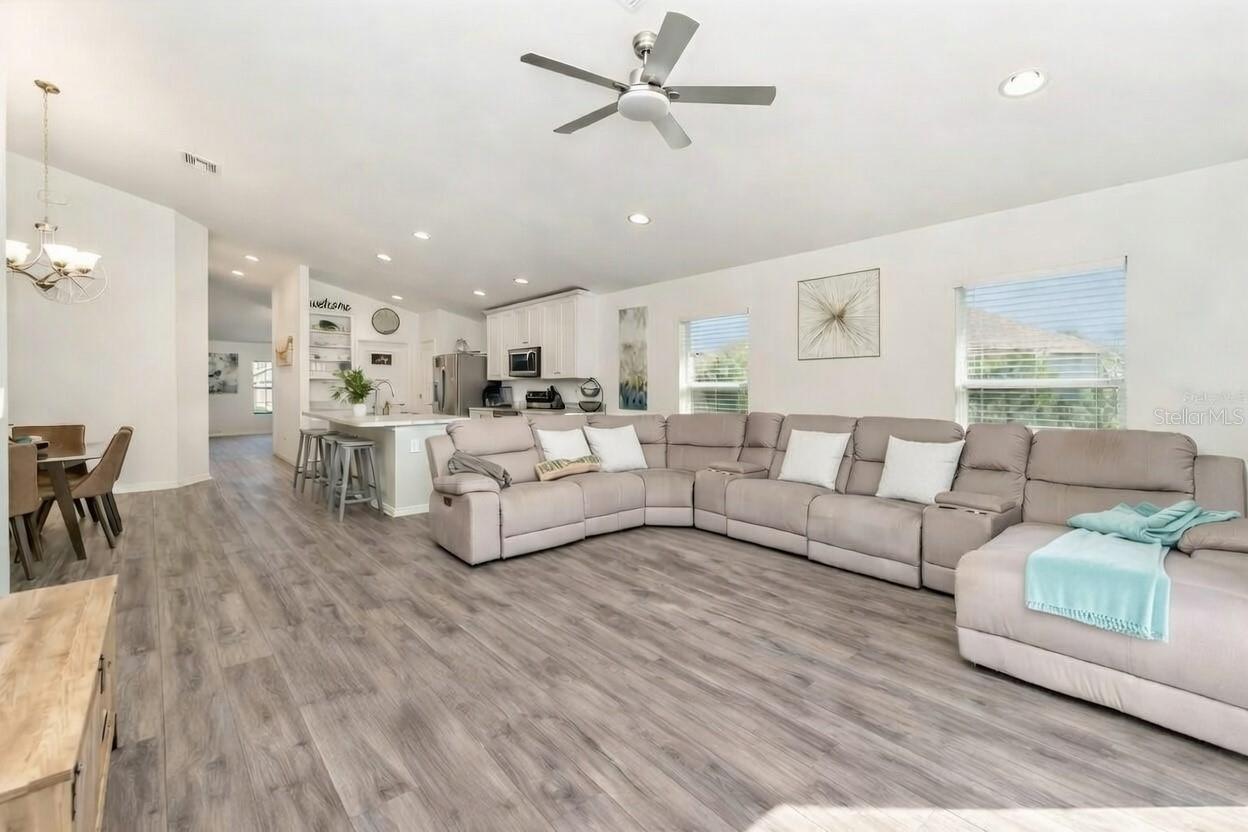 From the moment you pull into the extended driveway, you can feel it — this isn’t just another house; it’s a home that’s been loved, cared for, and designed for real life. Step inside and you’re immediately greeted by natural light dancing across vaulted ceilings, filling the Florida sitting room with warmth and comfort. The open floor plan flows effortlessly into the family room and kitchen, where a spacious island invites conversation, morning coffee, and family gatherings that linger long after dinner. Built in 2022 and enhanced with thoughtful upgrades, every detail has been designed for convenience — from the window coverings and garage opener to the 3-zone sprinkler system and 100+ sq. ft. of overhead garage storage. Outside, the fully fenced backyard offers space for pets, play, or peaceful evenings under the Florida sky. And when you’re ready to venture out, you’re just minutes from golf, amenities, Advent Health hospital, shopping, and dining — everything you need, right where you want it. More than move-in ready, this home is ready for you — to live, laugh, and build your next chapter here.